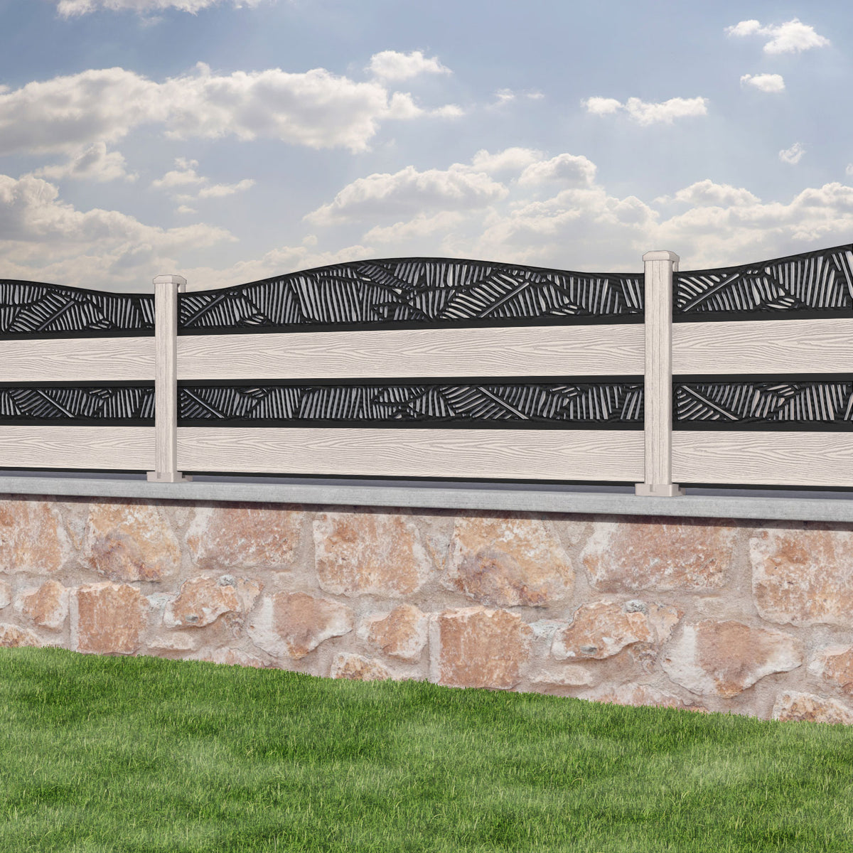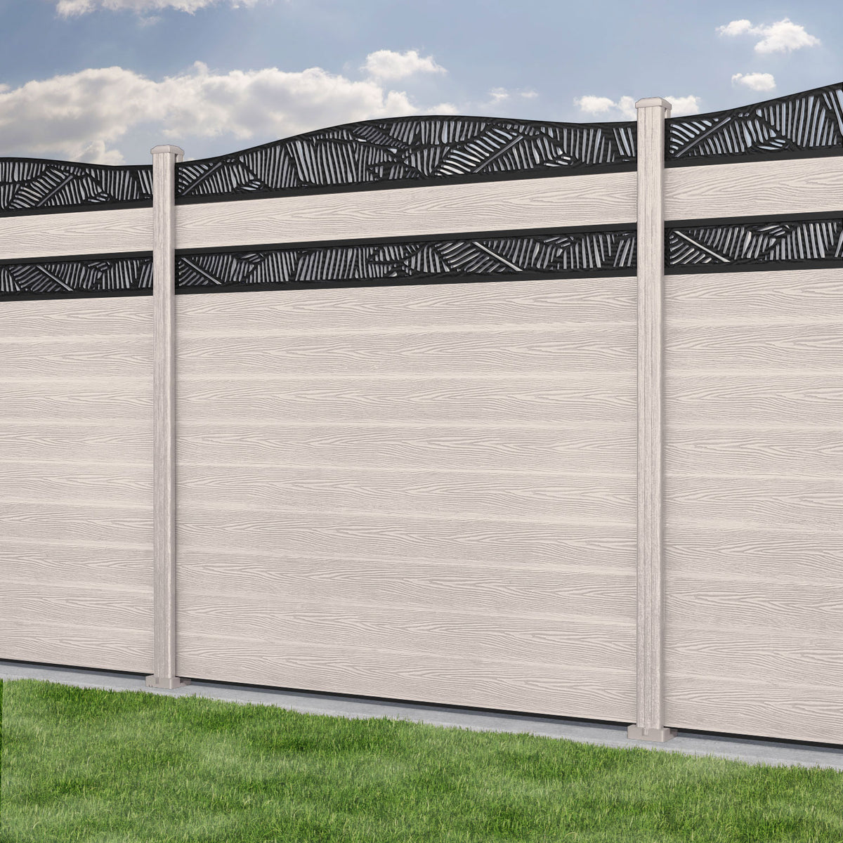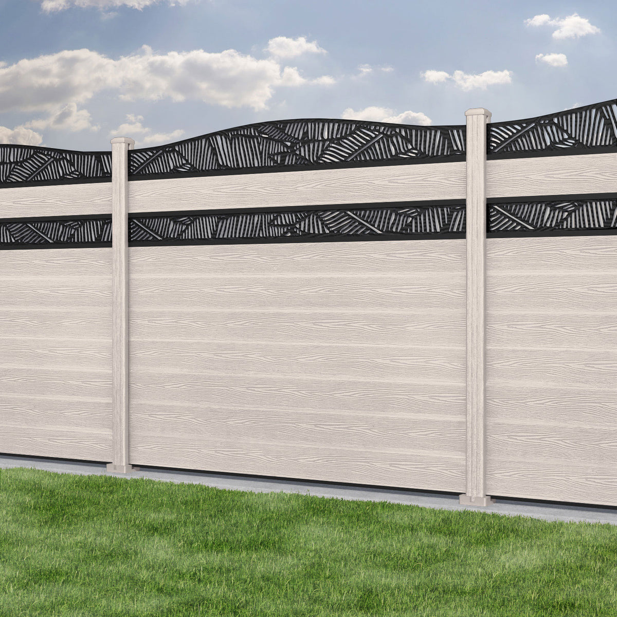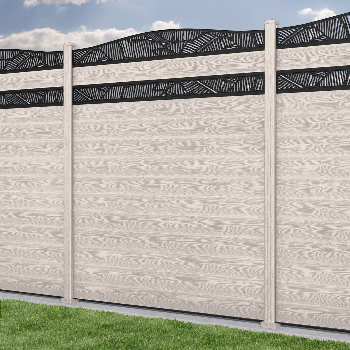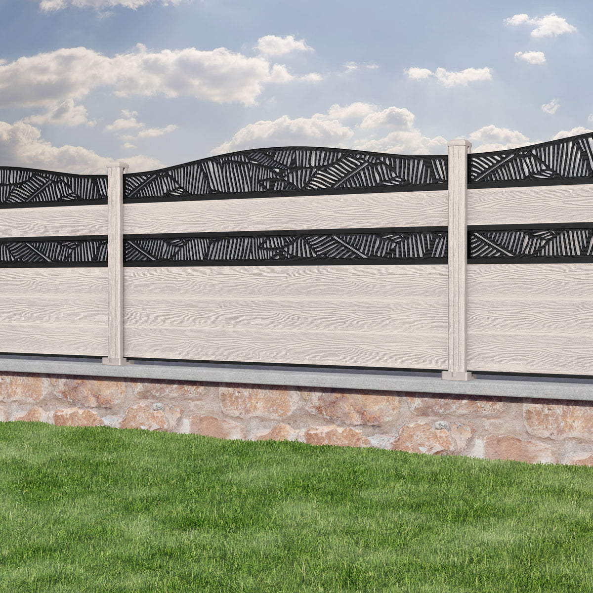 Classic Feather Curved Top Split Screen Fence Panel Mid Stone - with our composite posts