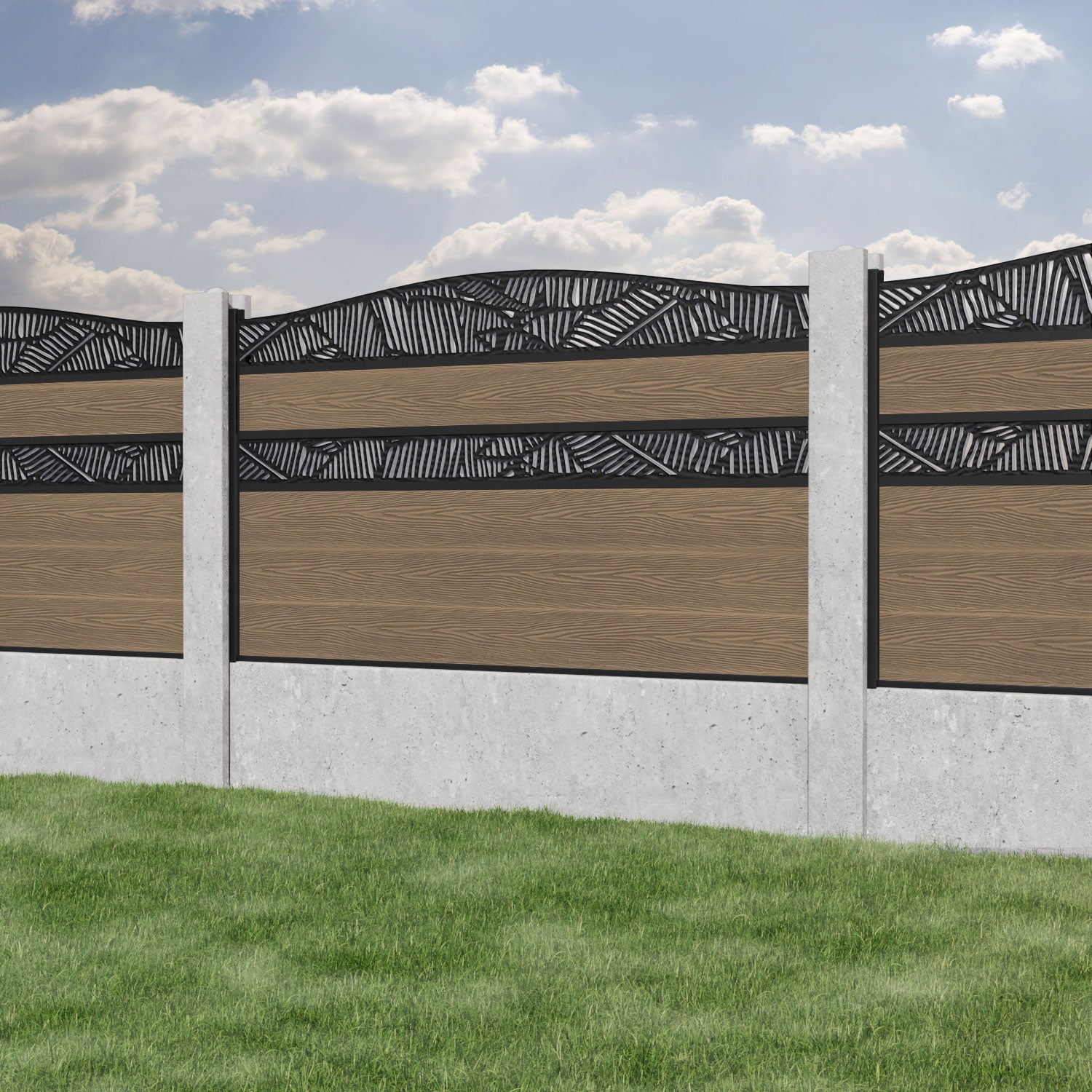 Classic Feather Curved Top Split Screen Fence Panel Teak - for existing concrete posts