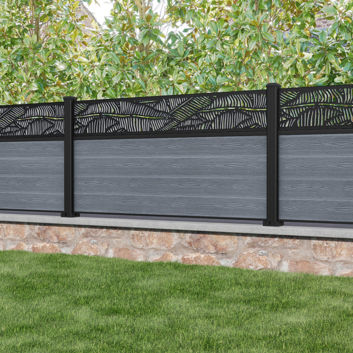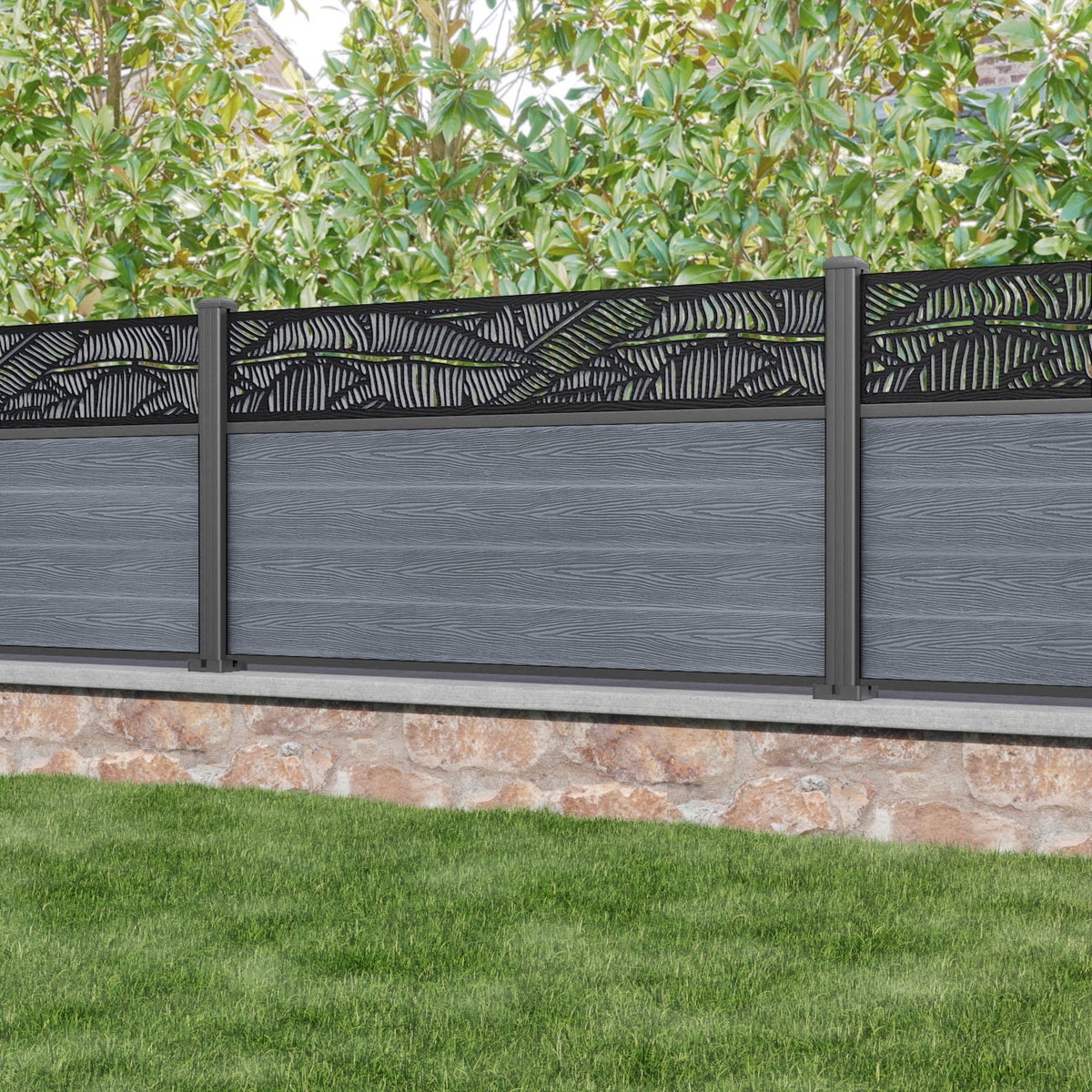 Reference: Classic Feather Fence Panel - Anthracite - with our aluminium posts
