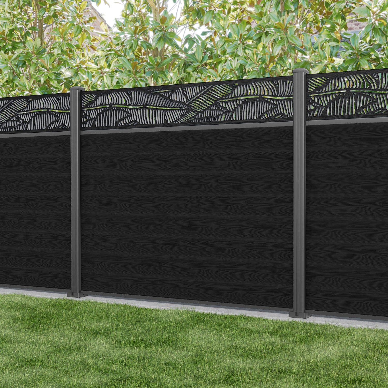 Classic Feather Fence Panel Black - with our aluminium posts