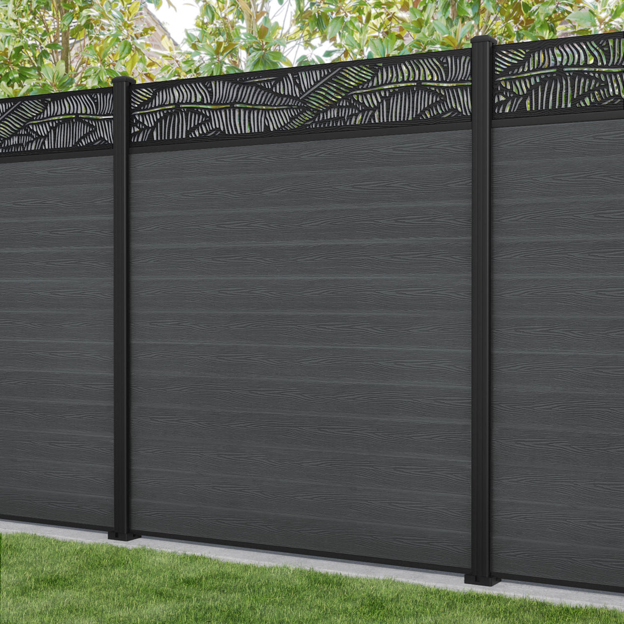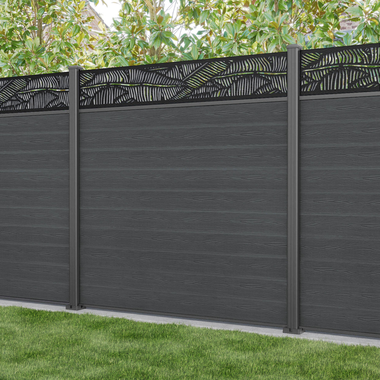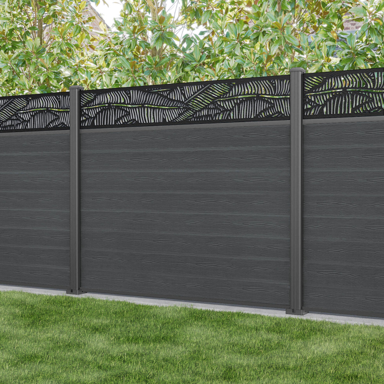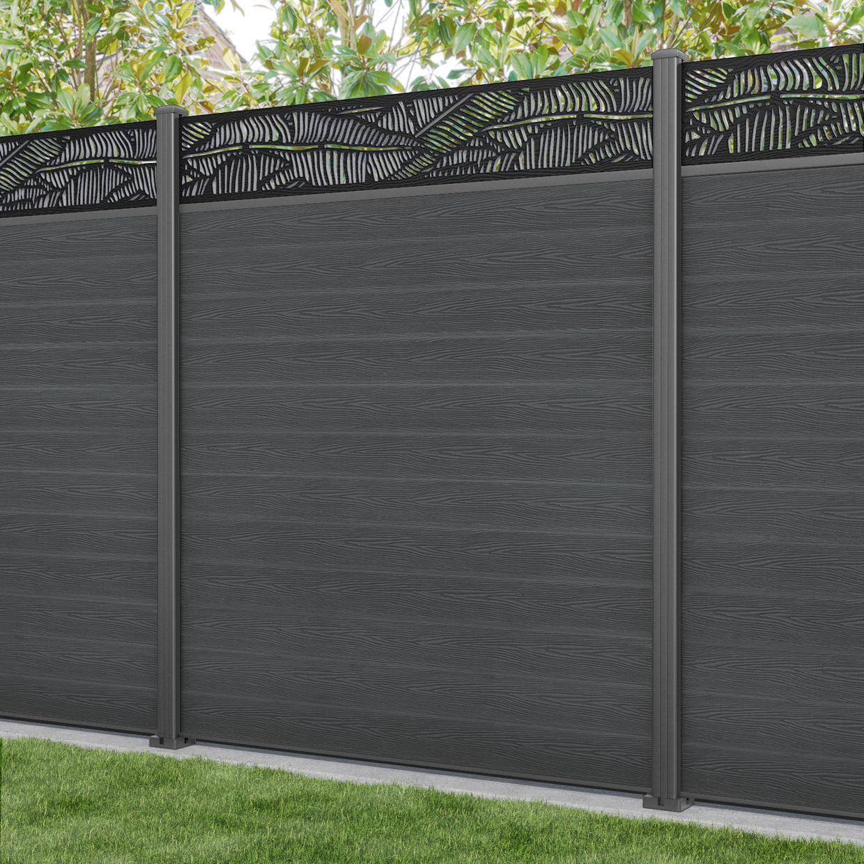 Classic Feather Fence Panel Dark Grey - with our aluminium posts
