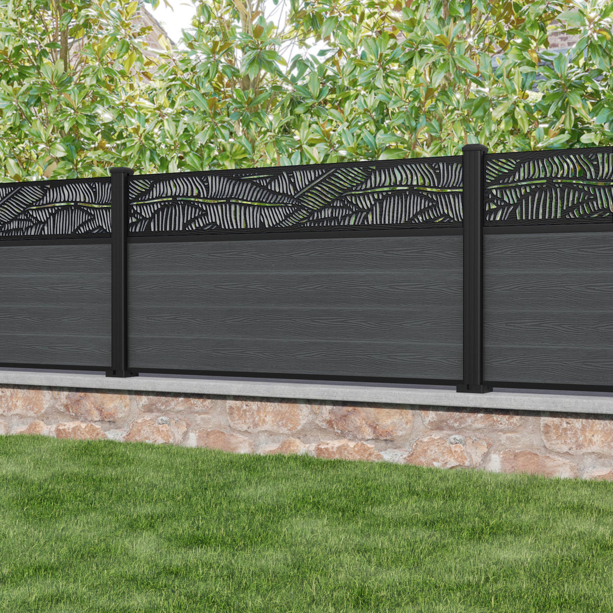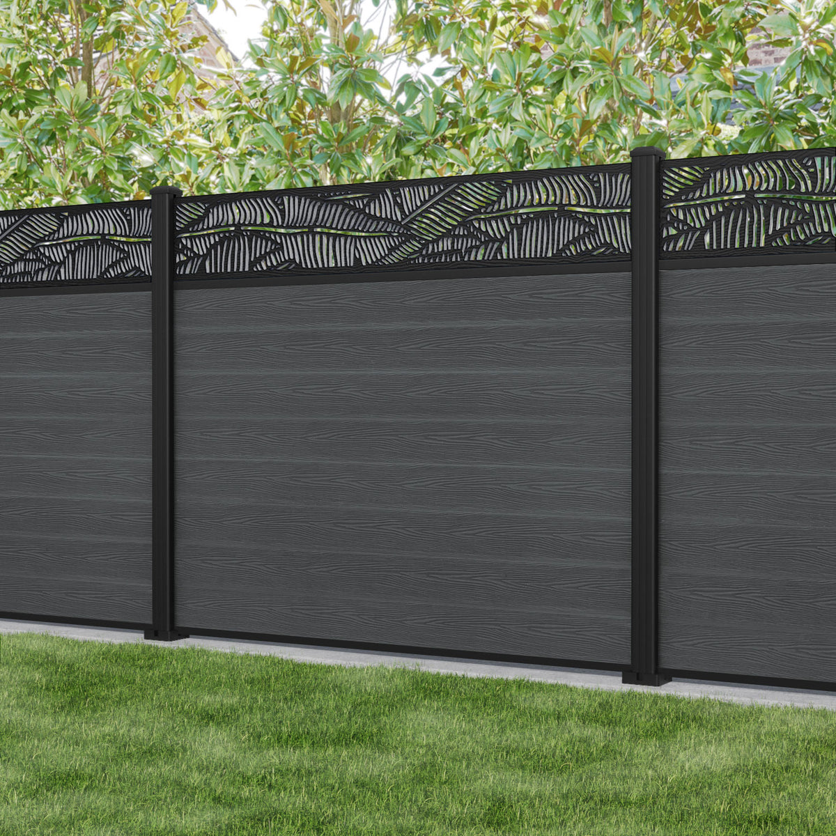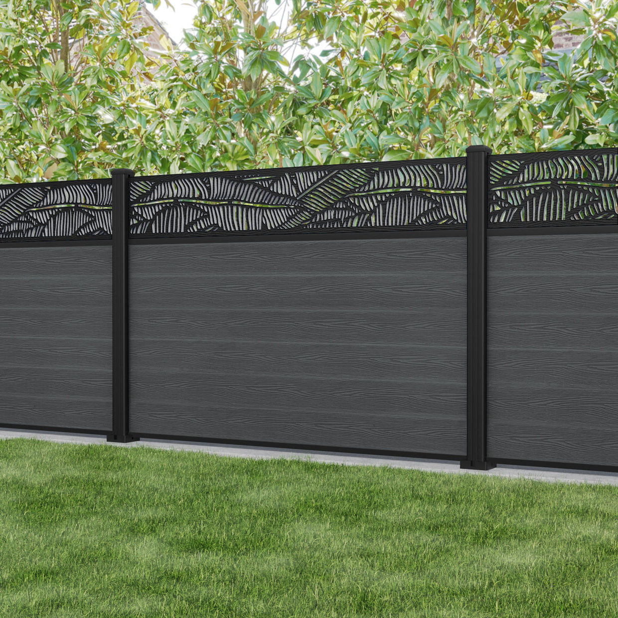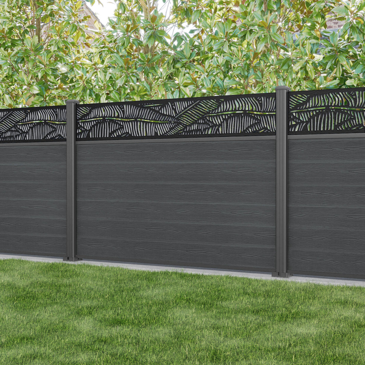 Classic Feather Fence Panel Dark Grey - with our aluminium posts