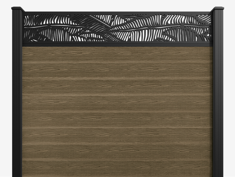 Classic Feather Fence Panel - Dark Oak - with our aluminium posts