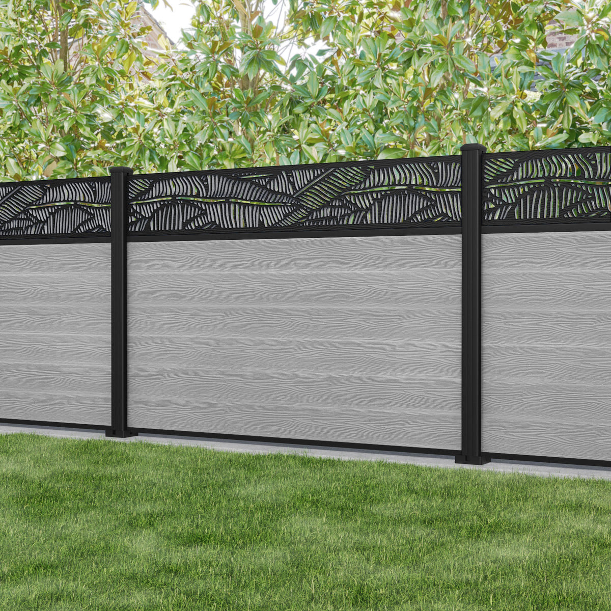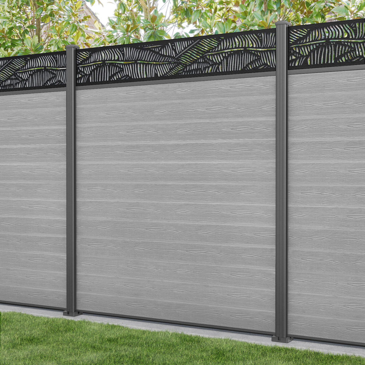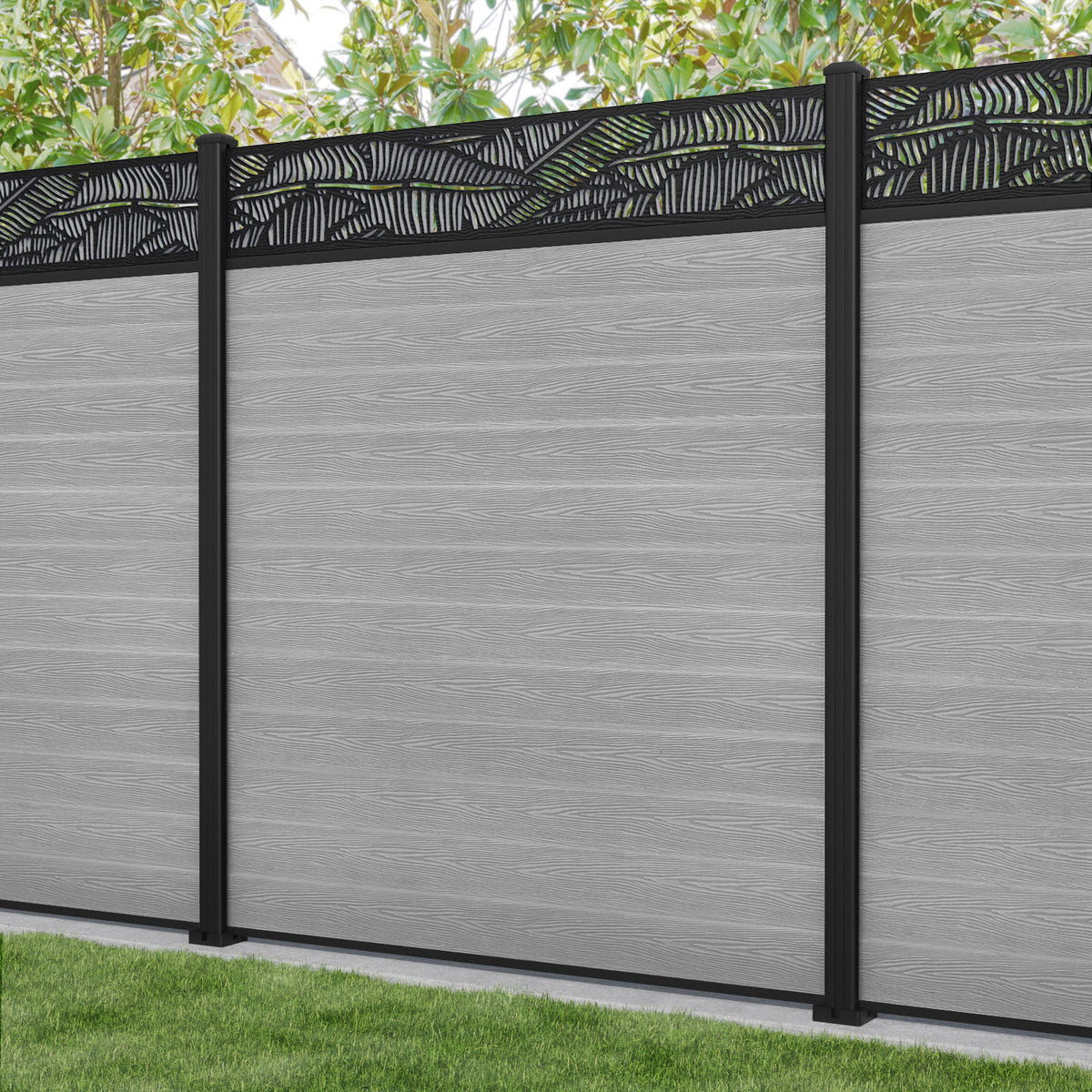 Classic Feather Fence Panel Light Grey - with our aluminium posts