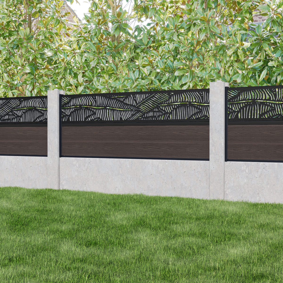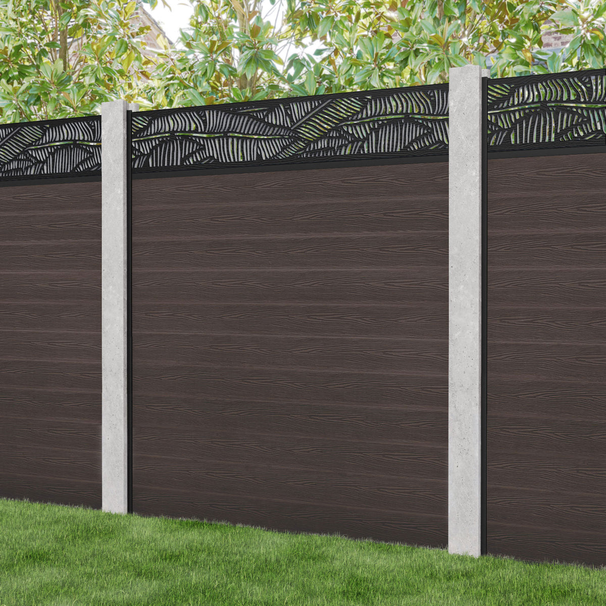 Our Feather premium composite fence screens, 18mm thick mid brown fence slats and high-grade composite channels are the perfect choice if you have existing concrete posts. Create an elegant, versatile, and eco-friendly fencing solution. Not only is this fencing responsibly sourced, it is also durable, long-lasting and requires no maintenance or painting.