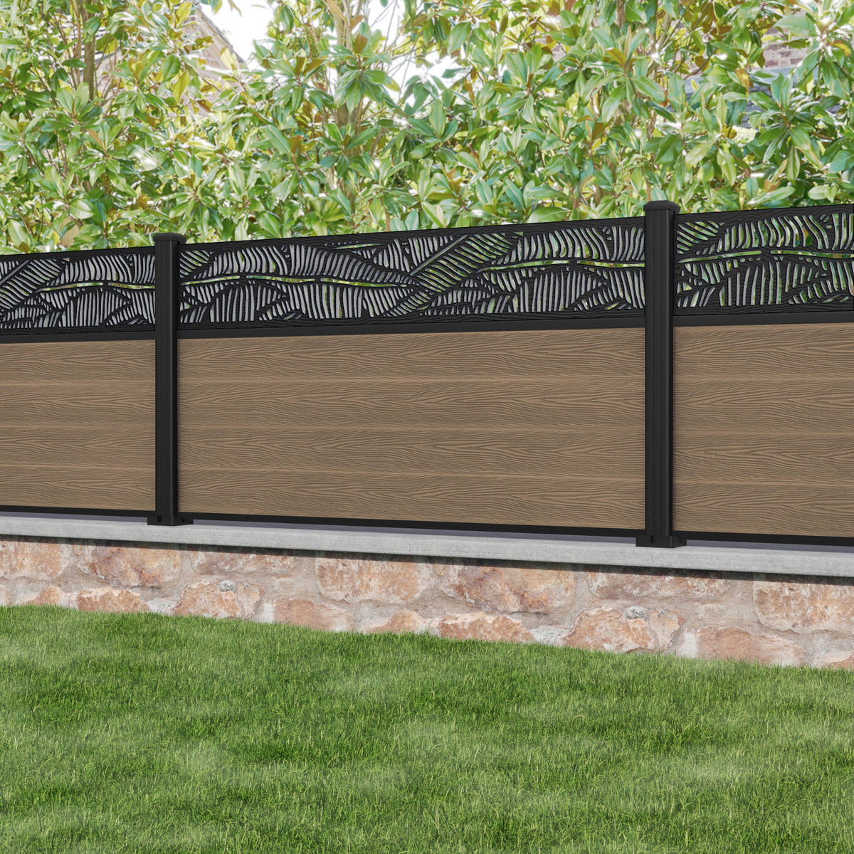Classic Feather Fence Panel Teak - with our aluminium posts