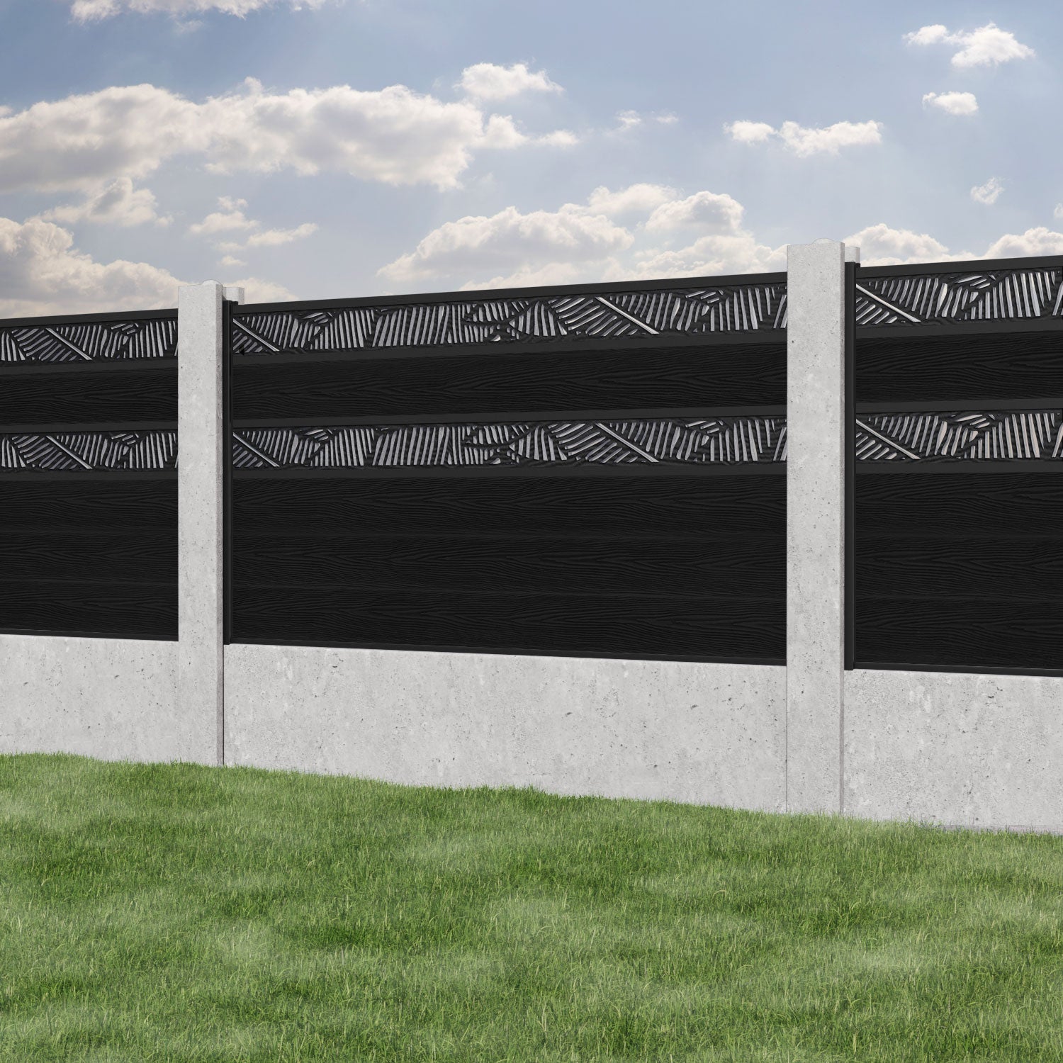 Classic Feather Split Screen Fence Panel Black - for existing concrete posts