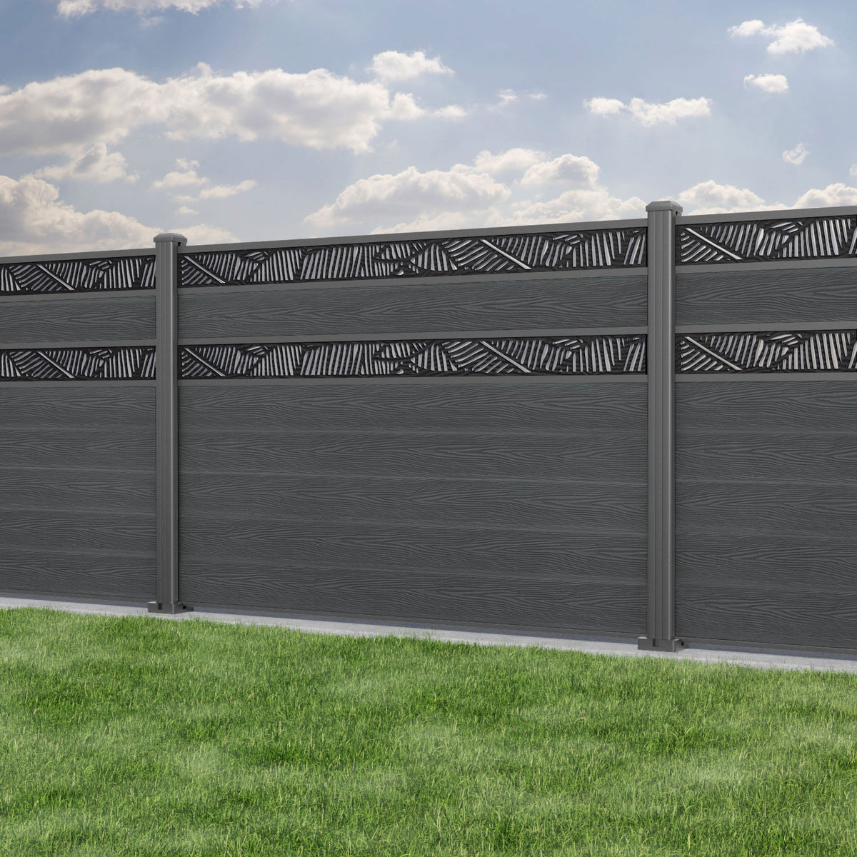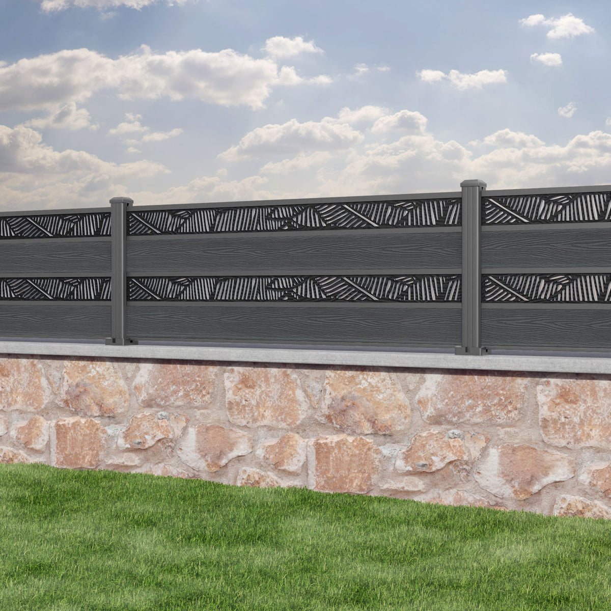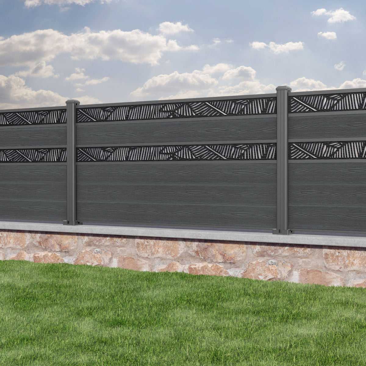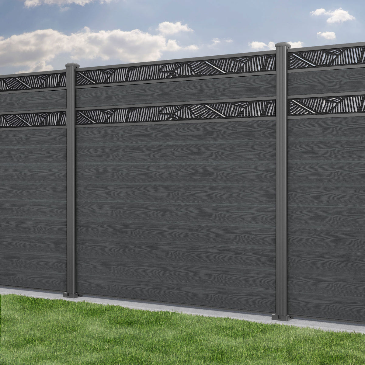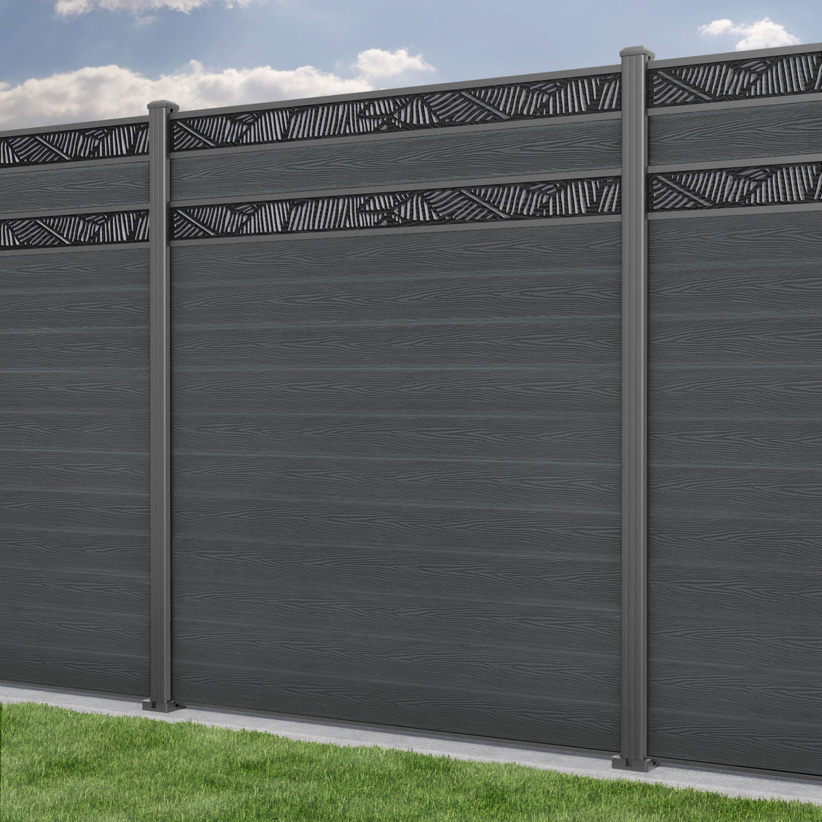 Classic Feather Split Screen Fence Panel Dark Grey - with our aluminium posts