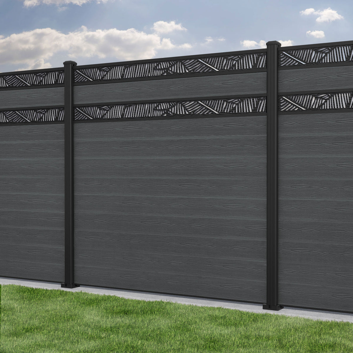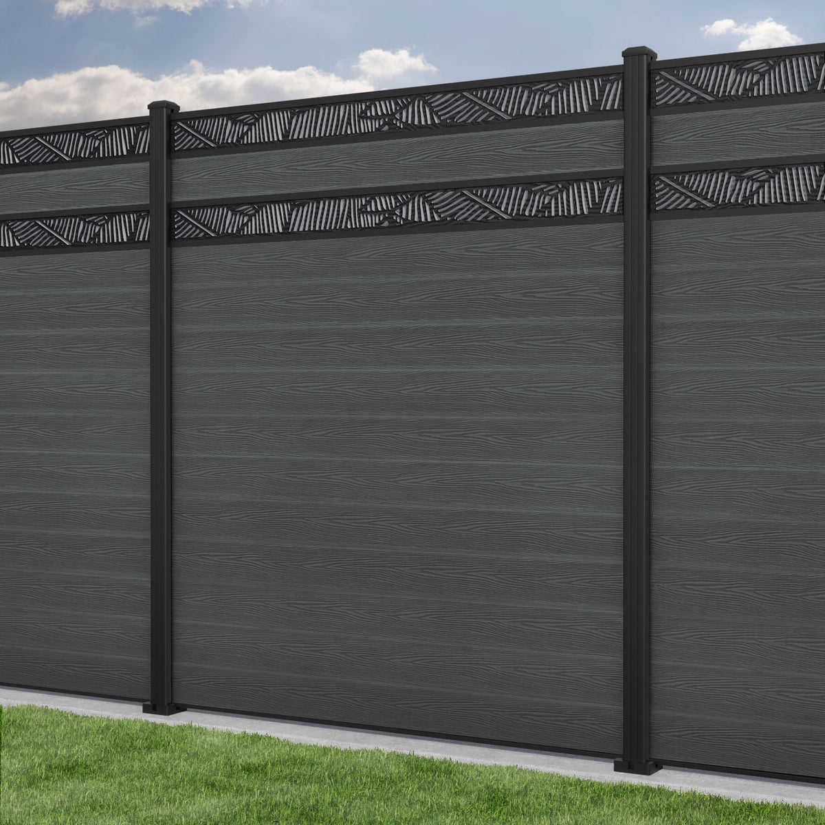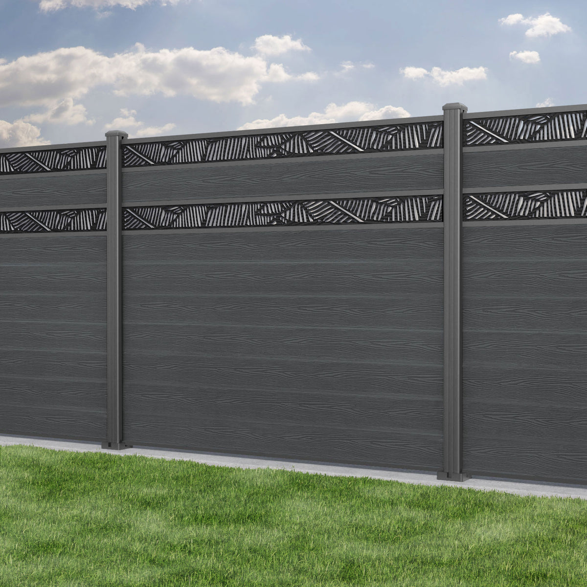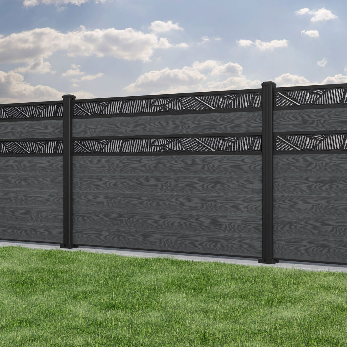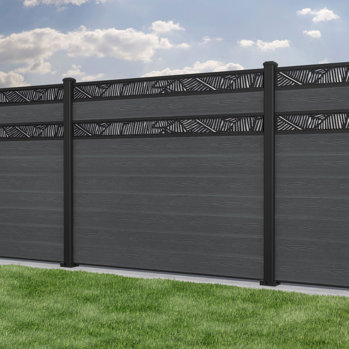 Classic Feather Split Screen Fence Panel Dark Grey - with our aluminium posts