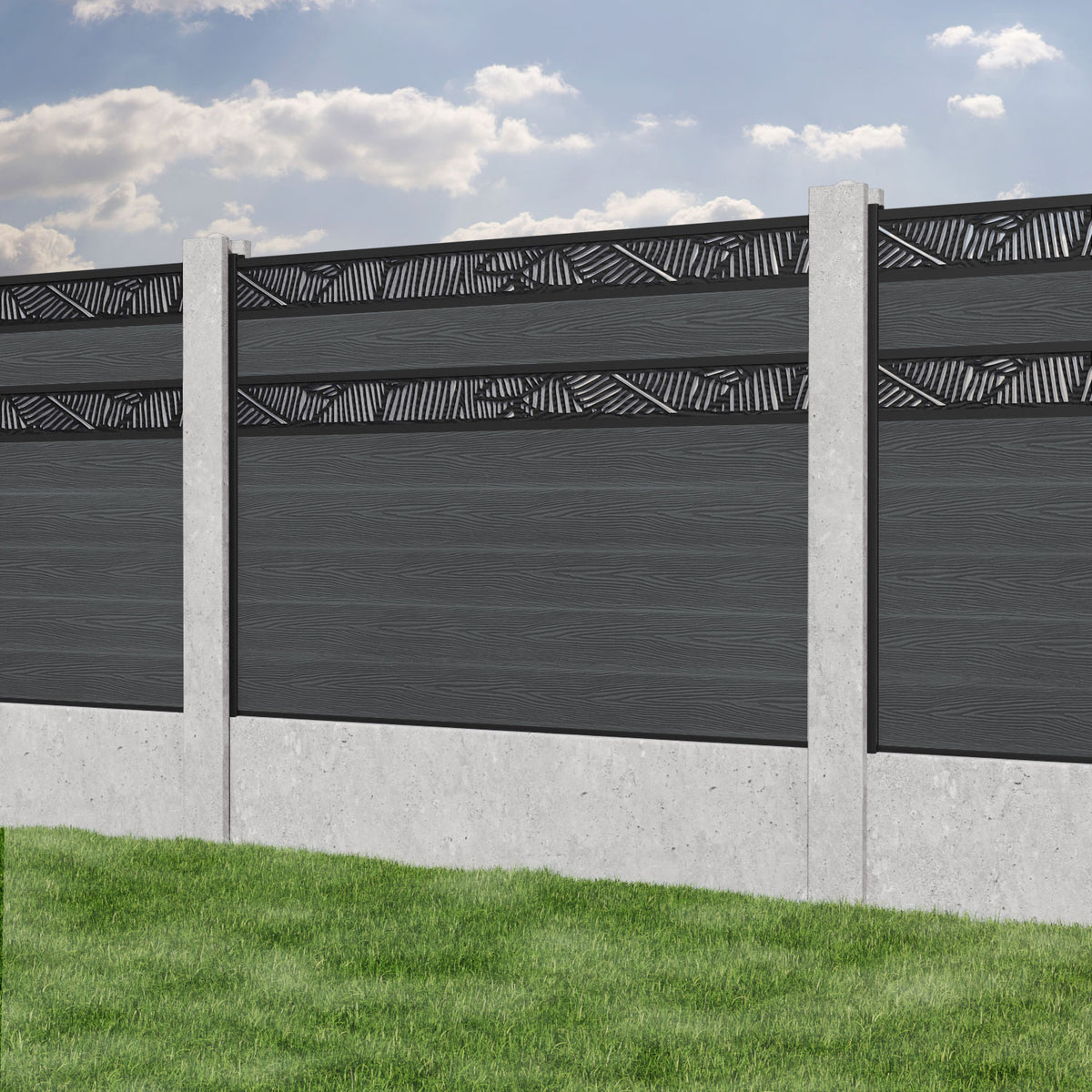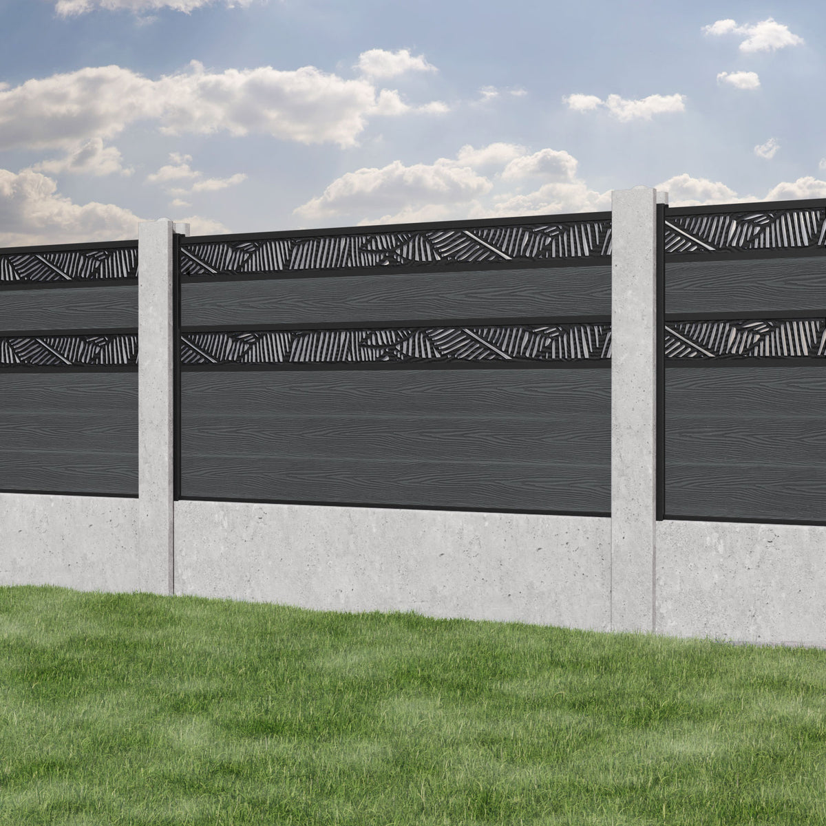 Classic Feather Split Screen Fence Panel Dark Grey - for existing concrete posts