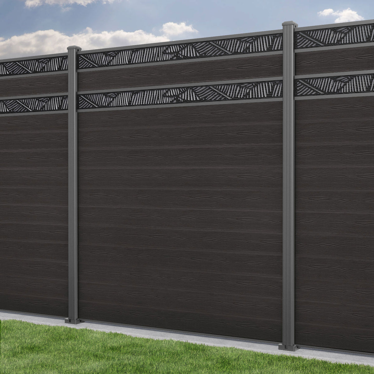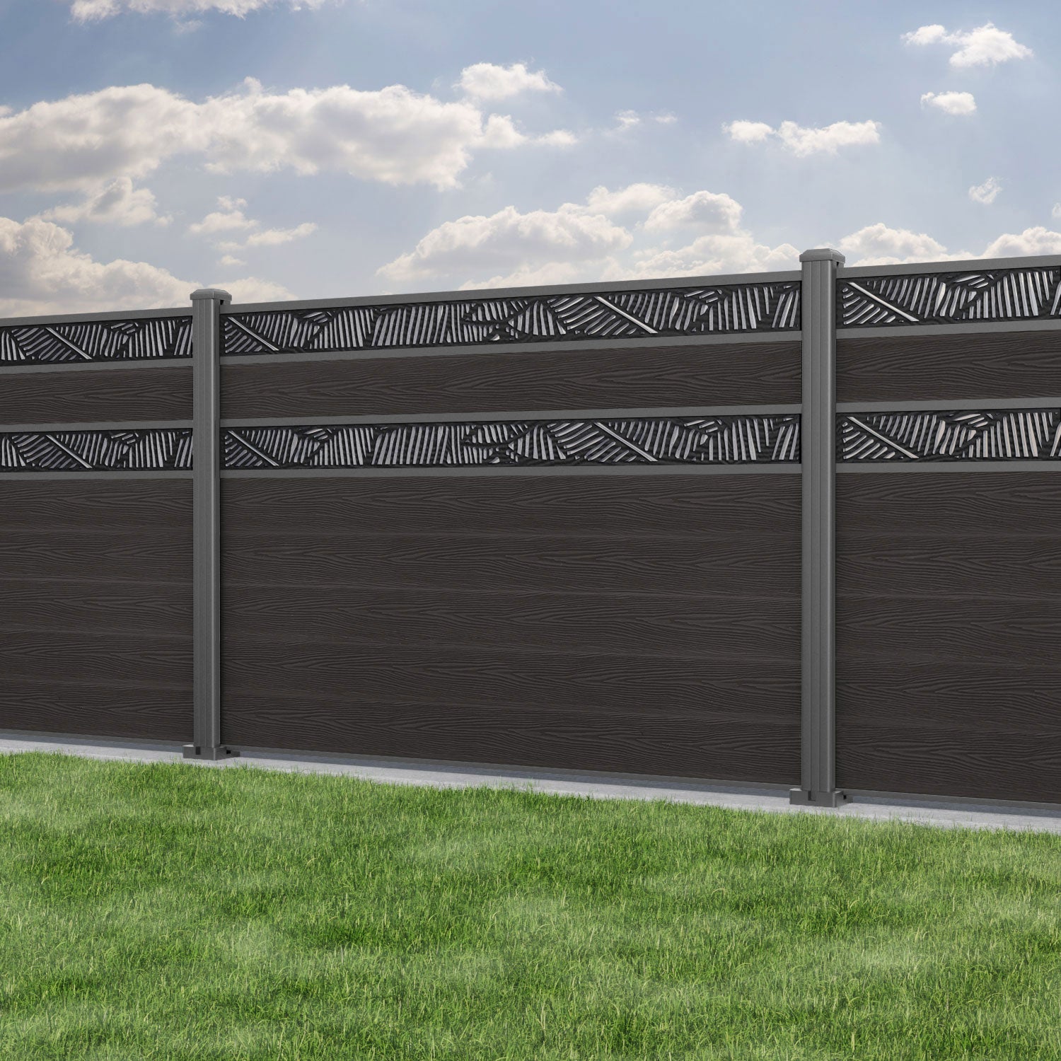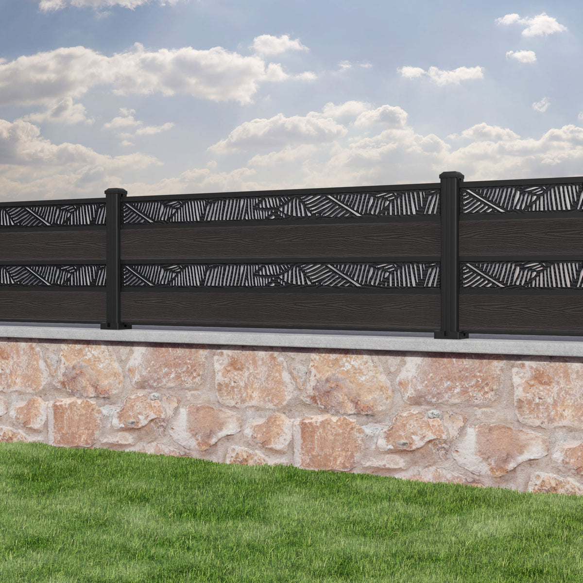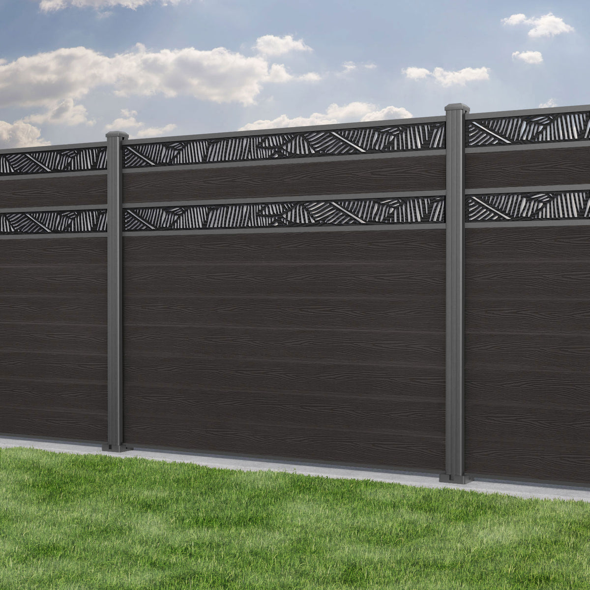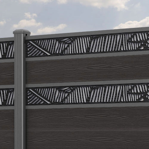 Classic Feather Split Screen Fence Panel Dark Oak - with our aluminium posts