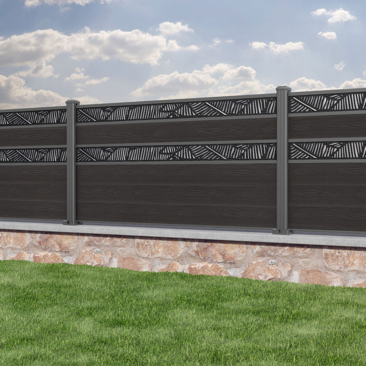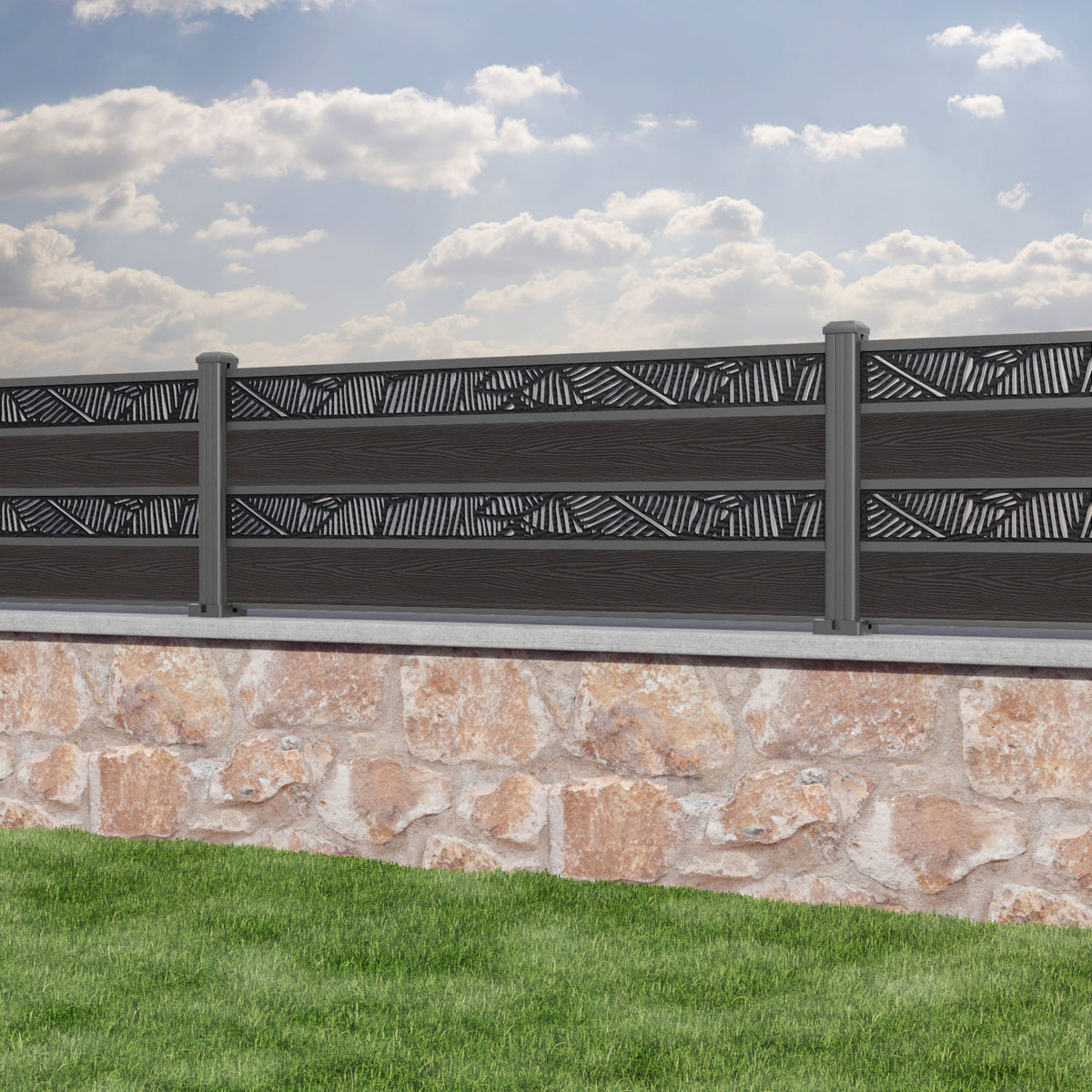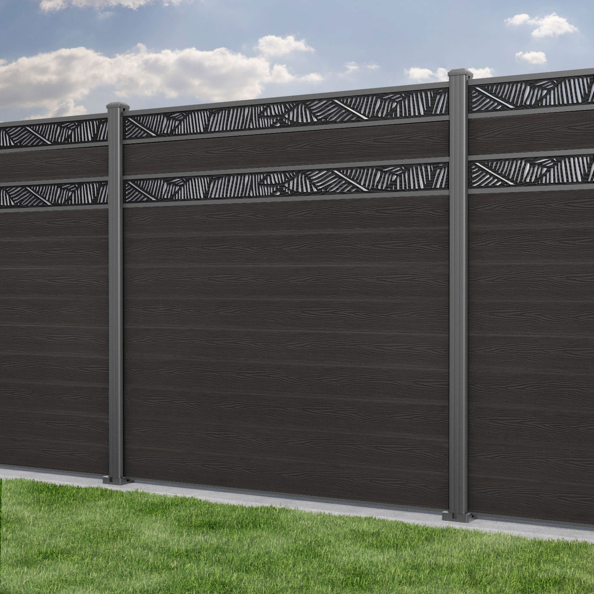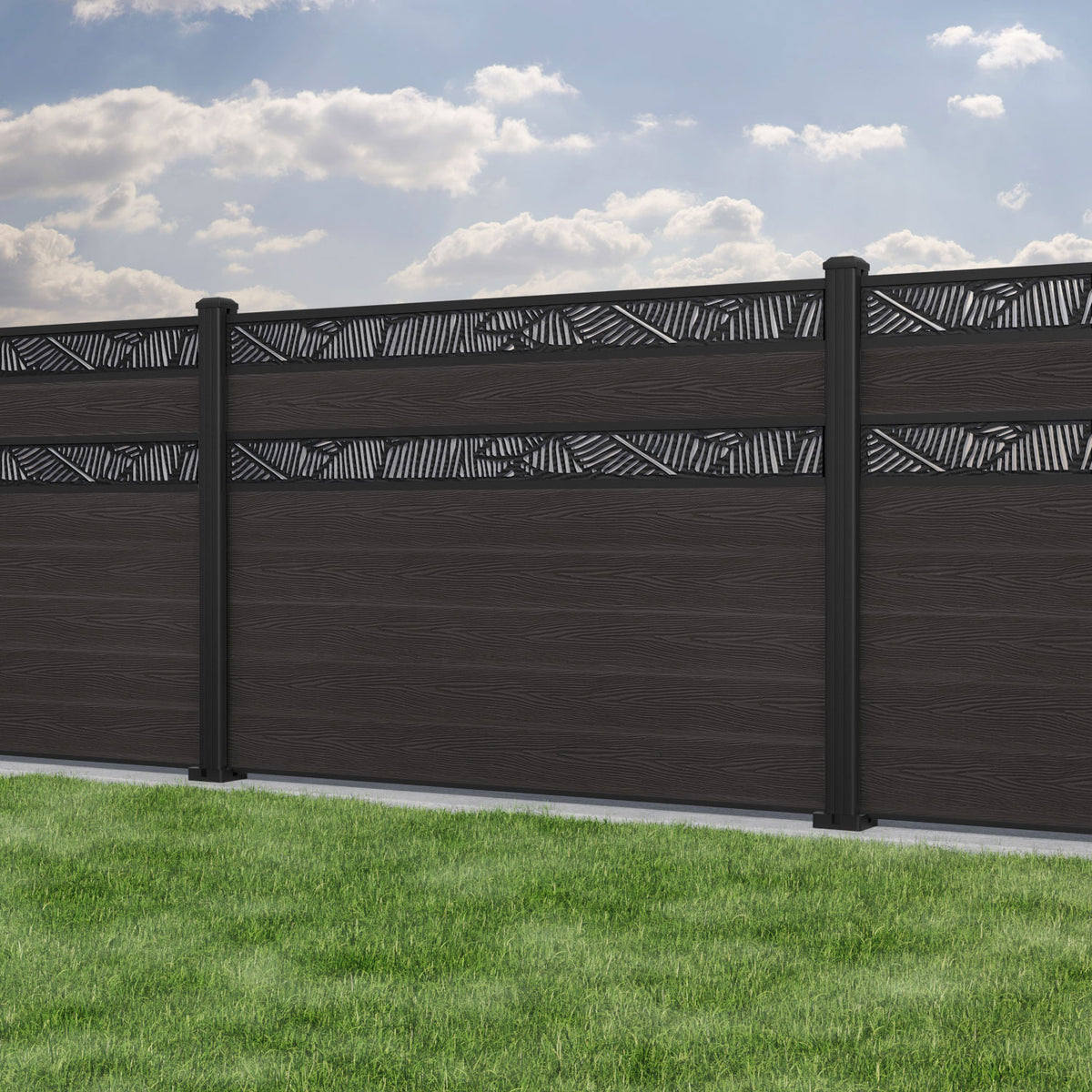 Classic Feather Split Screen Fence Panel Dark Oak - with our aluminium posts