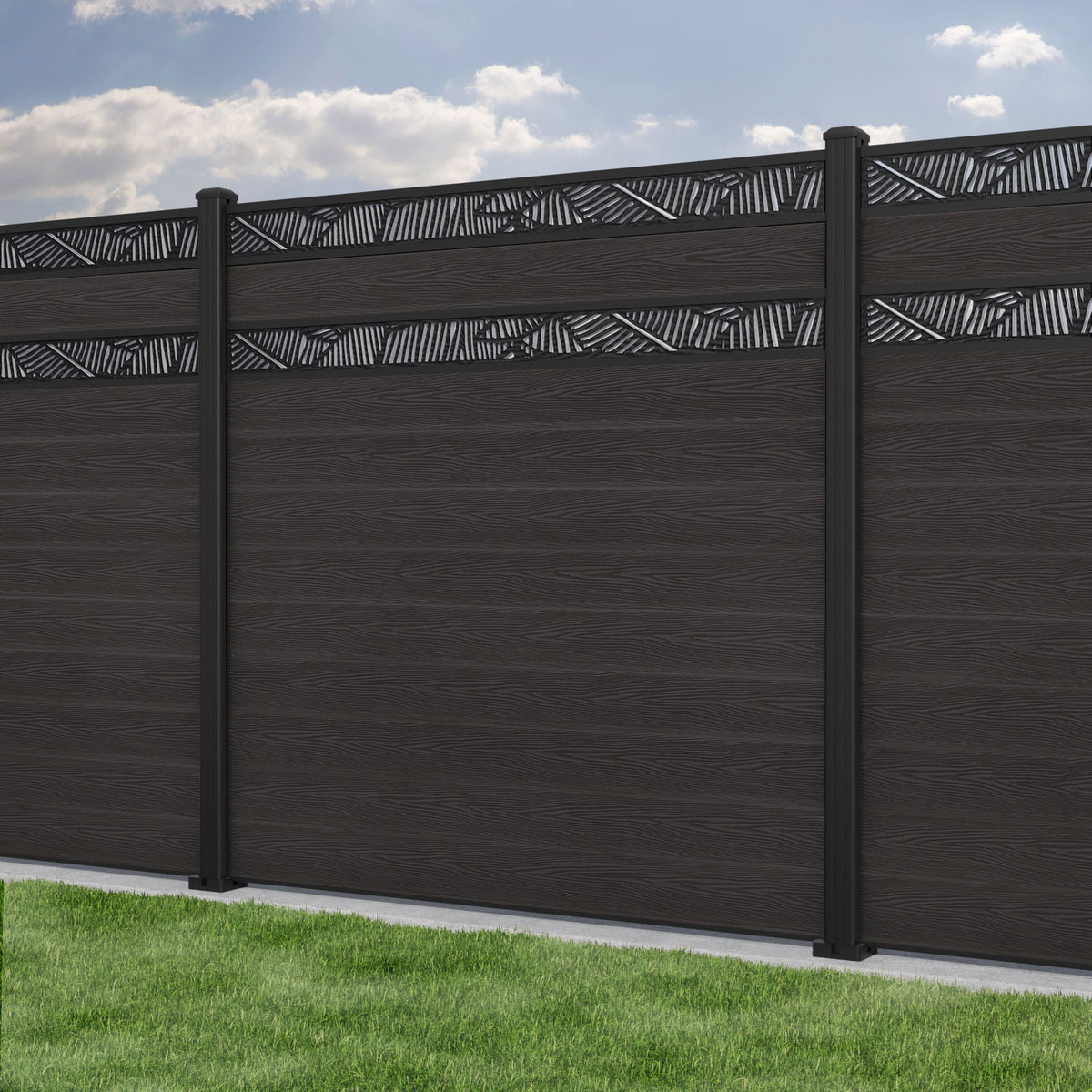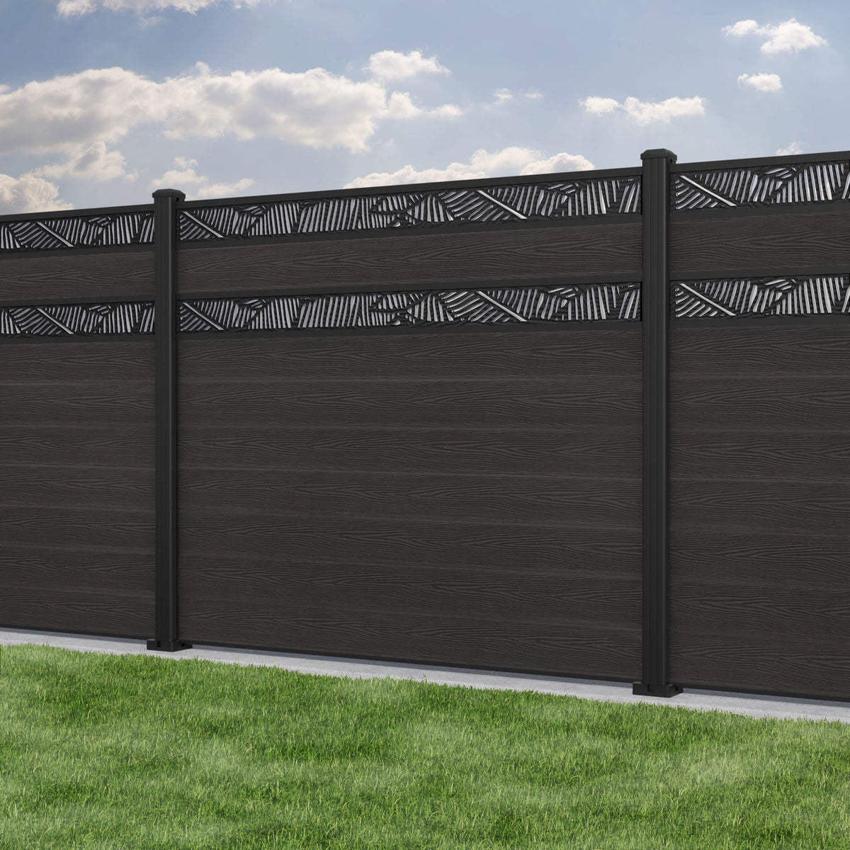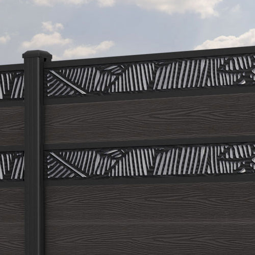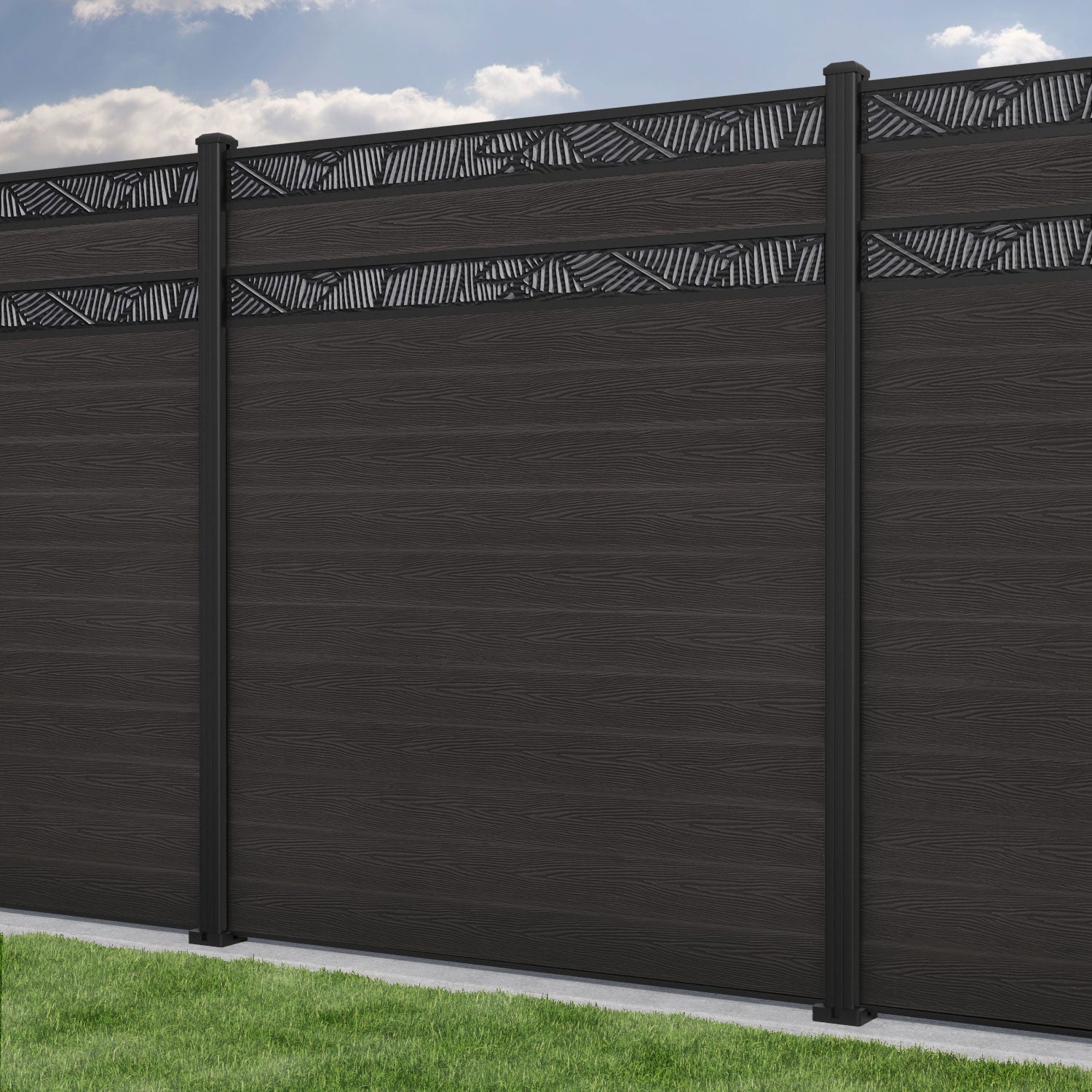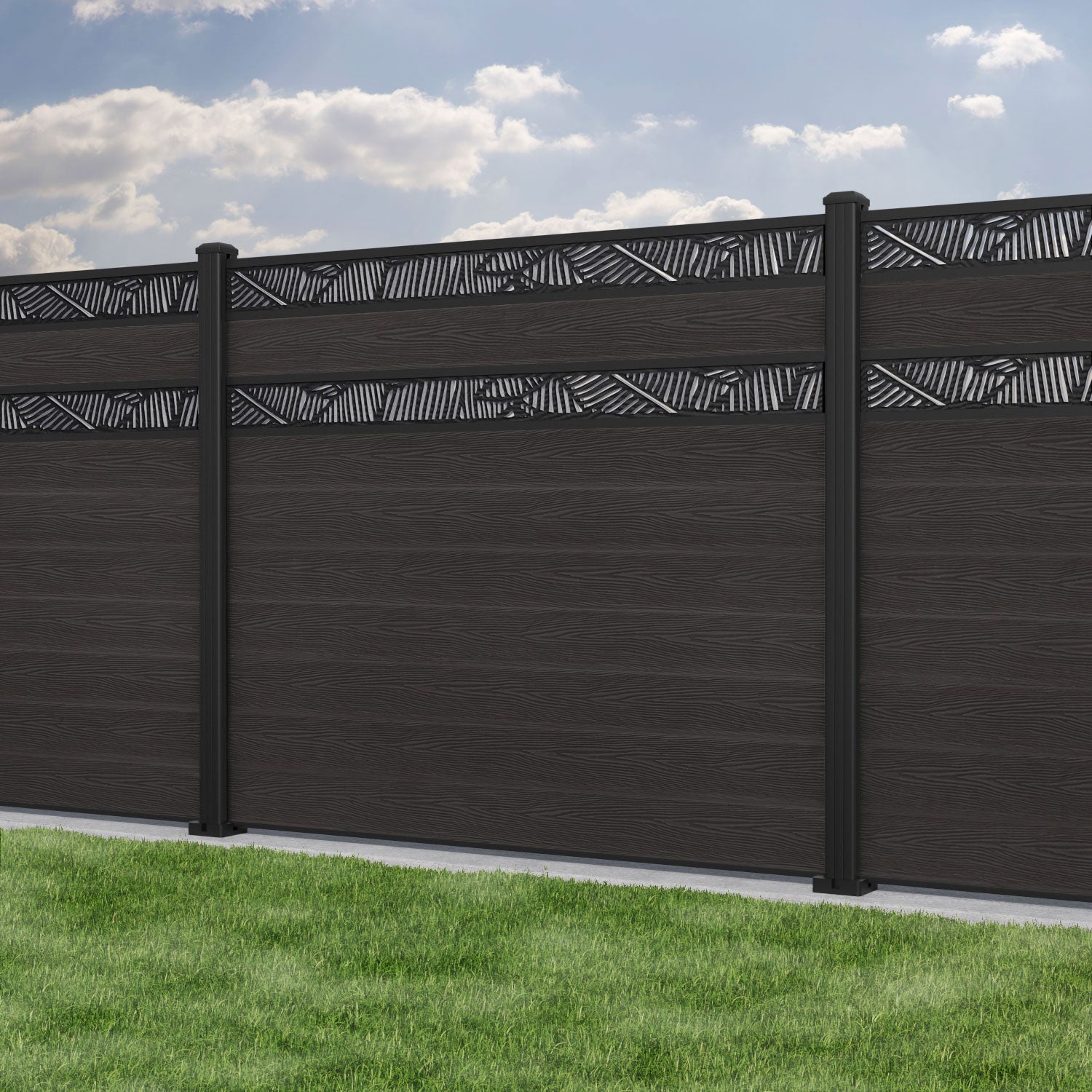 Classic Feather Split Screen Fence Panel Dark Oak - with our aluminium posts