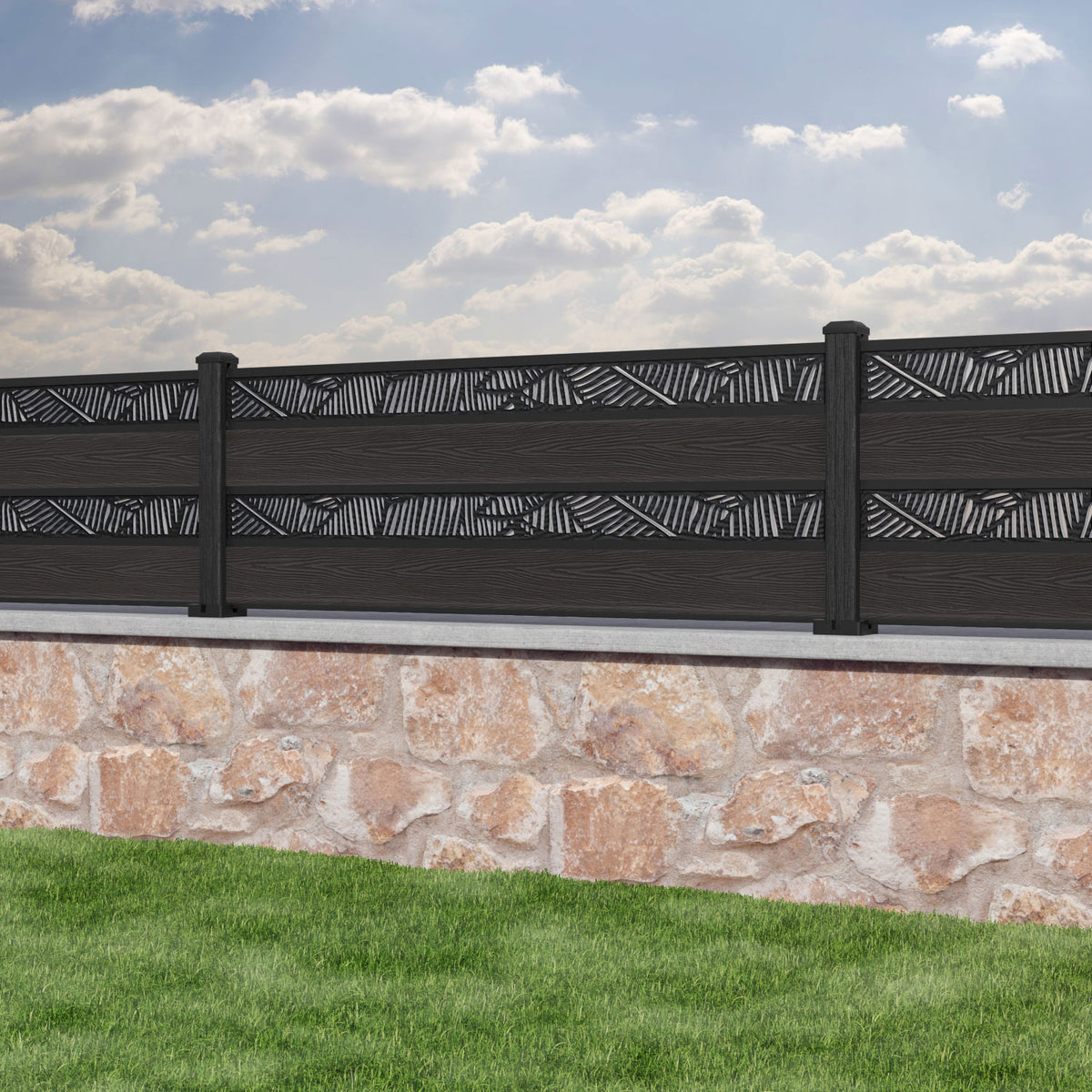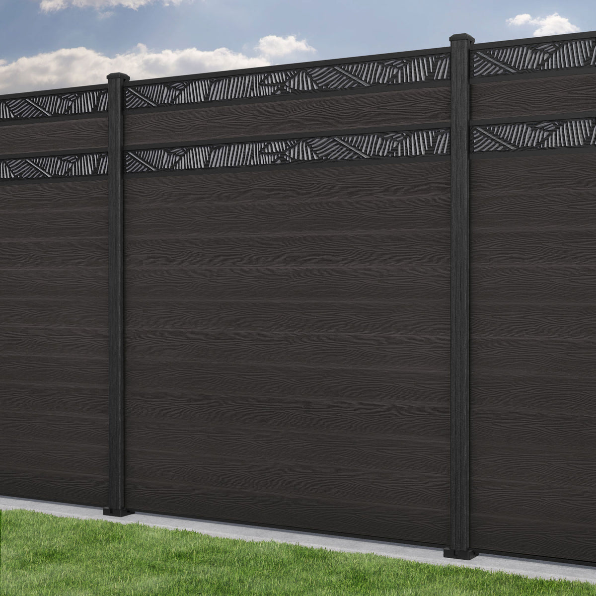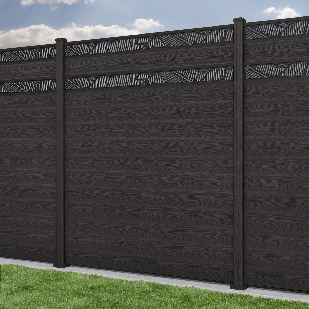 Classic Feather Split Screen Fence Panel - Dark Oak - with our composite posts