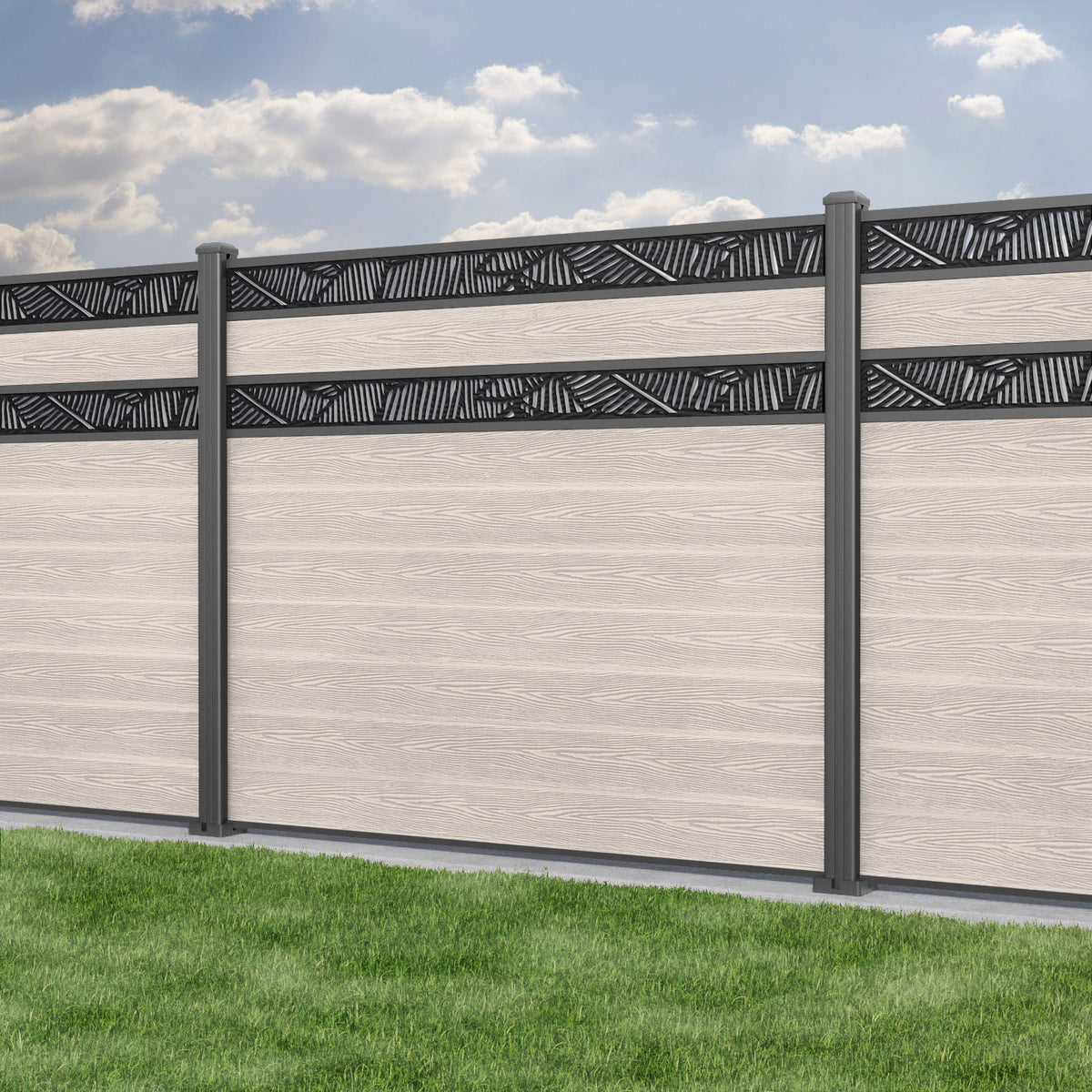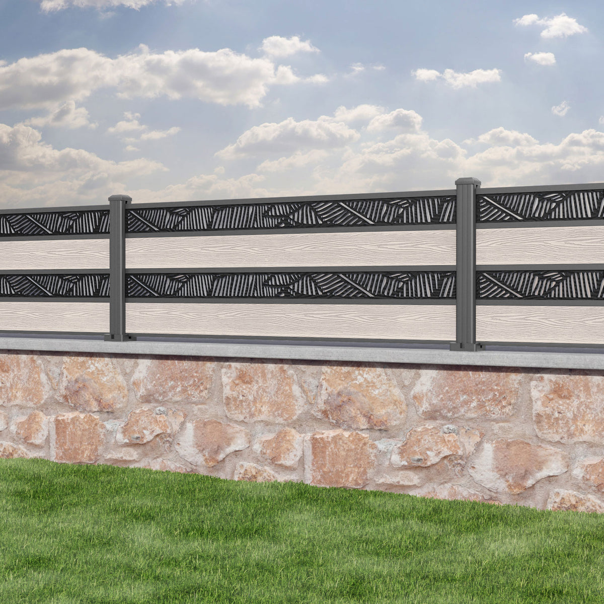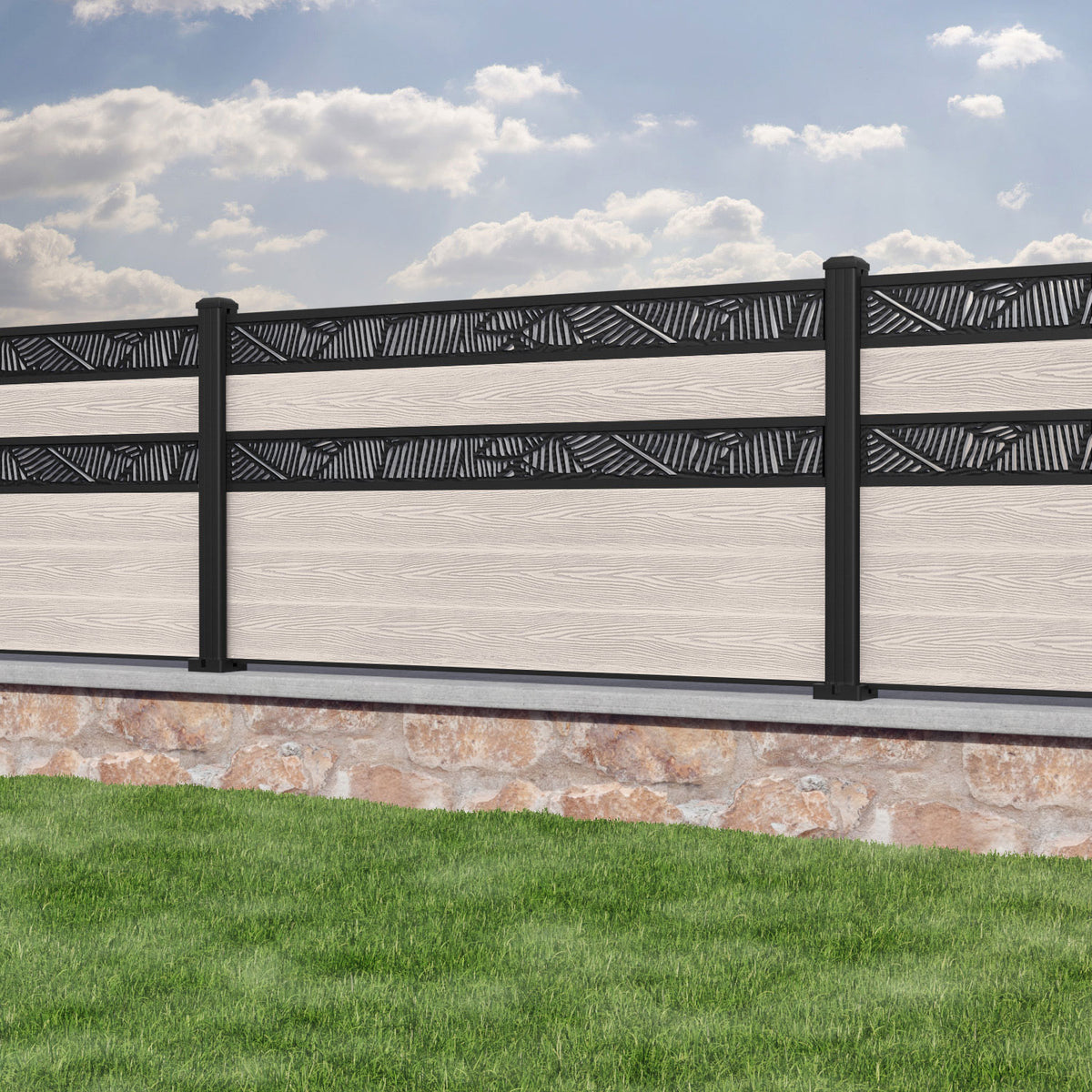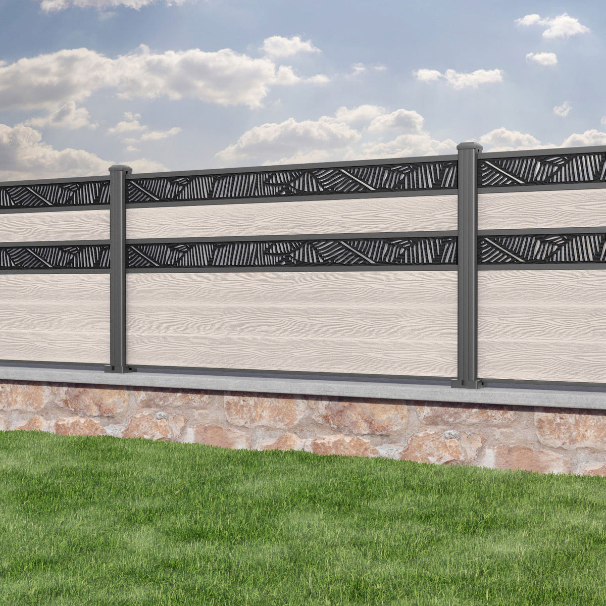 Classic Feather Split Screen Fence Panel Mid Stone - with our aluminium posts