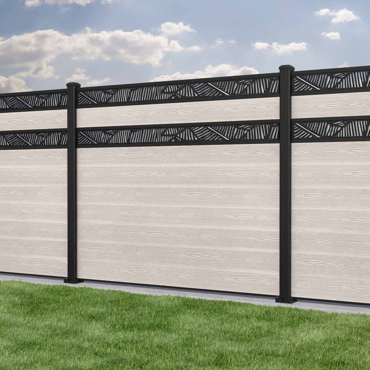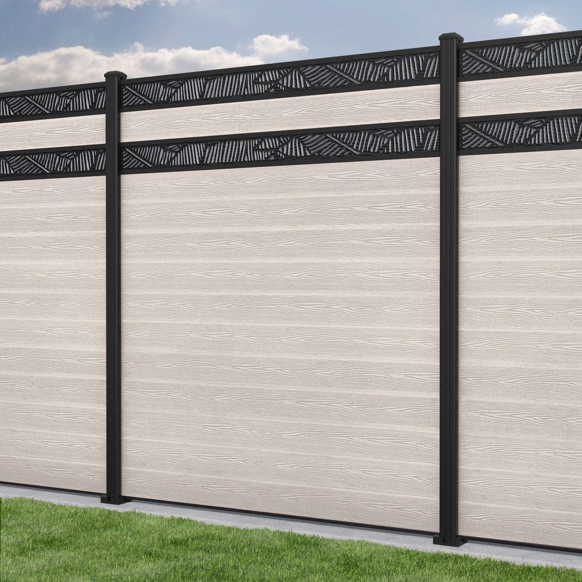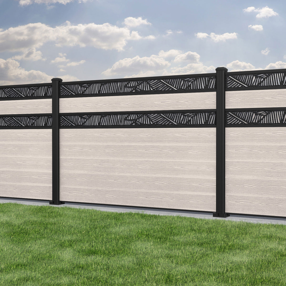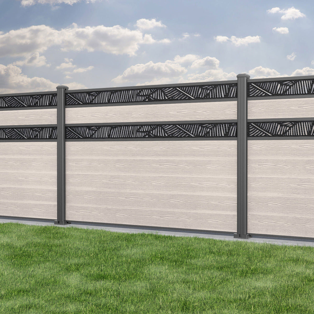 Classic Feather Split Screen Fence Panel Mid Stone - with our aluminium posts