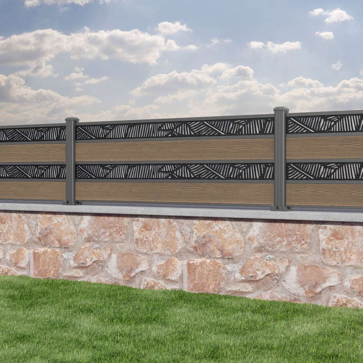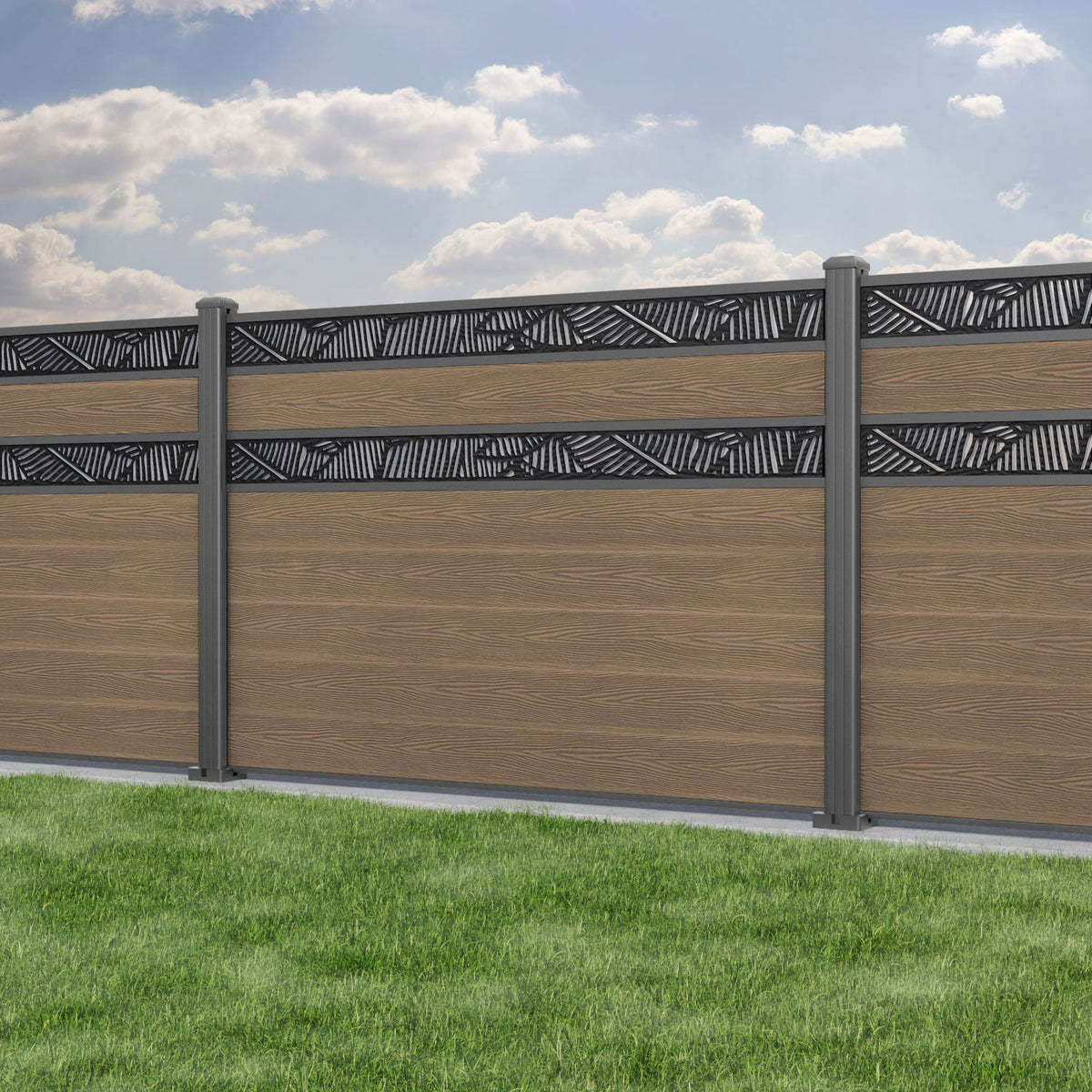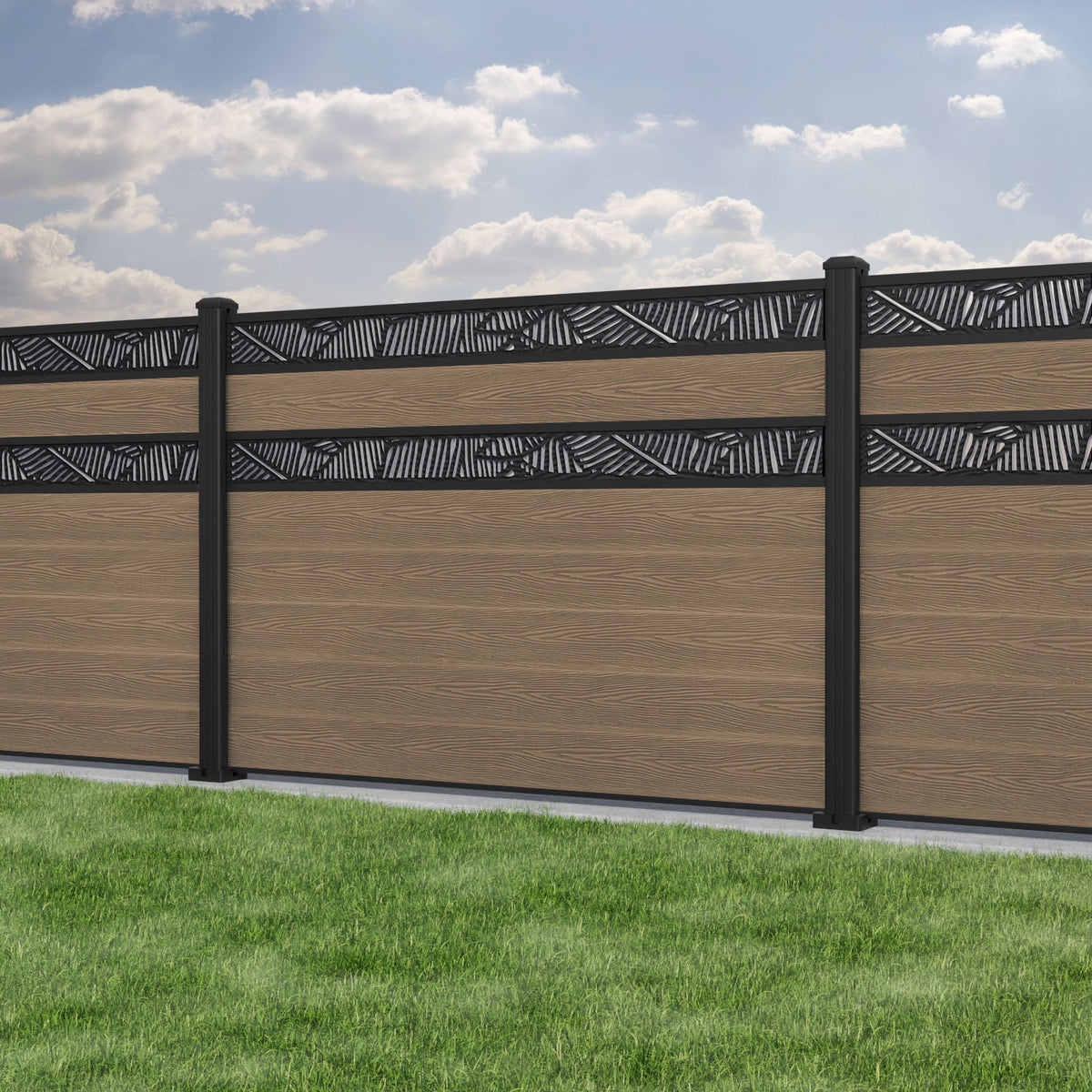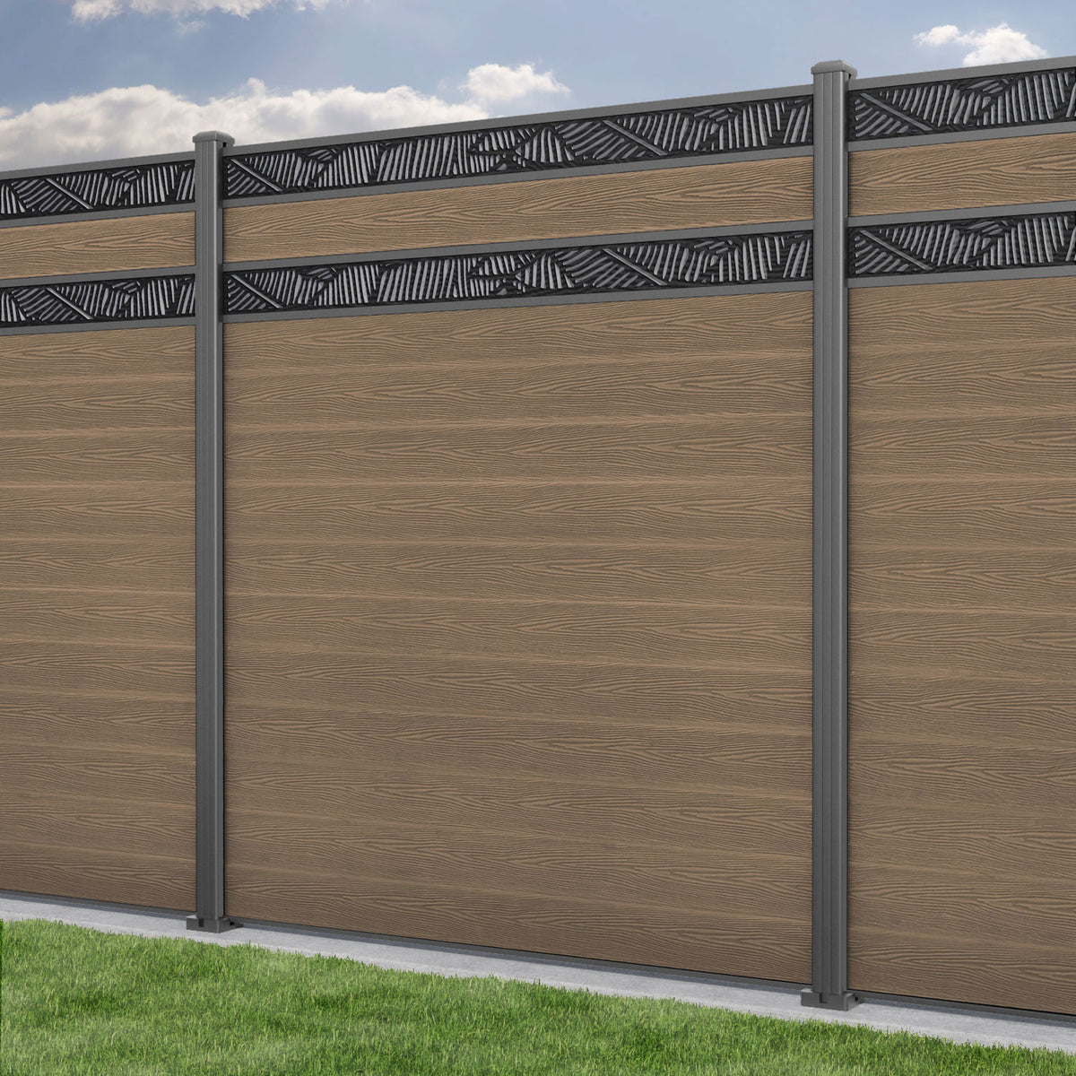 Classic Feather Split Screen Fence Panel Teak - with our aluminium posts