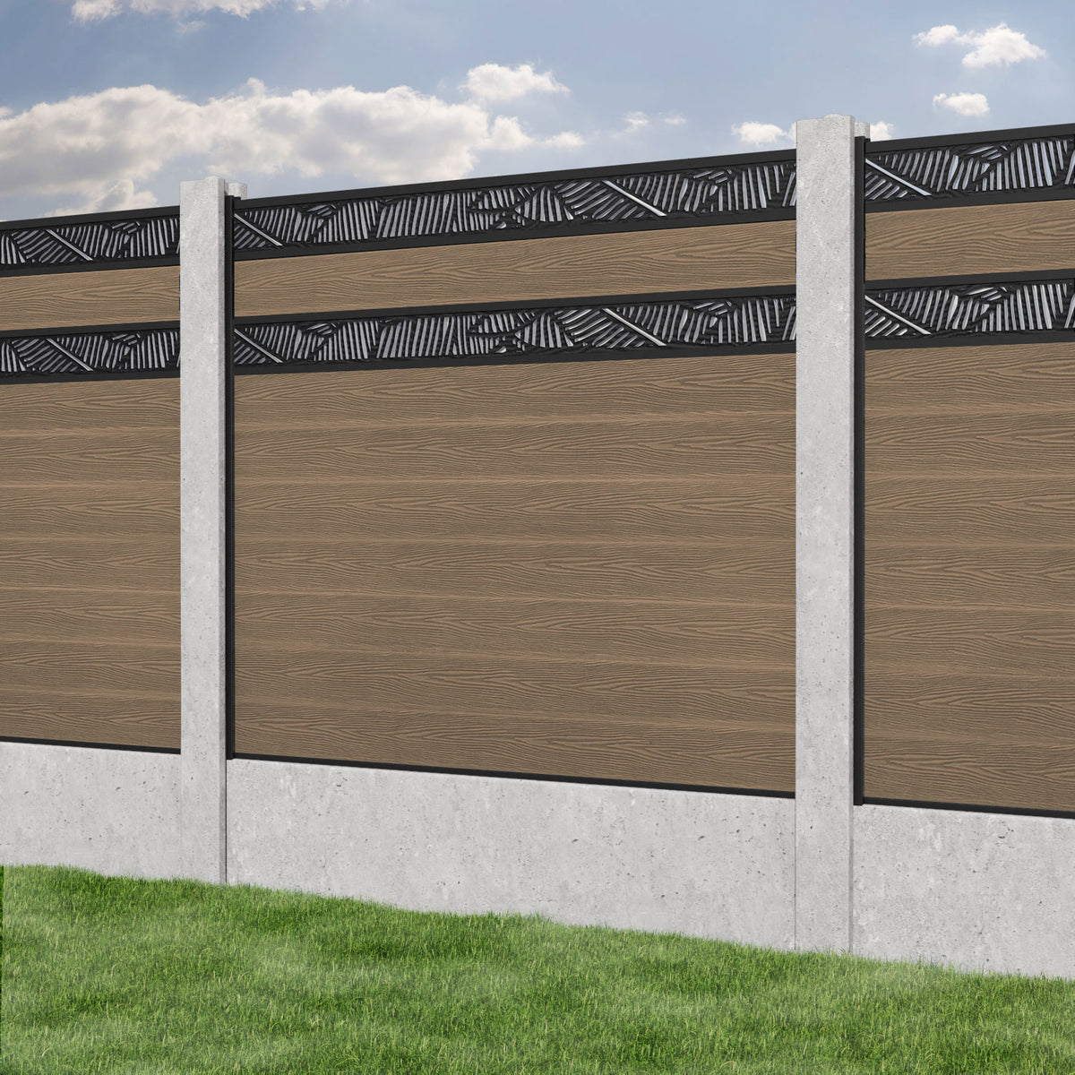 Classic Feather Split Screen Fence Panel Teak - for existing concrete posts