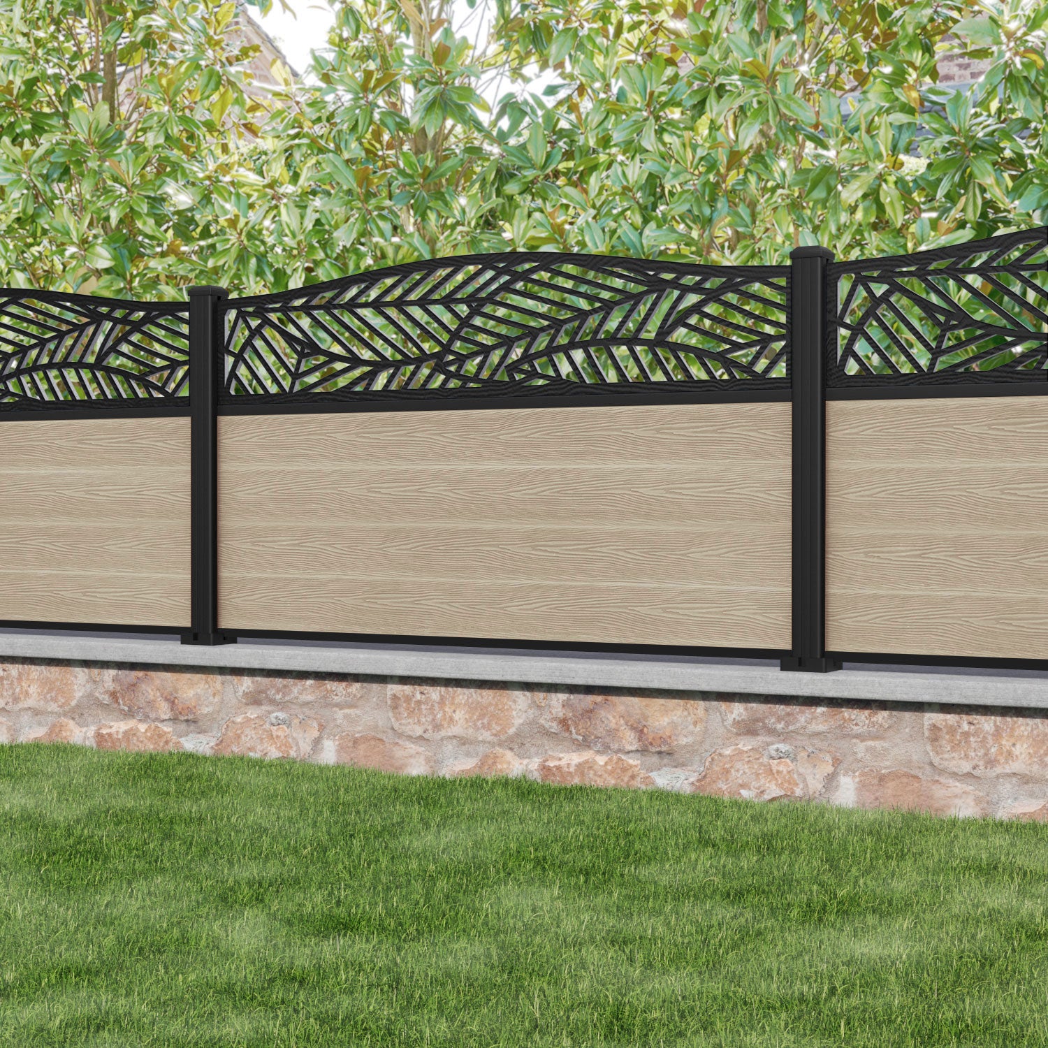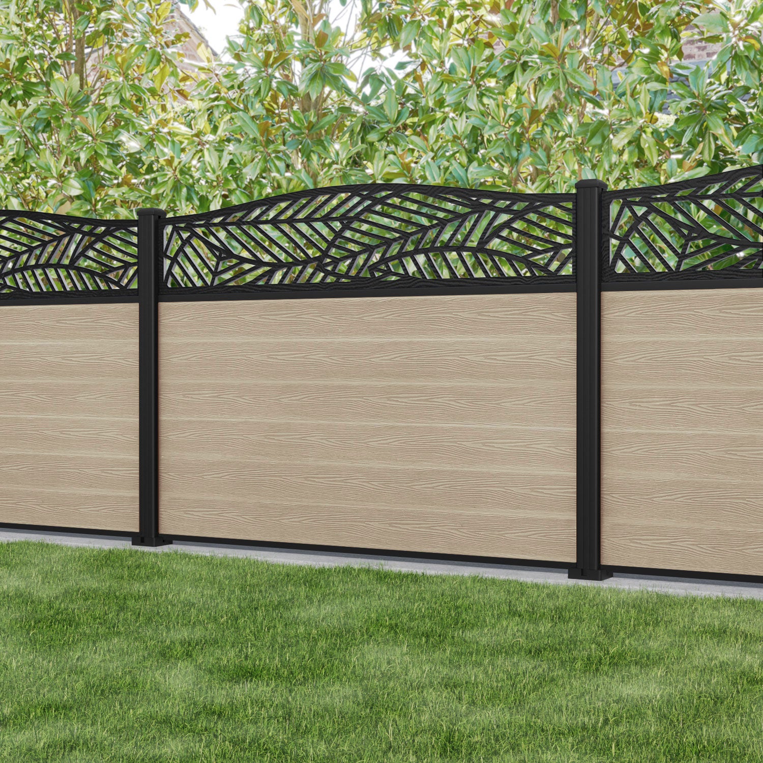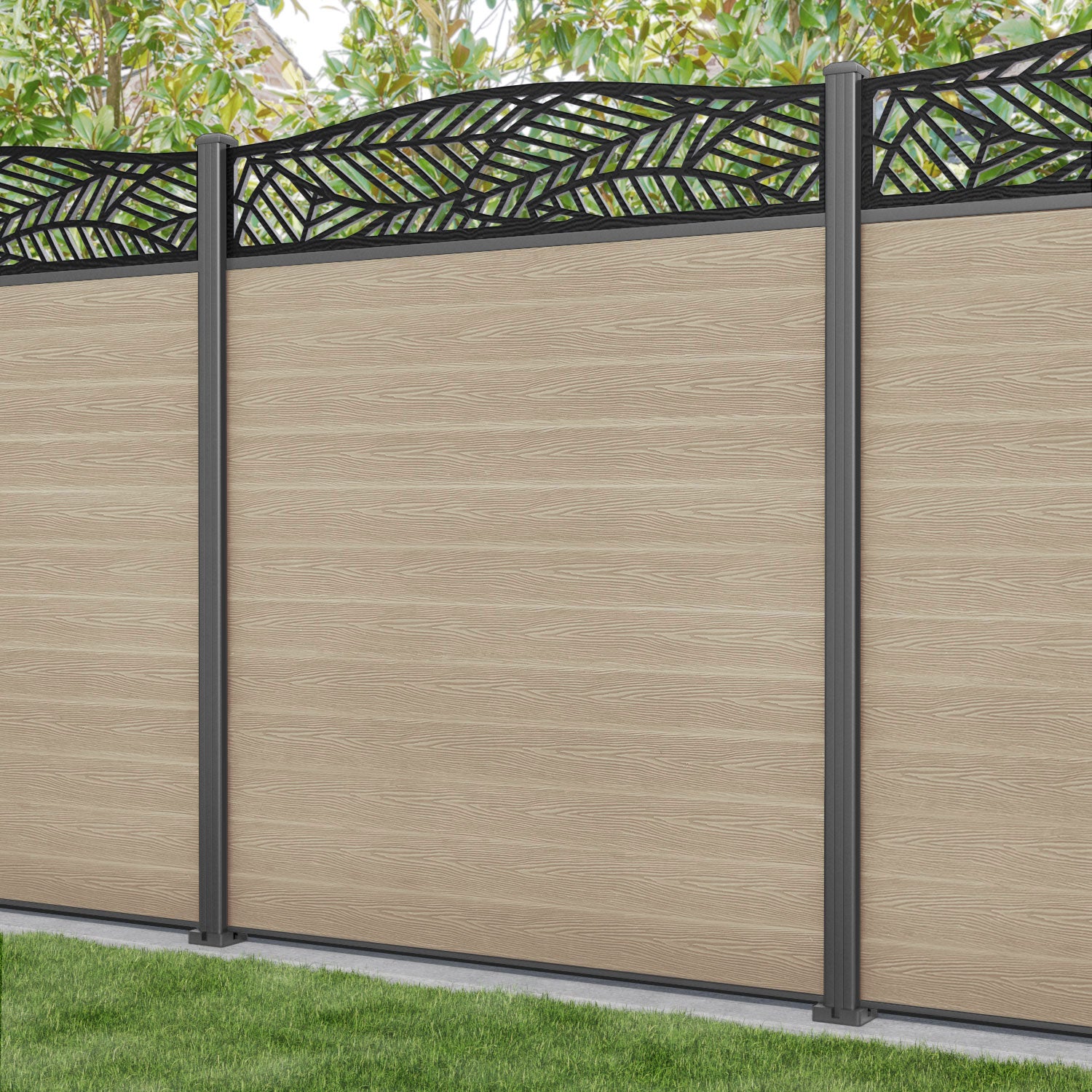 Classic Habitat Curved Top Fence Panel Light Oak - with our aluminium posts