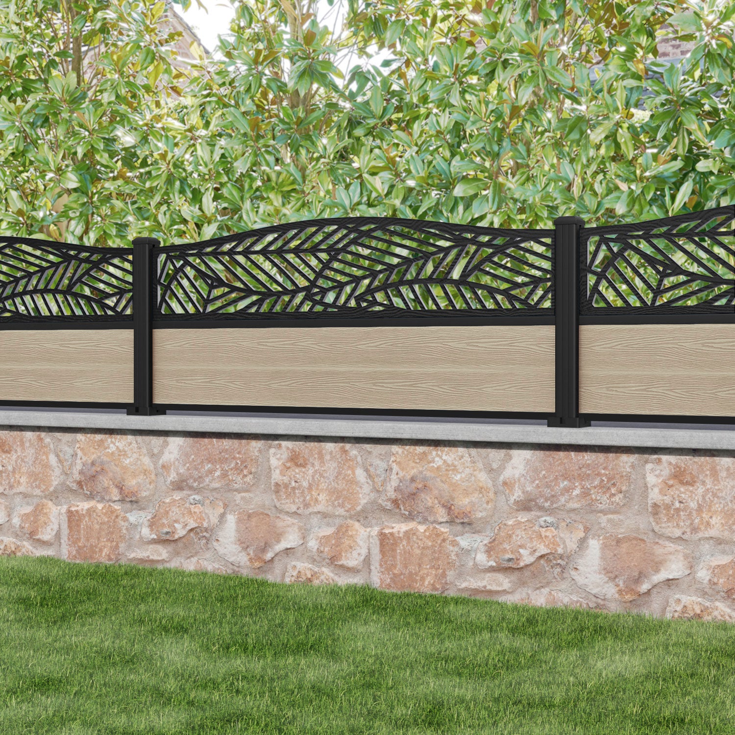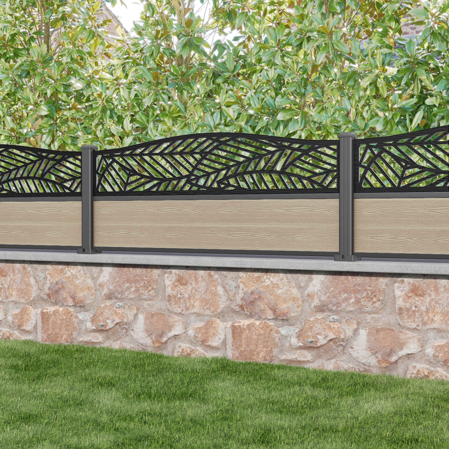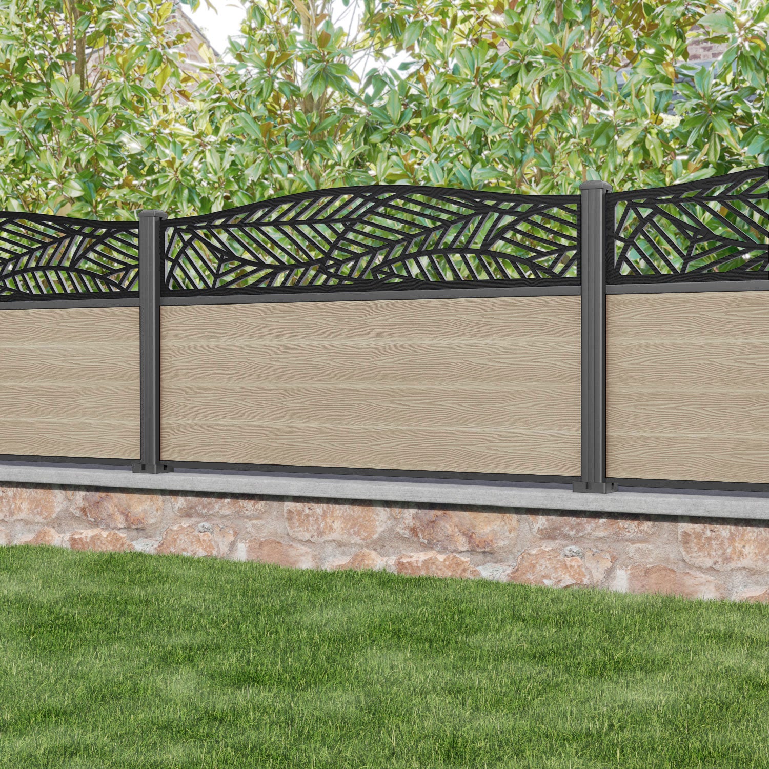 Classic Habitat Curved Top Fence Panel Light Oak - with our aluminium posts