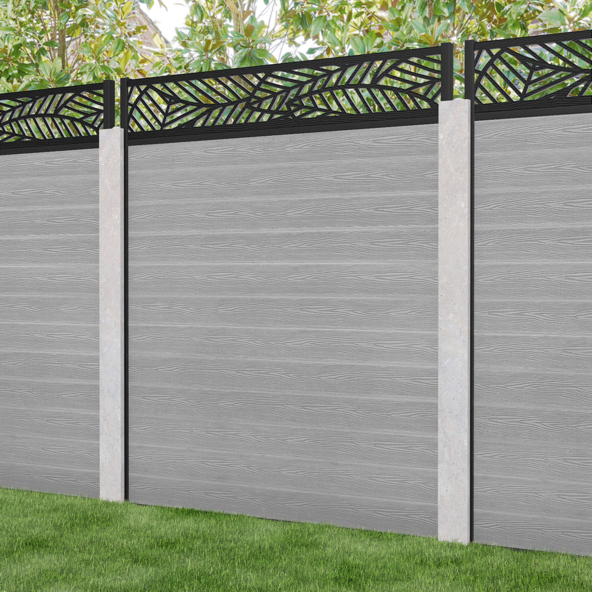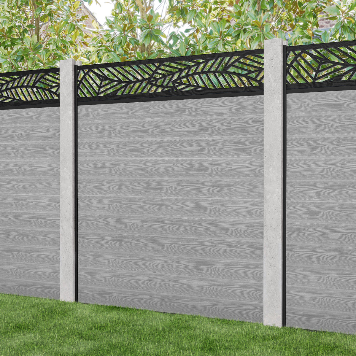 Our Habitat premium composite fence screens, 18mm thick light grey fence slats and high-grade composite channels are the perfect choice if you have existing concrete posts. Create an elegant, versatile, and eco-friendly fencing solution. Not only is this fencing responsibly sourced, it is also durable, long-lasting and requires no maintenance or painting.