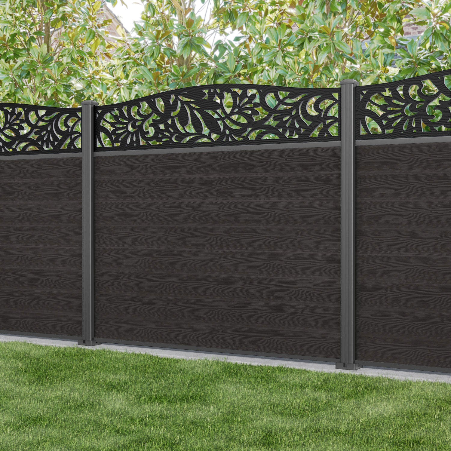 Classic Heritage Curved Top Fence Panel Dark Oak - with our aluminium posts