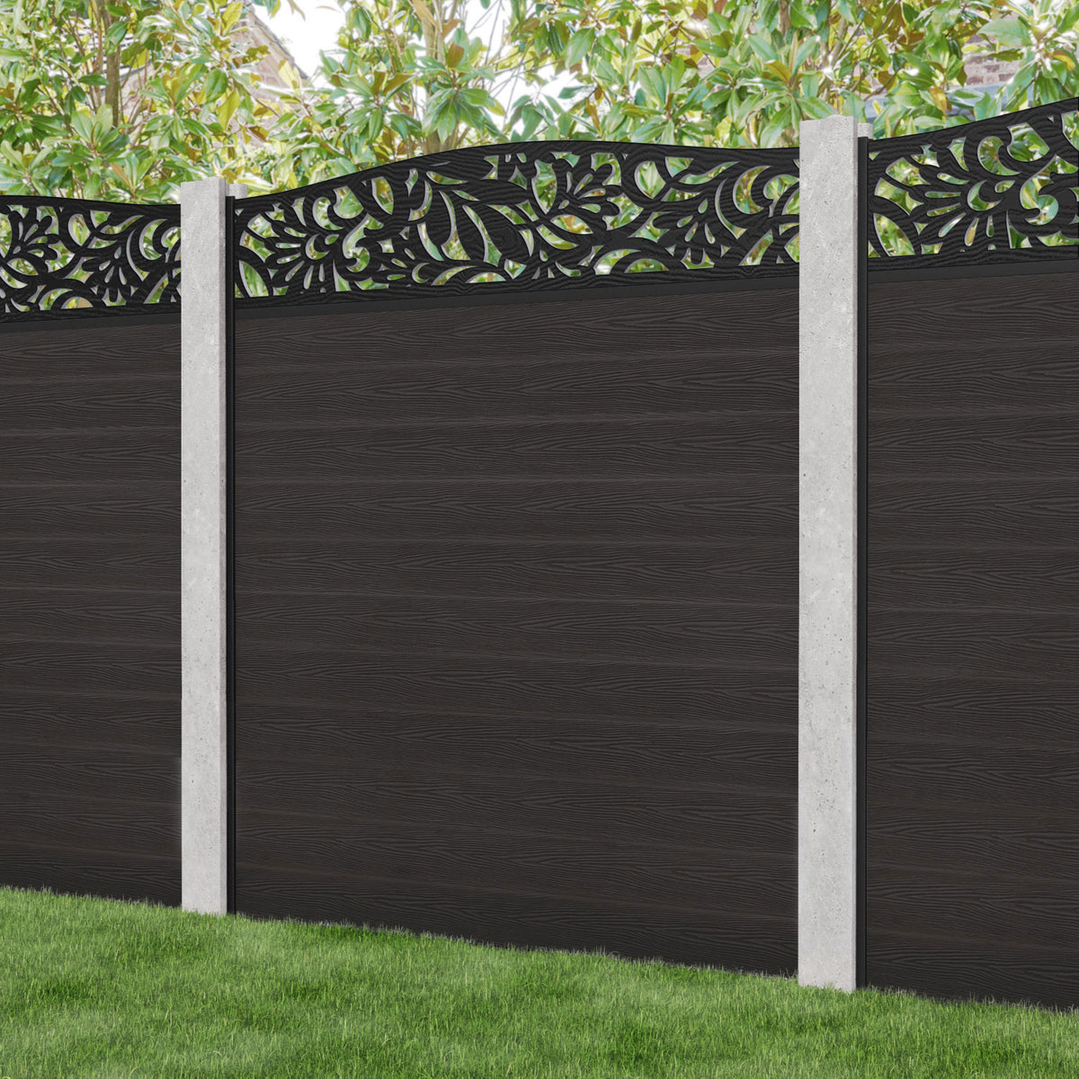 Classic Heritage Curved Top Fence Panel Dark Oak - for existing concrete posts