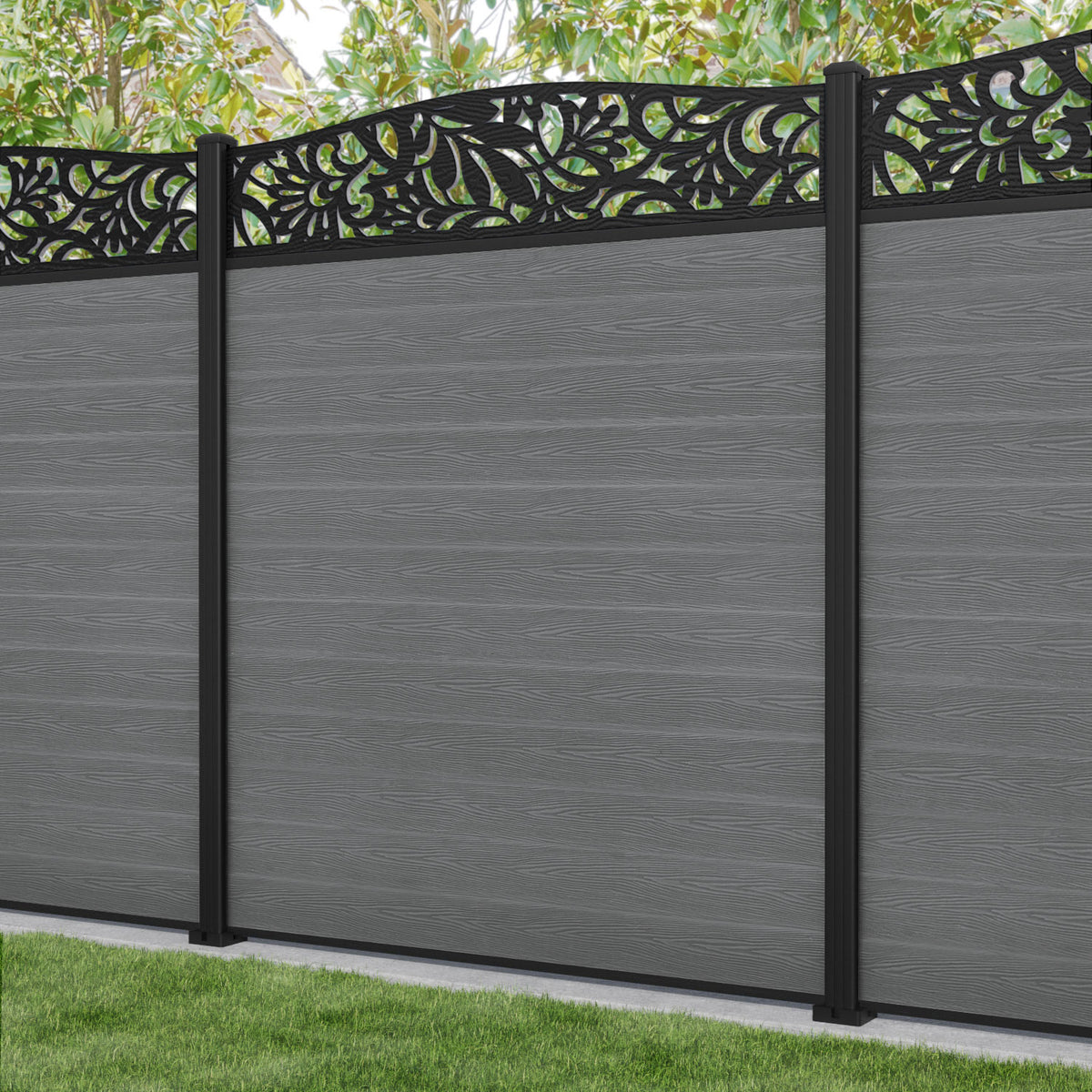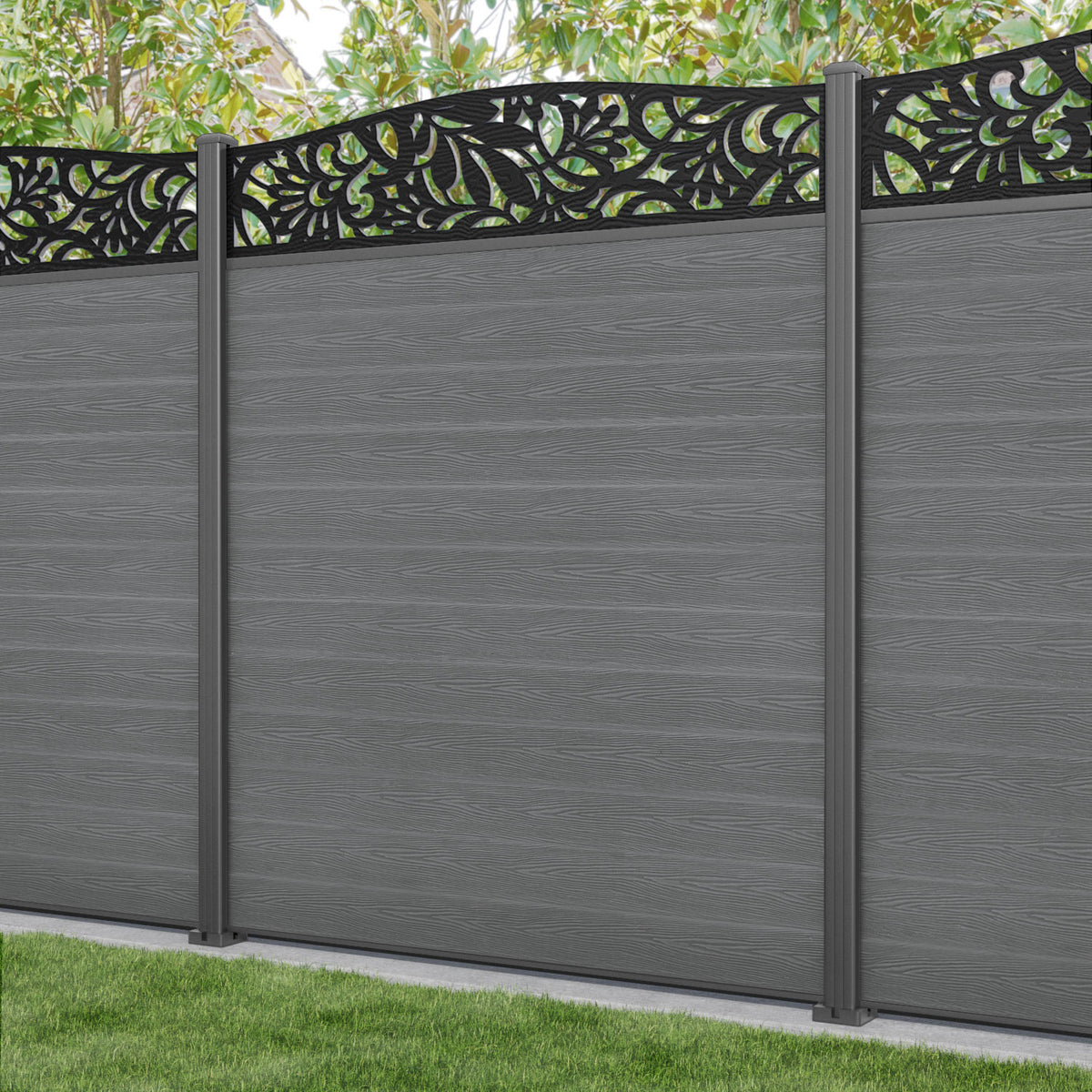 Classic Heritage Curved Top Fence Panel Mid Grey - with our aluminium posts