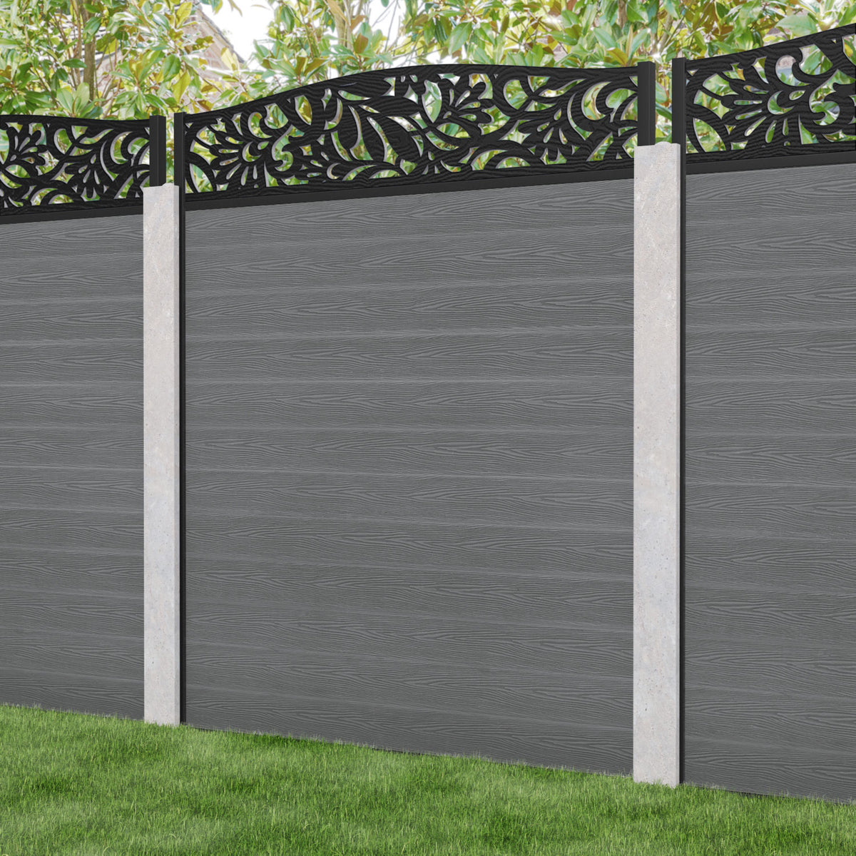Classic Heritage Curved Top Fence Panel Mid Grey - for existing concrete posts