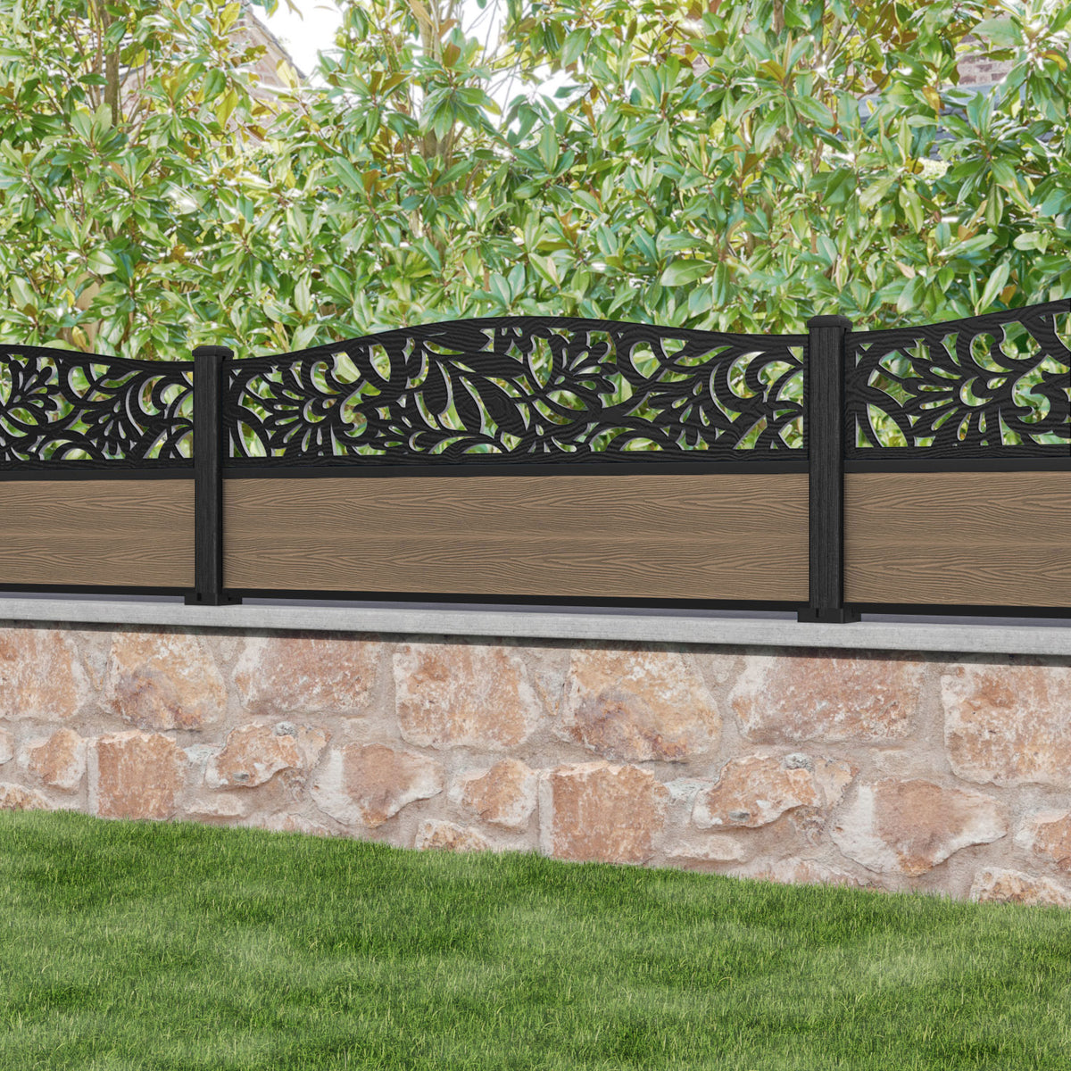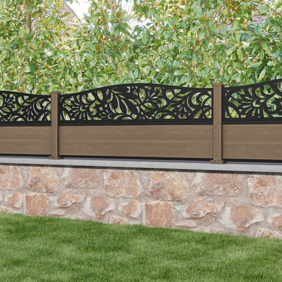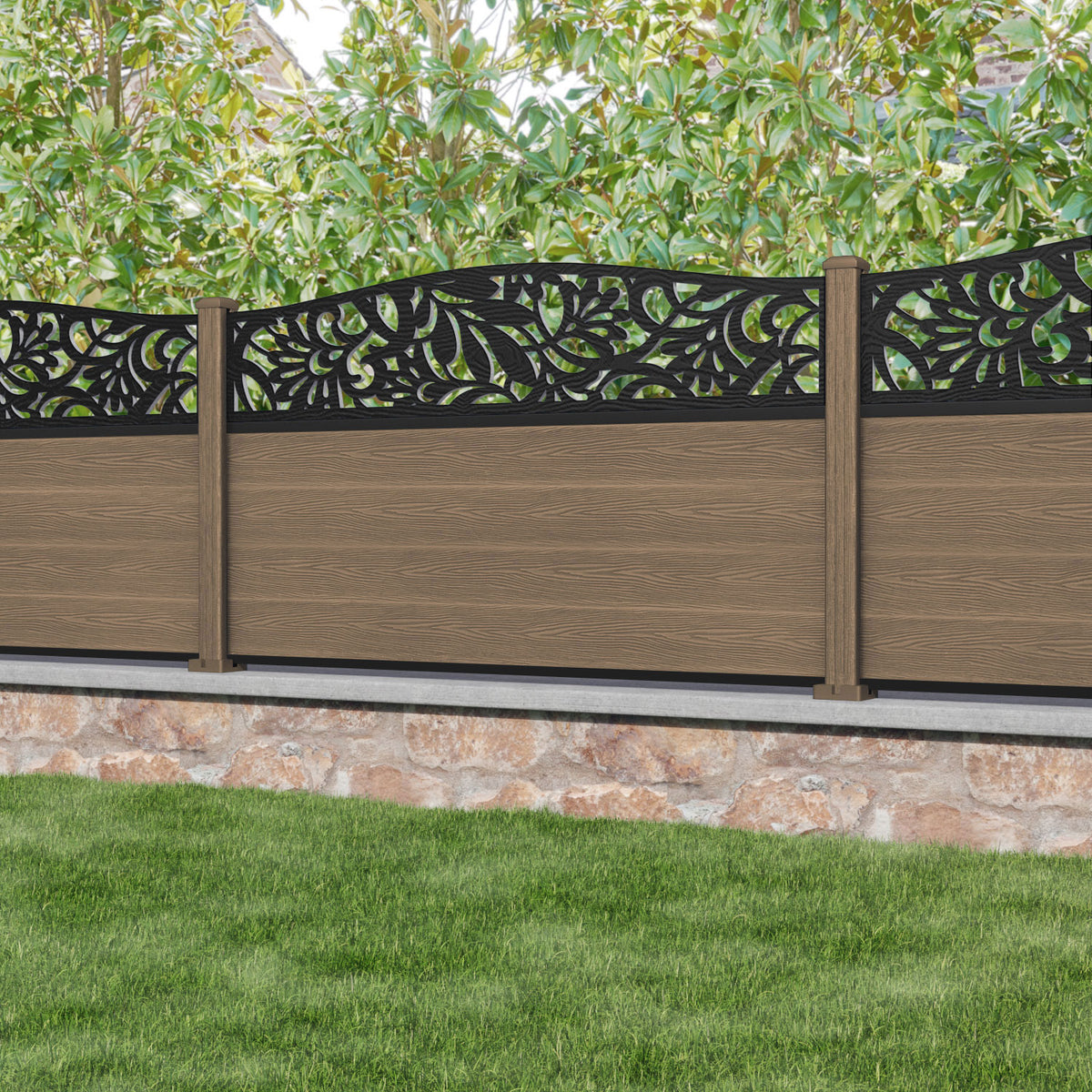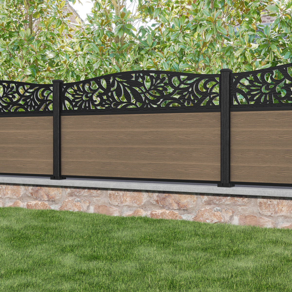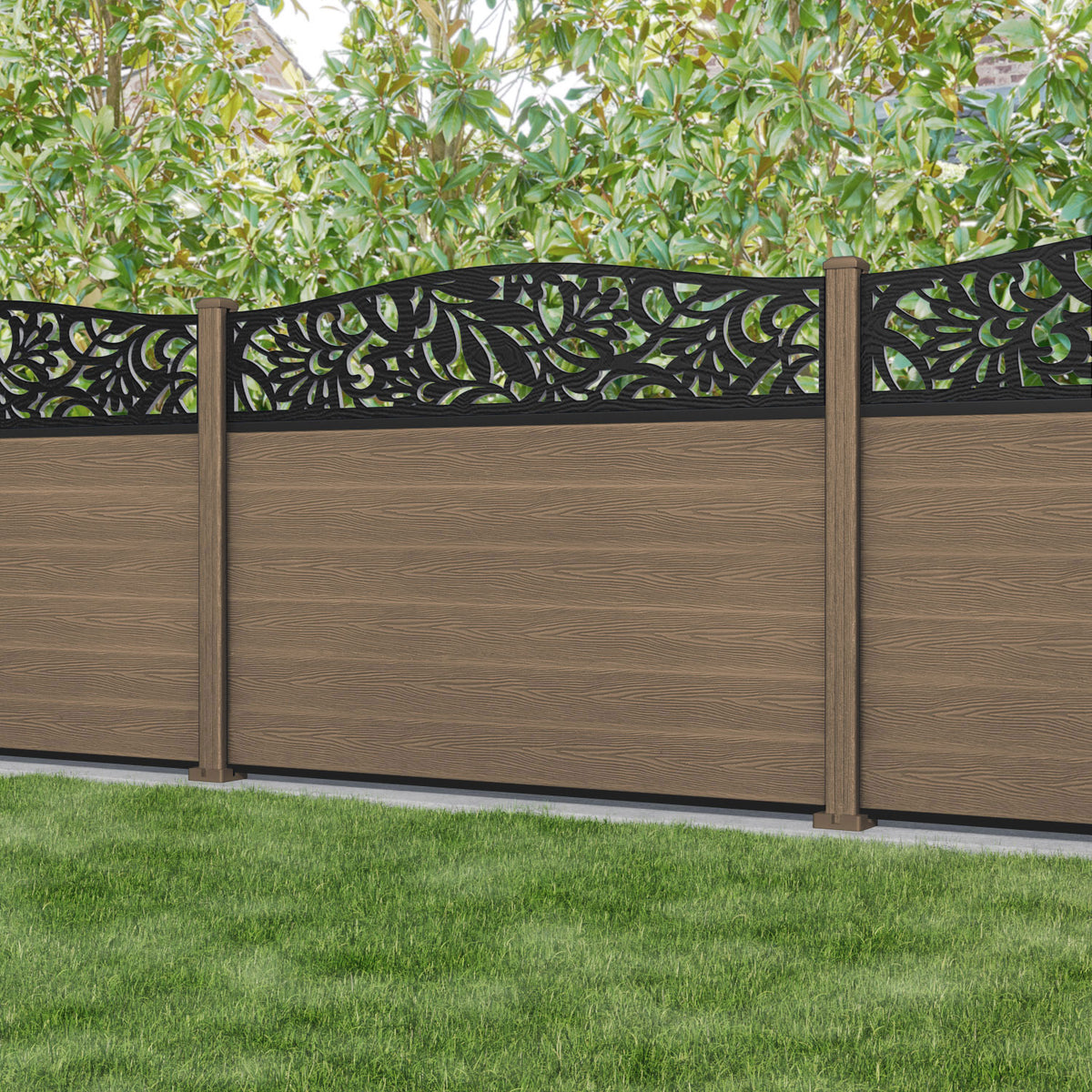 Classic Heritage Curved Top Fence Panel Teak - with our composite posts