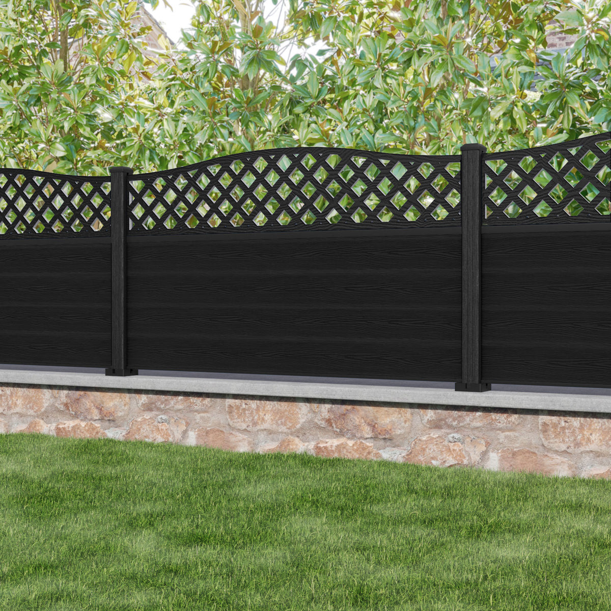 Classic High Wave Fence Panel Black - with our composite posts