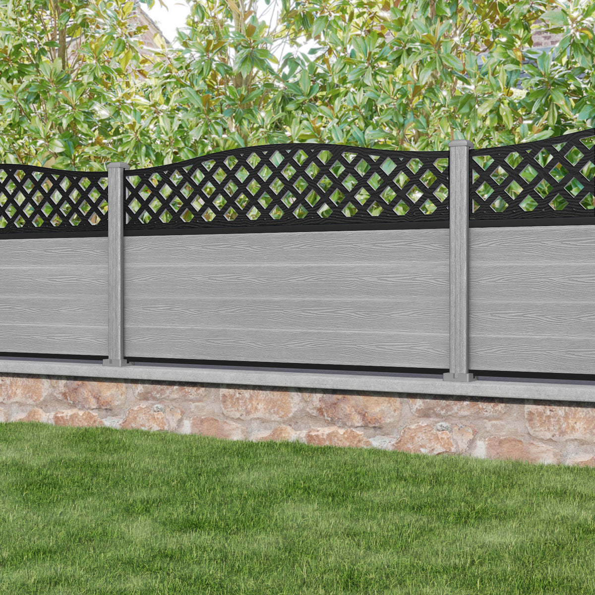 Classic High Wave Fence Panel Light Grey - with our composite posts