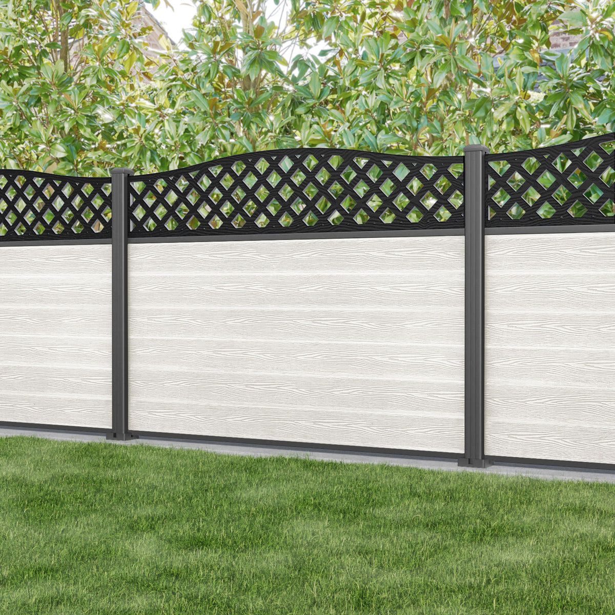 A classic diagonal decorative trellis panel adding a stylish touch to your fence panel. The Wave high screen can be used with the Wave low to create a beautiful traditional look.