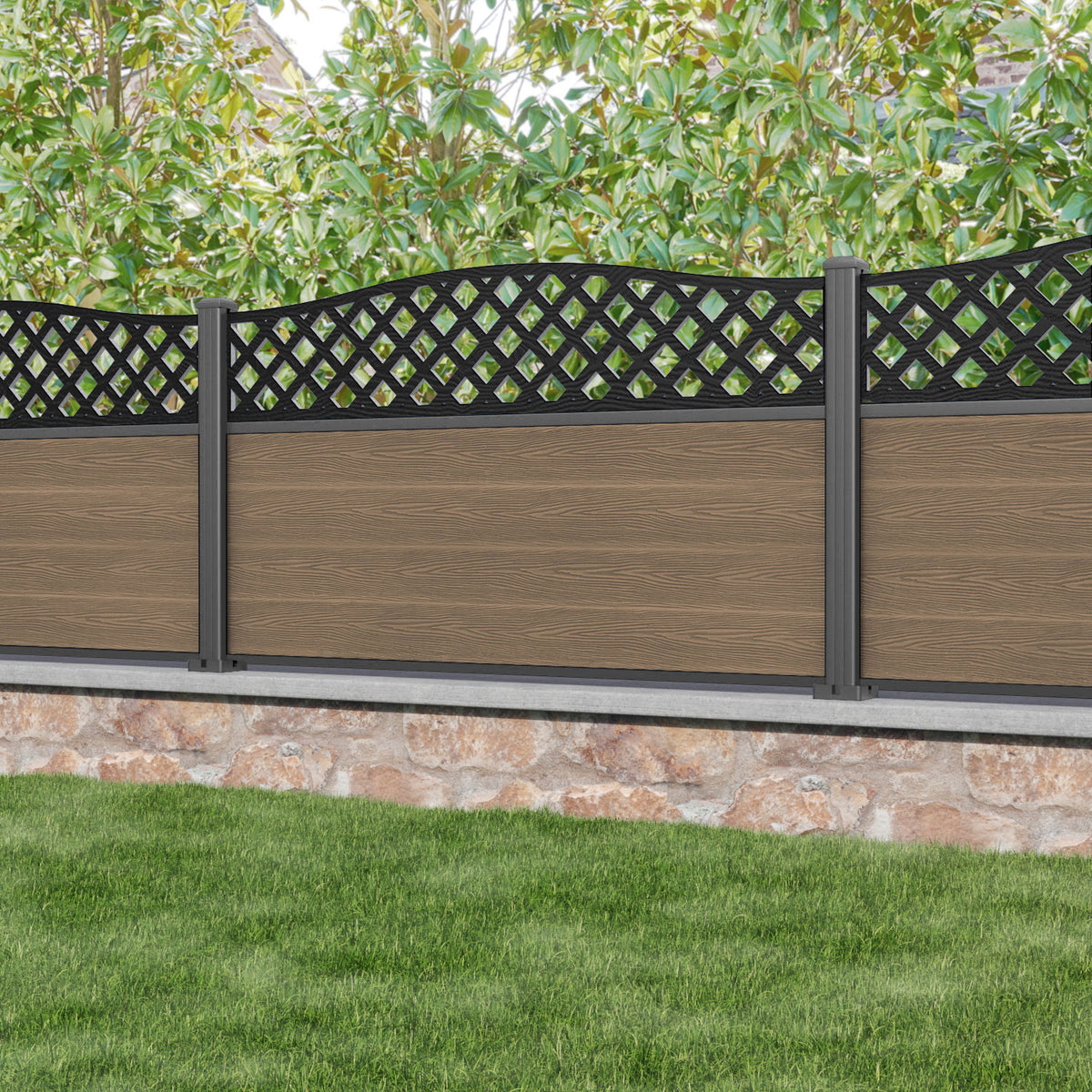 Classic High Wave Fence Panel Teak - with our aluminium posts