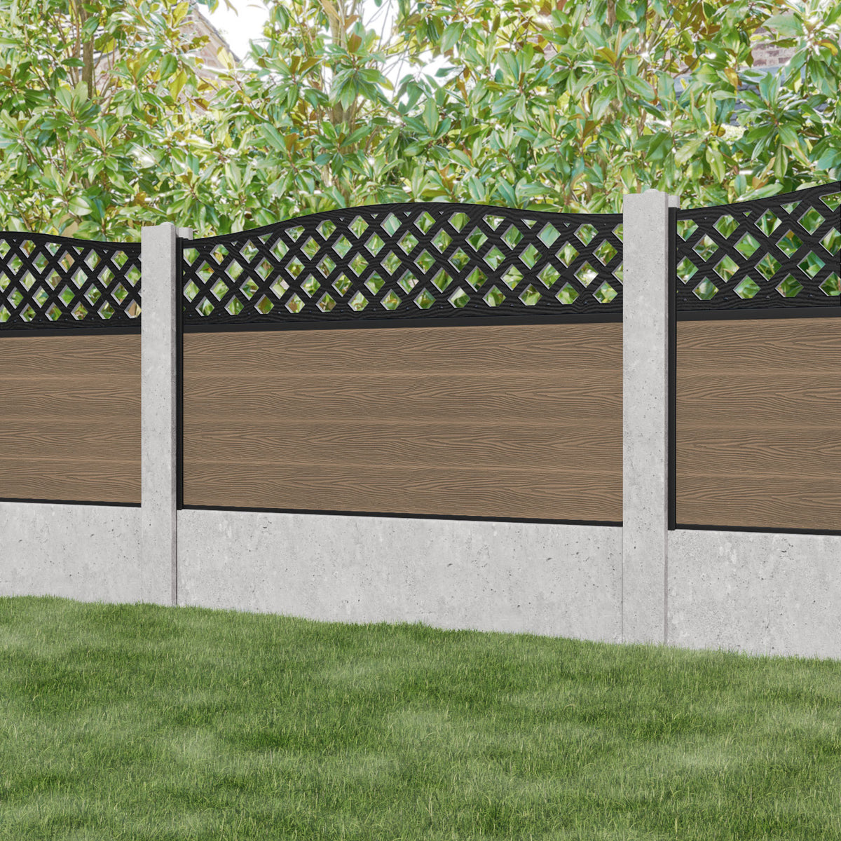 A classic diagonal decorative trellis panel adding a stylish touch to your fence panel. The Wave high screen can be used with the Wave low to create a beautiful traditional look.