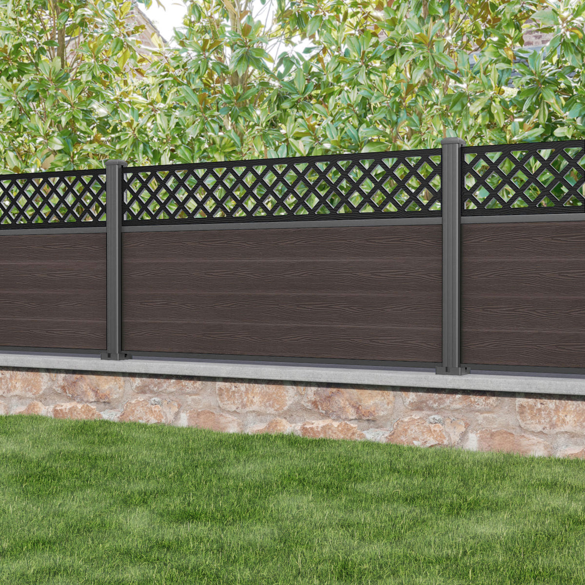 Classic Hive Fence Panel Mid Brown - with our aluminium posts