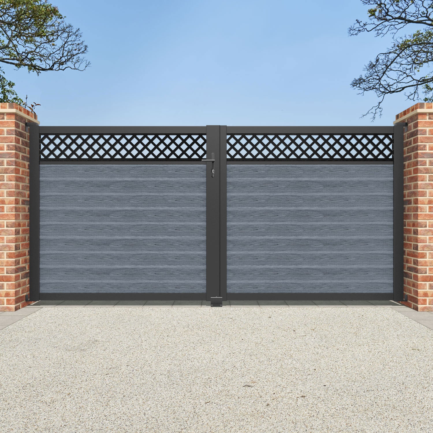 Pair your gate with our eco-friendly composite or aluminium slats for a seamless match with our fencing collections, ensuring a stylish and cohesive look.