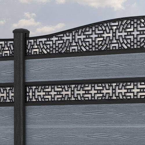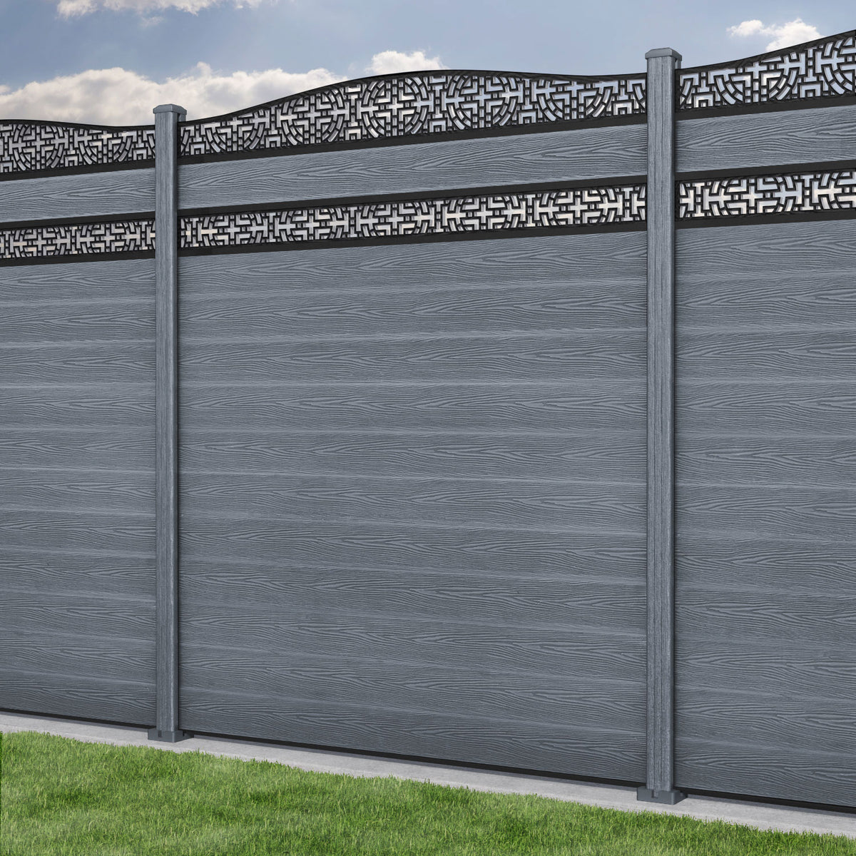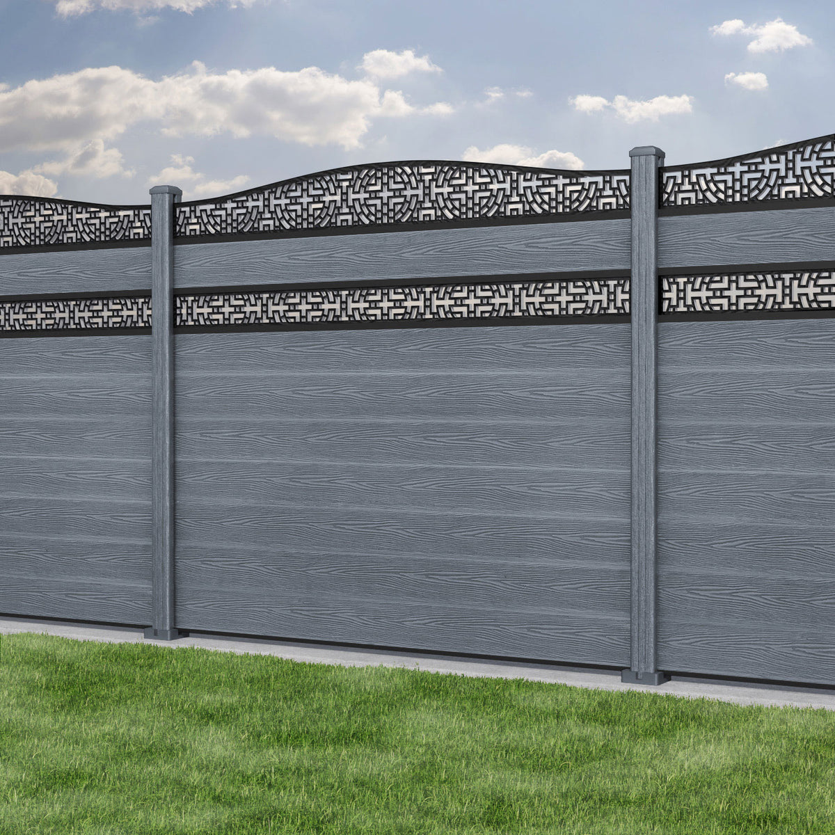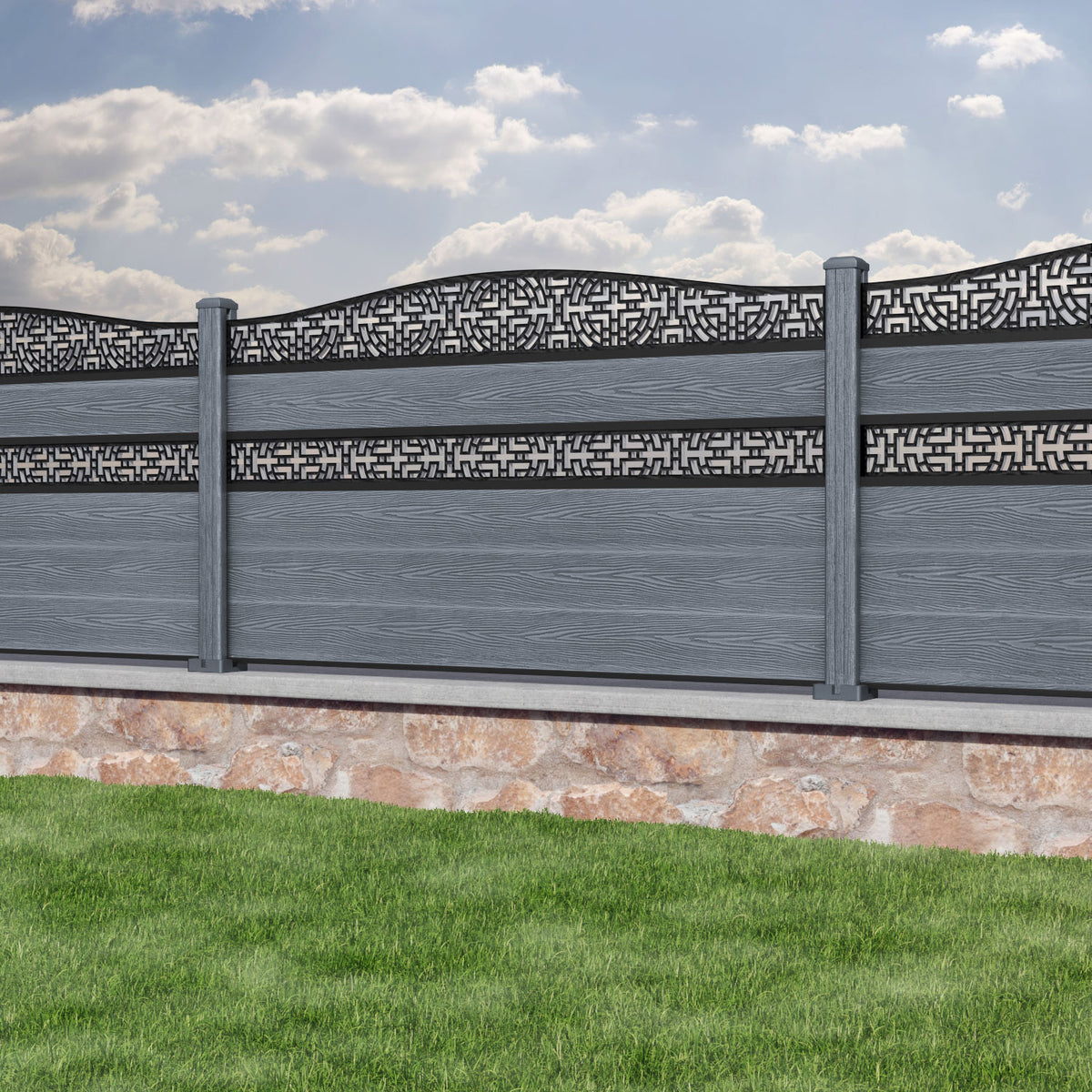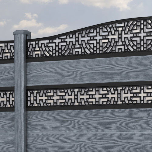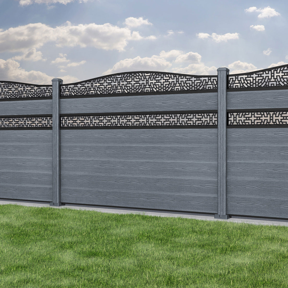 Classic Kumo Curved Top Split Screen Fence Panel Anthracite - with our composite posts