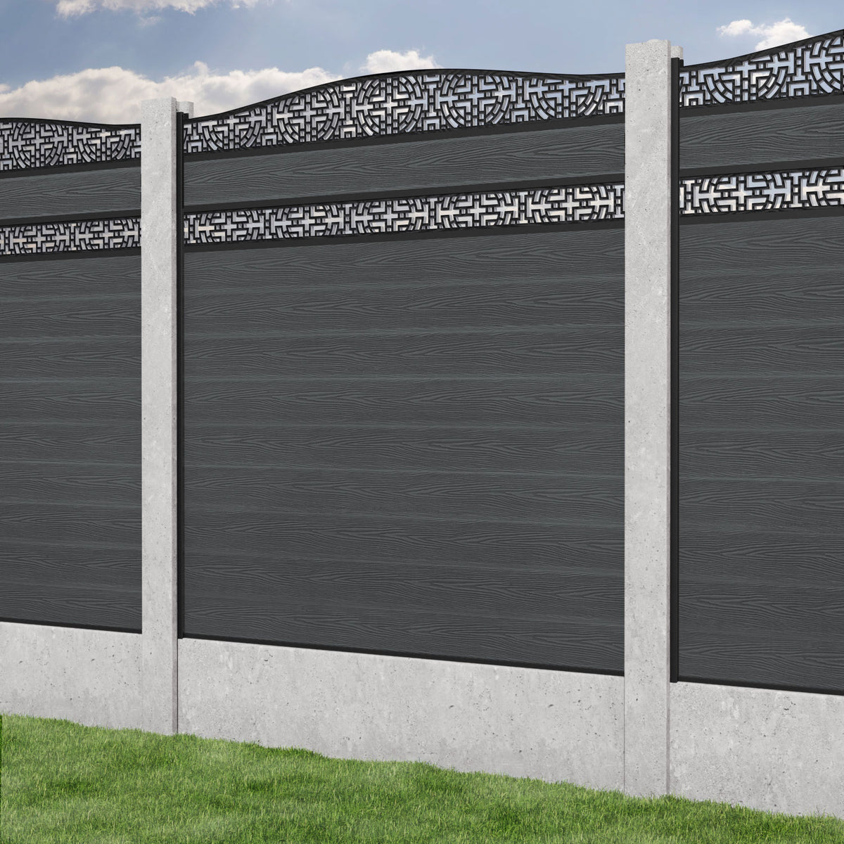 Classic Kumo Curved Top Split Screen Fence Panel Dark Grey - for existing concrete posts