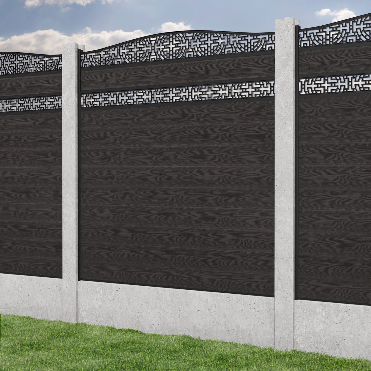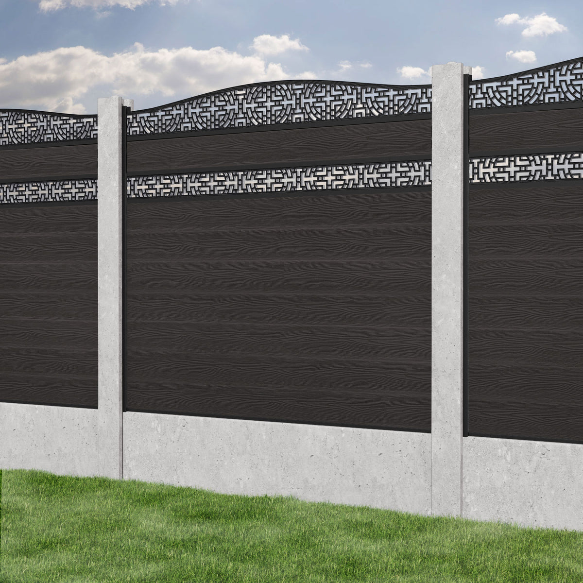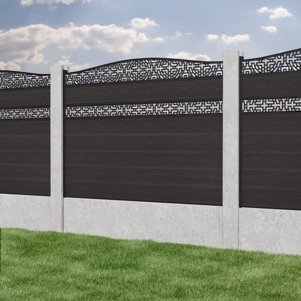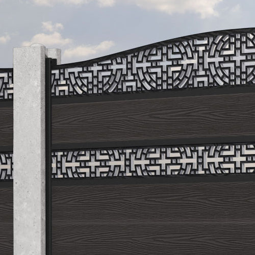 Classic Kumo Curved Top Split Screen Fence Panel Dark Oak - for existing concrete posts