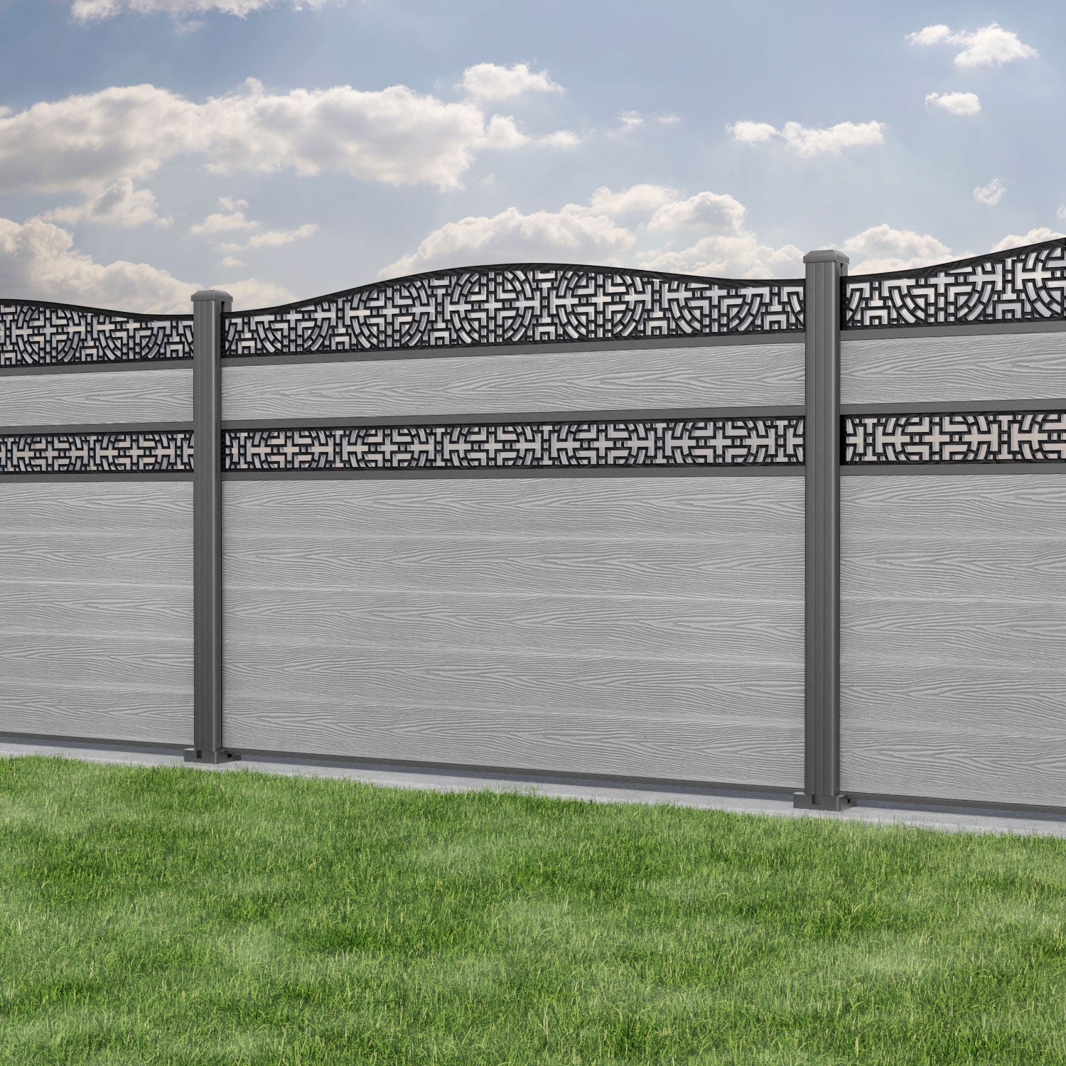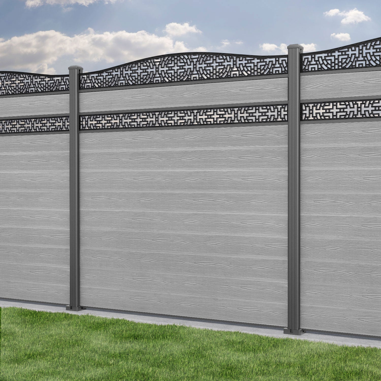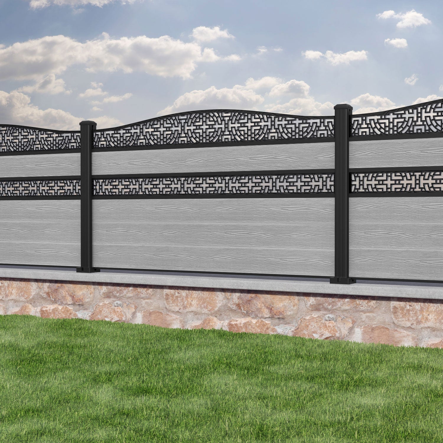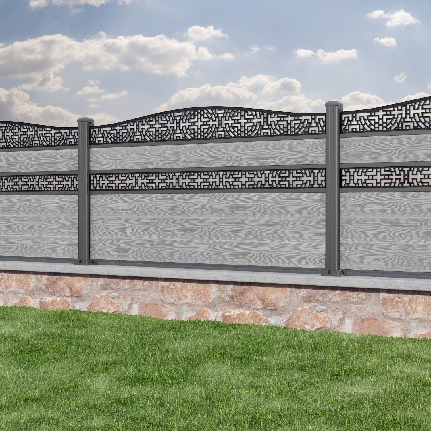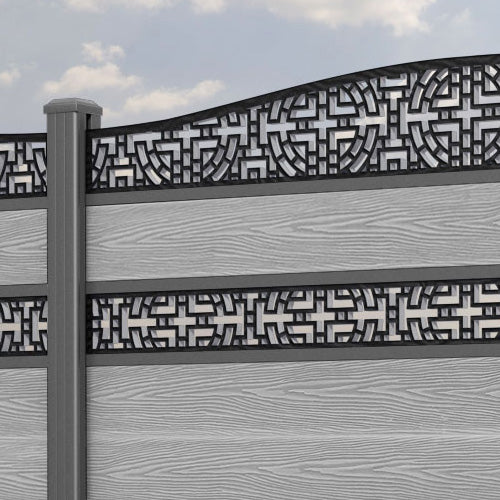 Classic Kumo Curved Top Split Screen Fence Panel Light Grey - with our aluminium posts