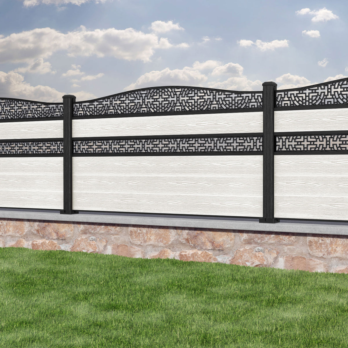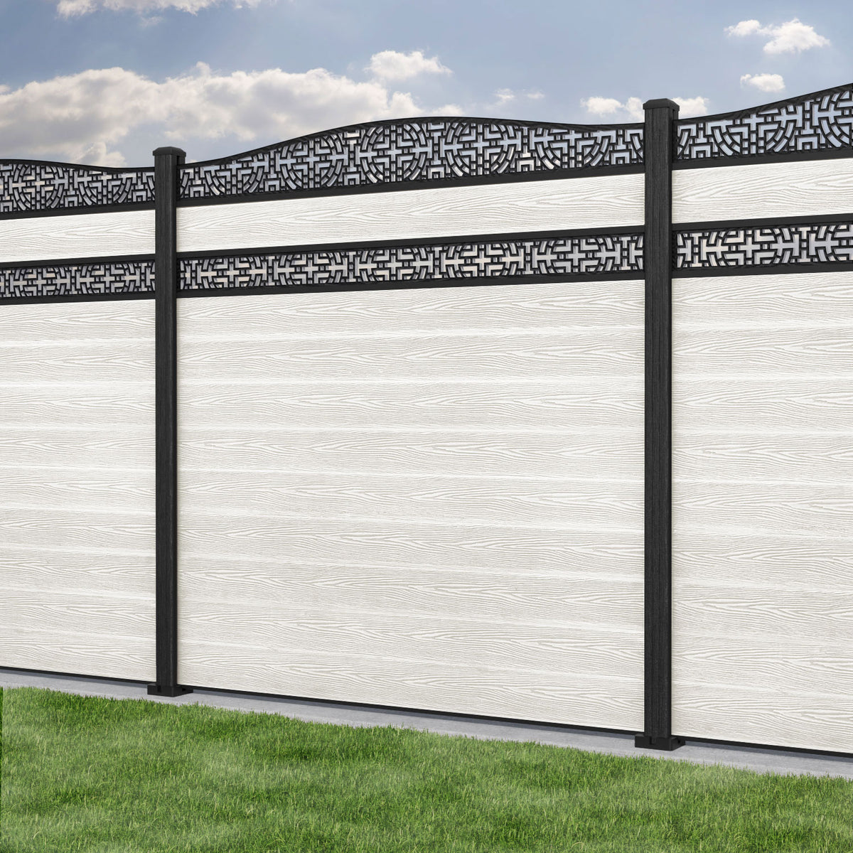 Classic Kumo Curved Top Split Screen Fence Panel Light Stone - with our composite posts
