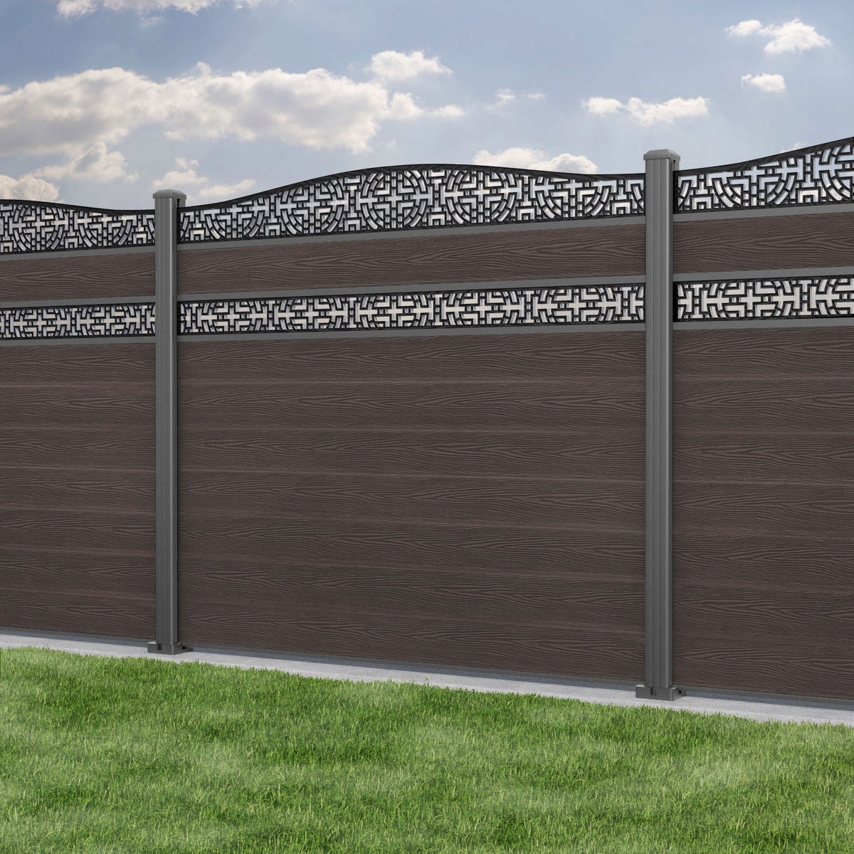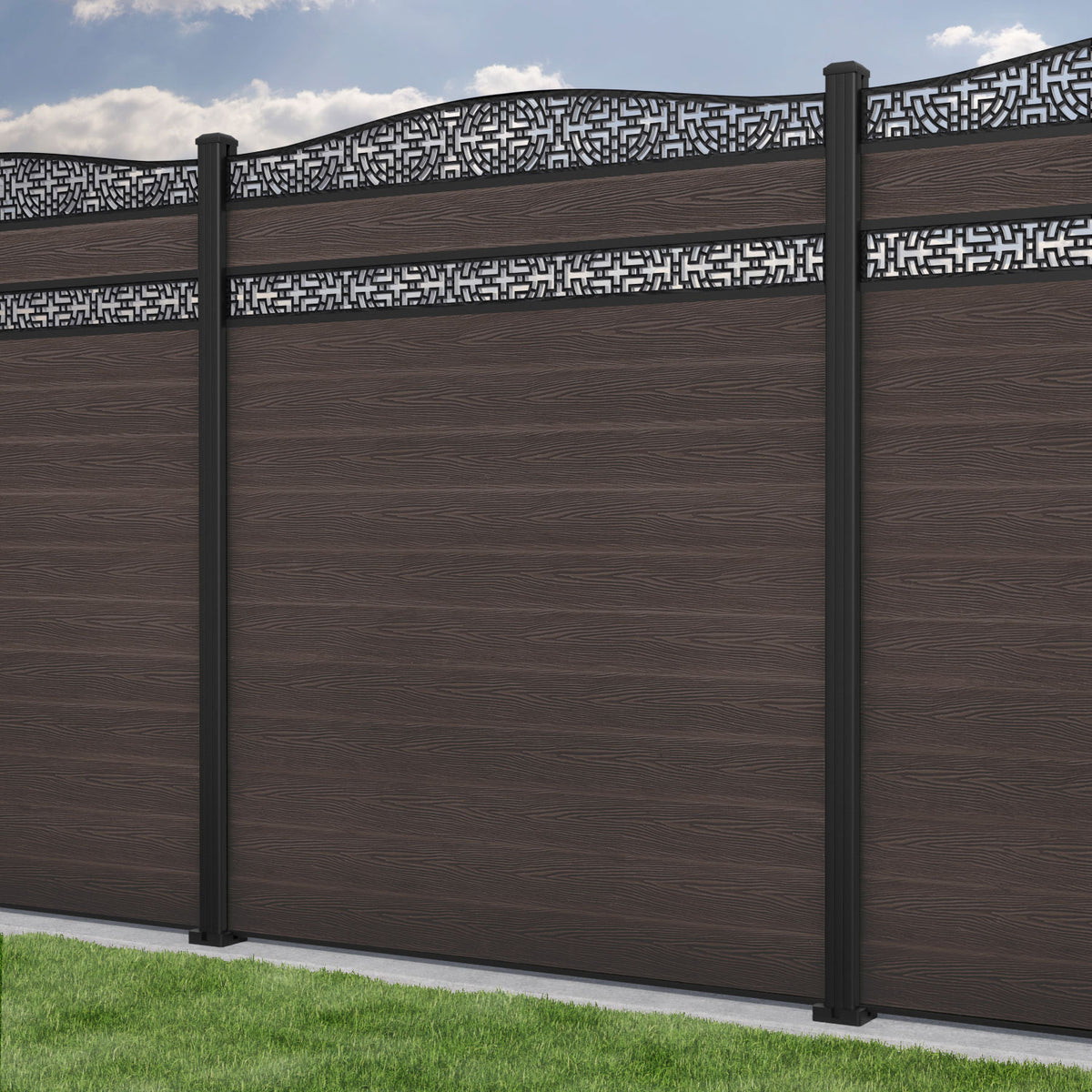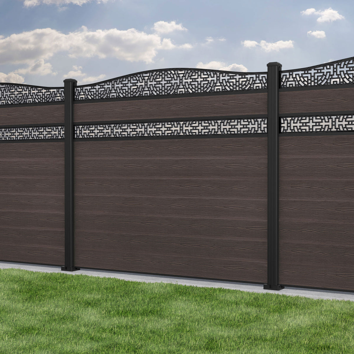 Classic Kumo Curved Top Split Screen Fence Panel Mid Brown - with our aluminium posts