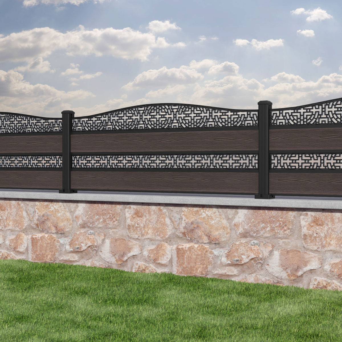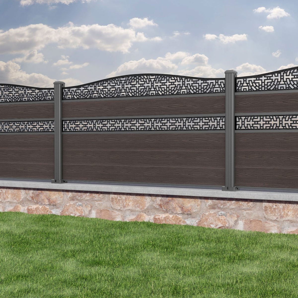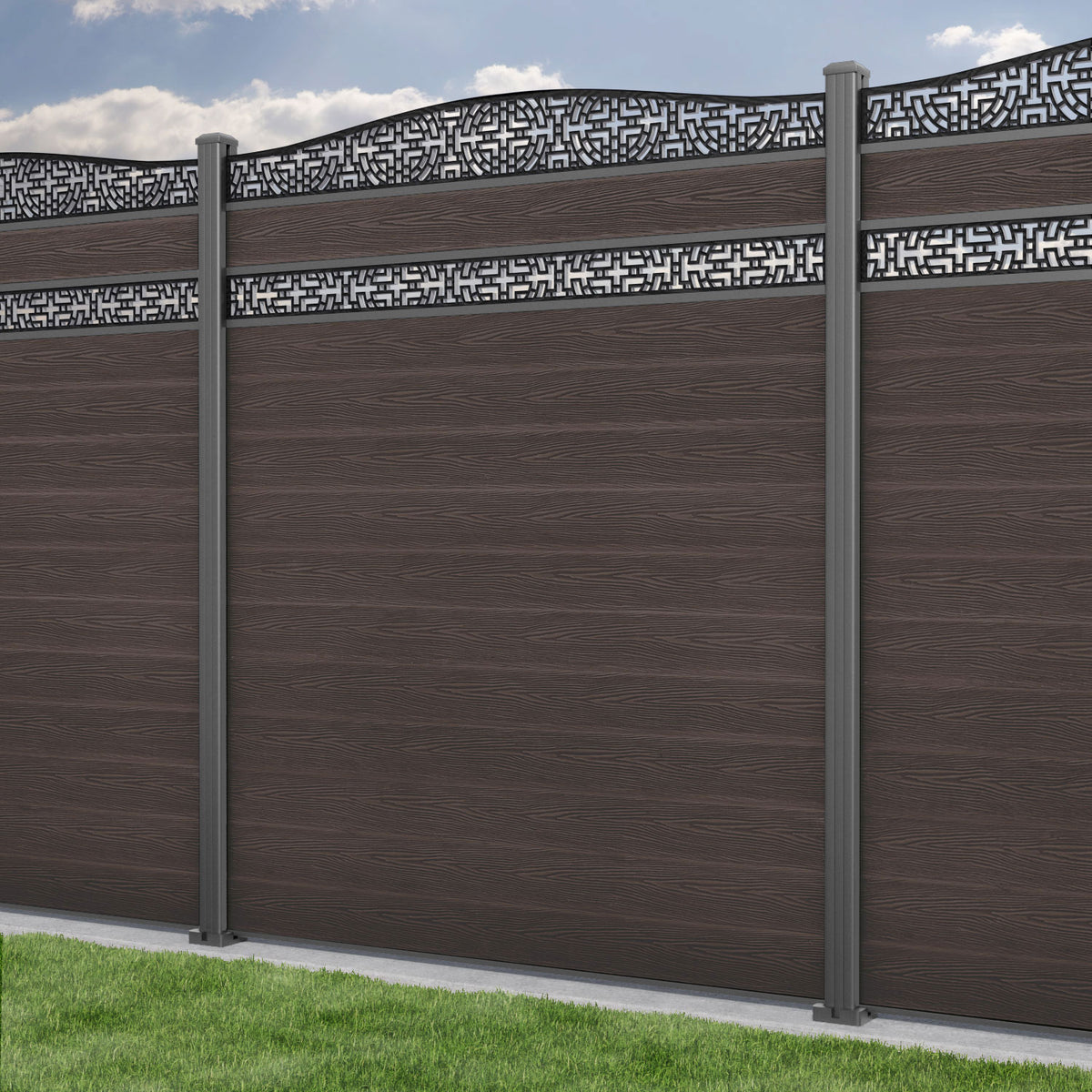 Classic Kumo Curved Top Split Screen Fence Panel Mid Brown - with our aluminium posts