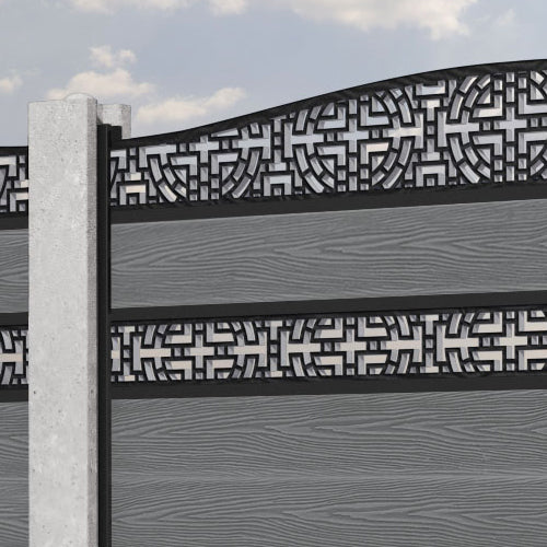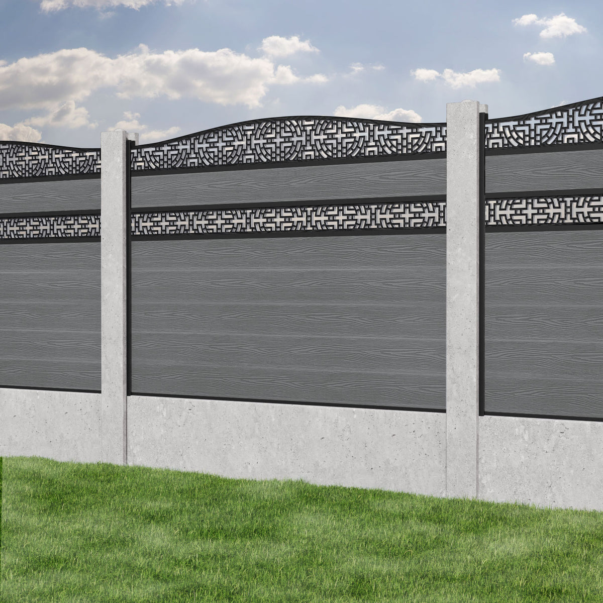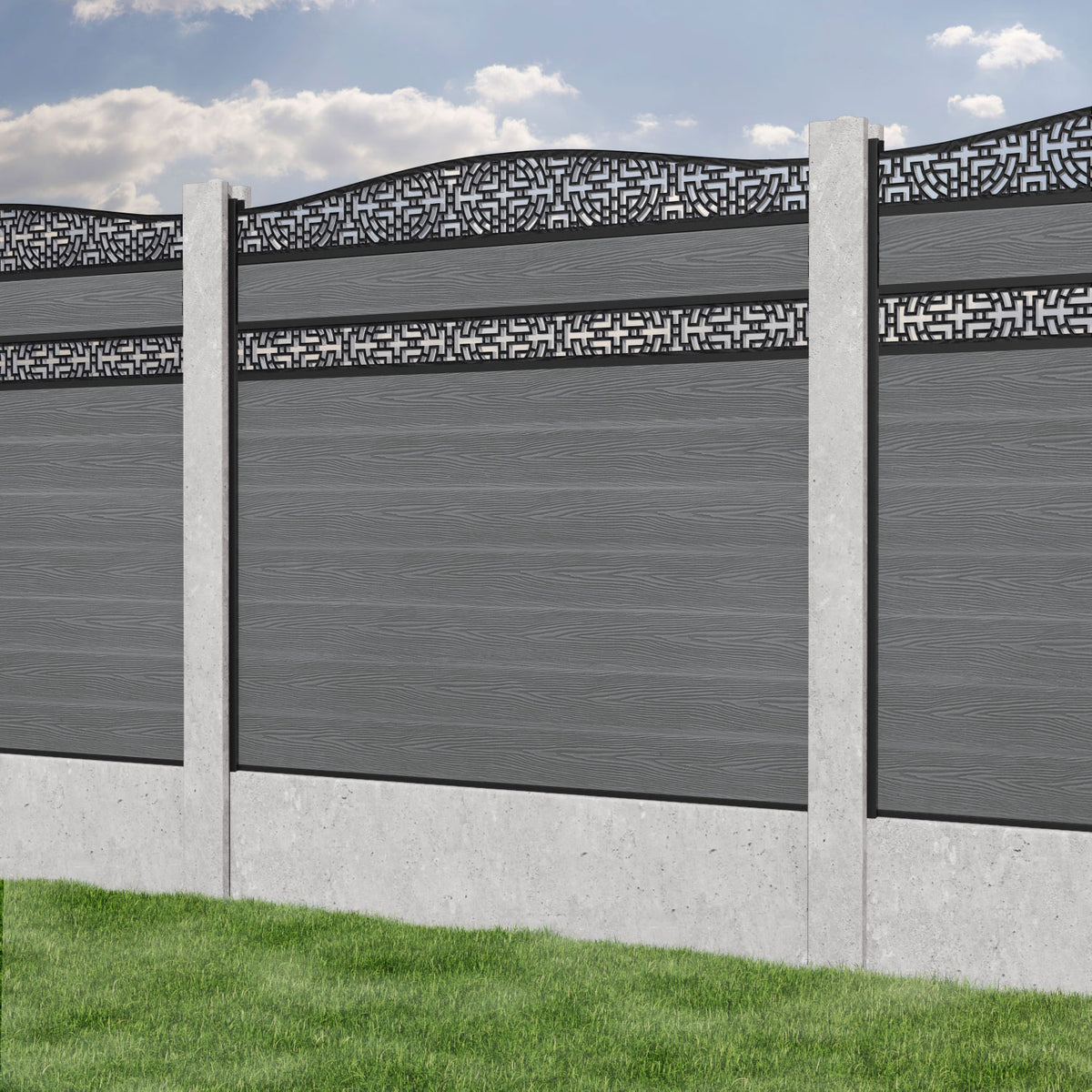 Classic Kumo Curved Top Split Screen Fence Panel Mid Grey - for existing concrete posts