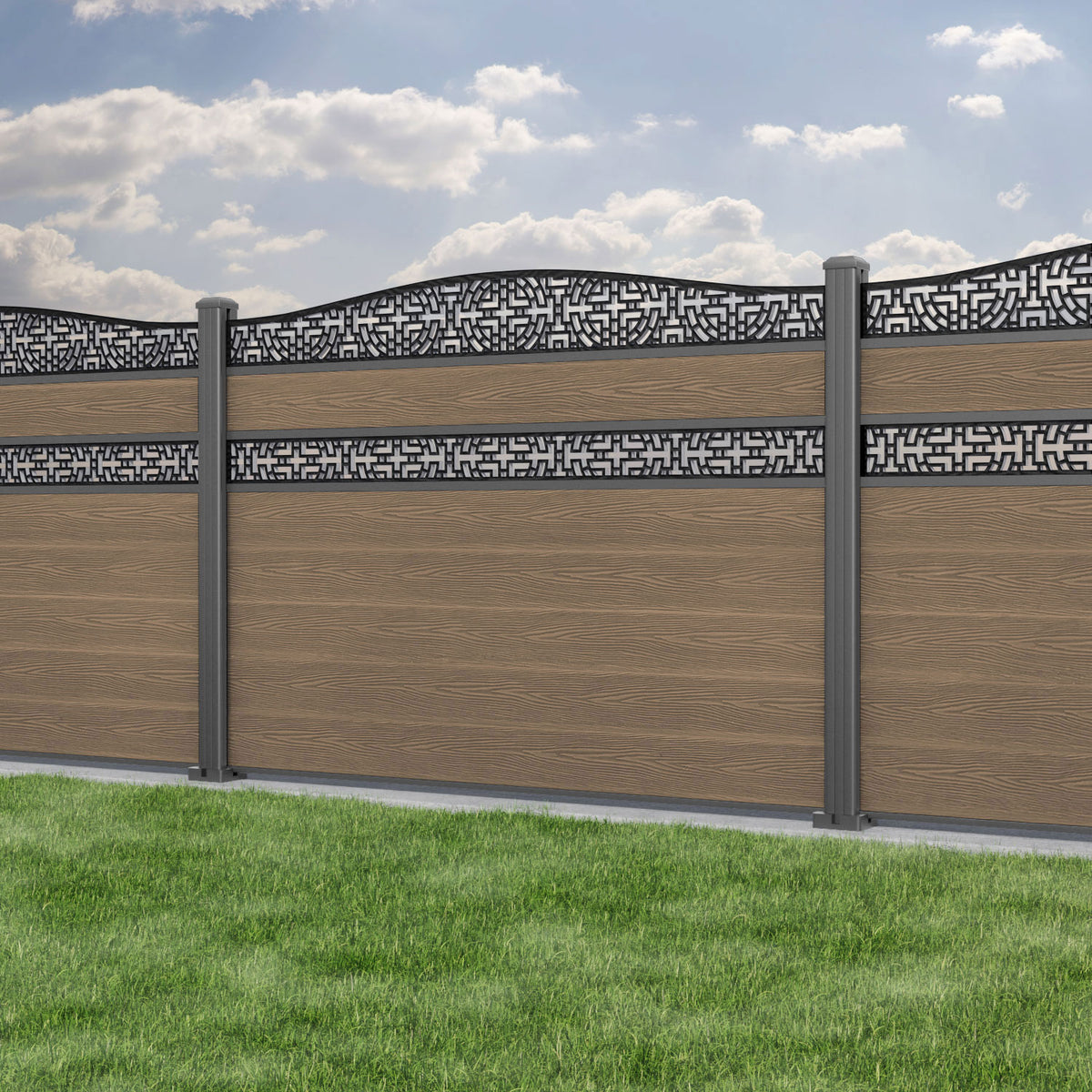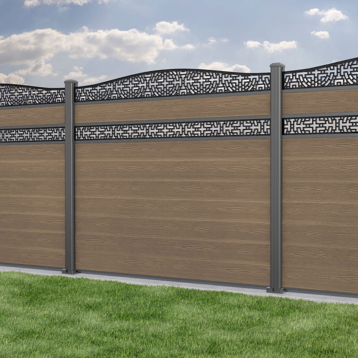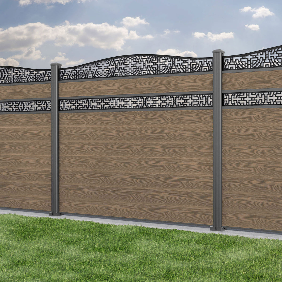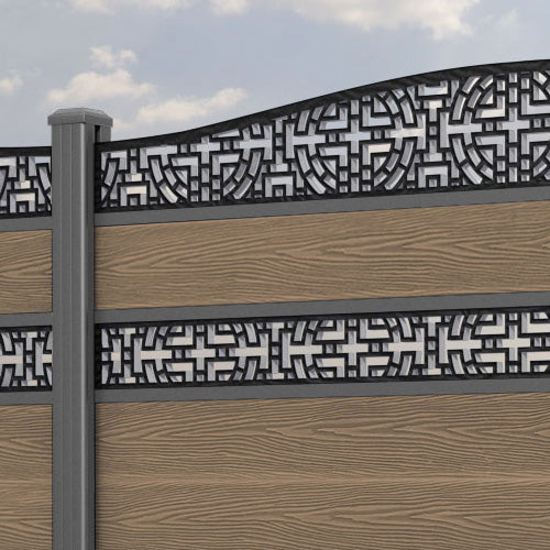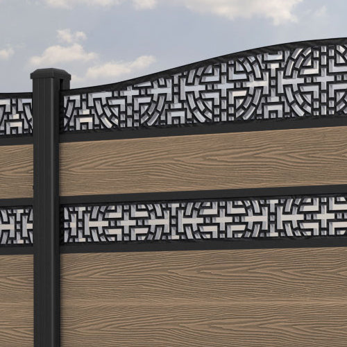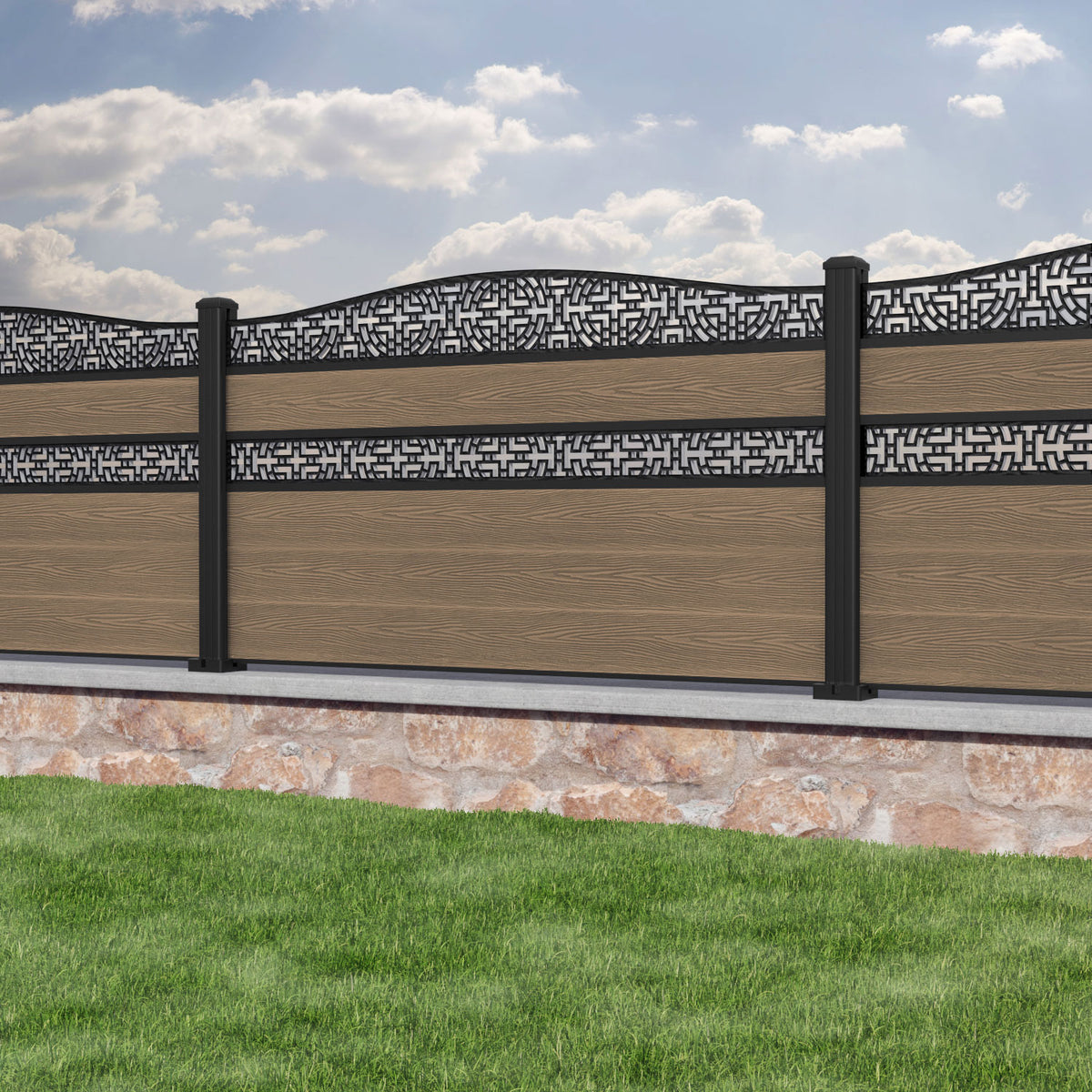 Classic Kumo Curved Top Split Screen Fence Panel Teak - with our aluminium posts