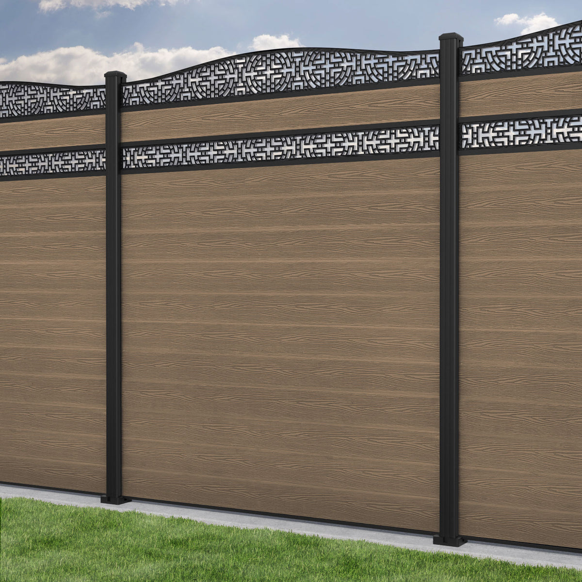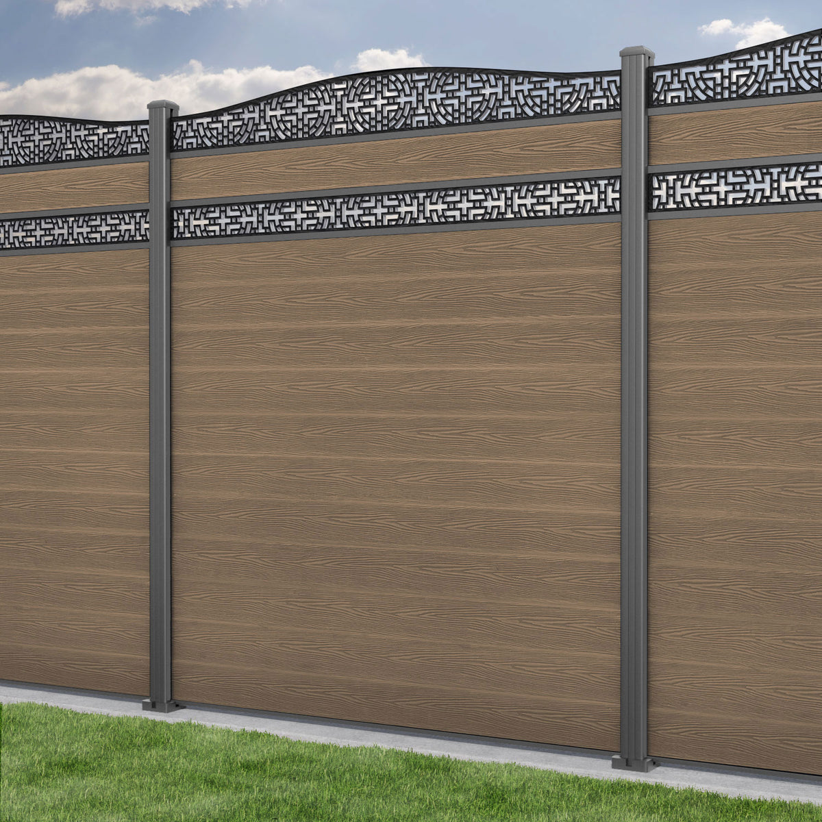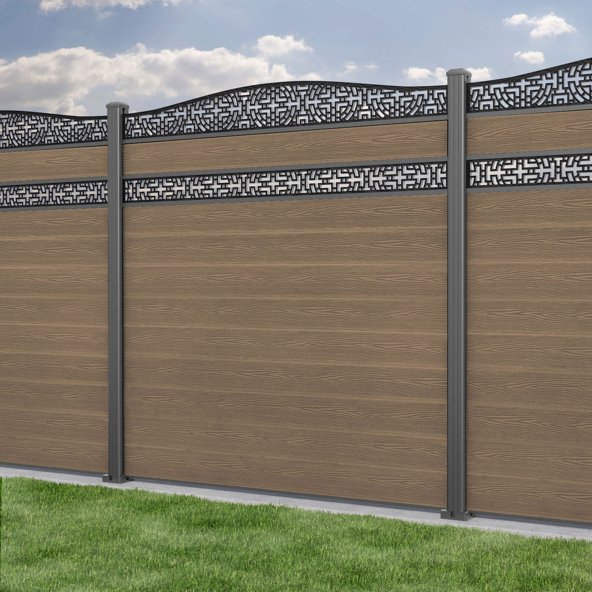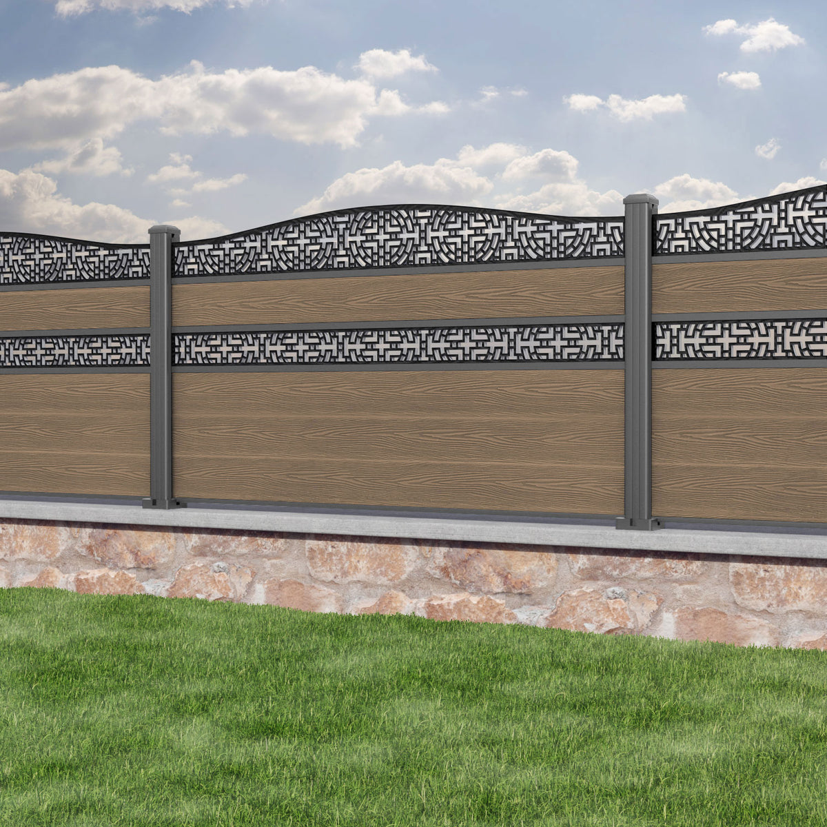 Classic Kumo Curved Top Split Screen Fence Panel Teak - with our aluminium posts