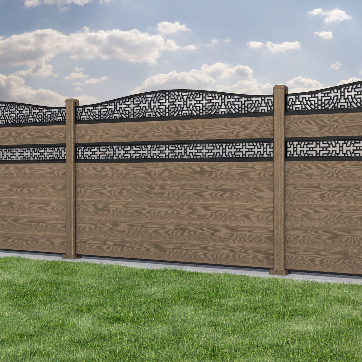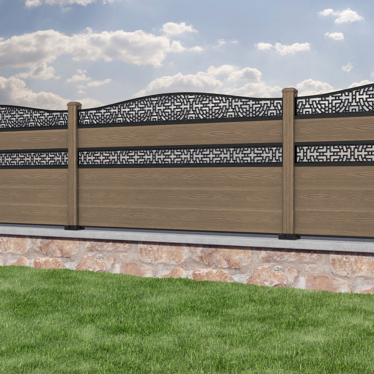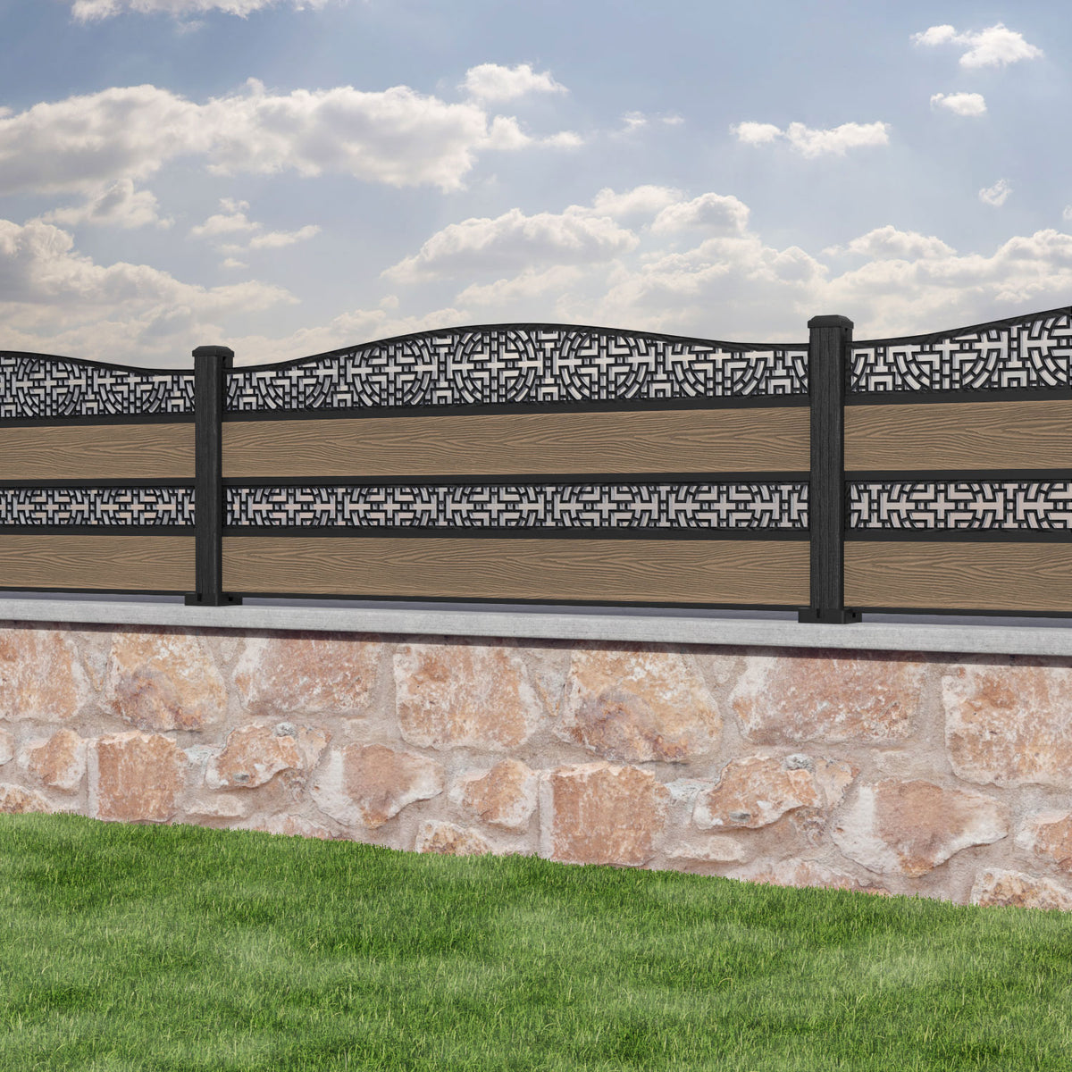 Classic Kumo Curved Top Split Screen Fence Panel Teak - with our composite posts