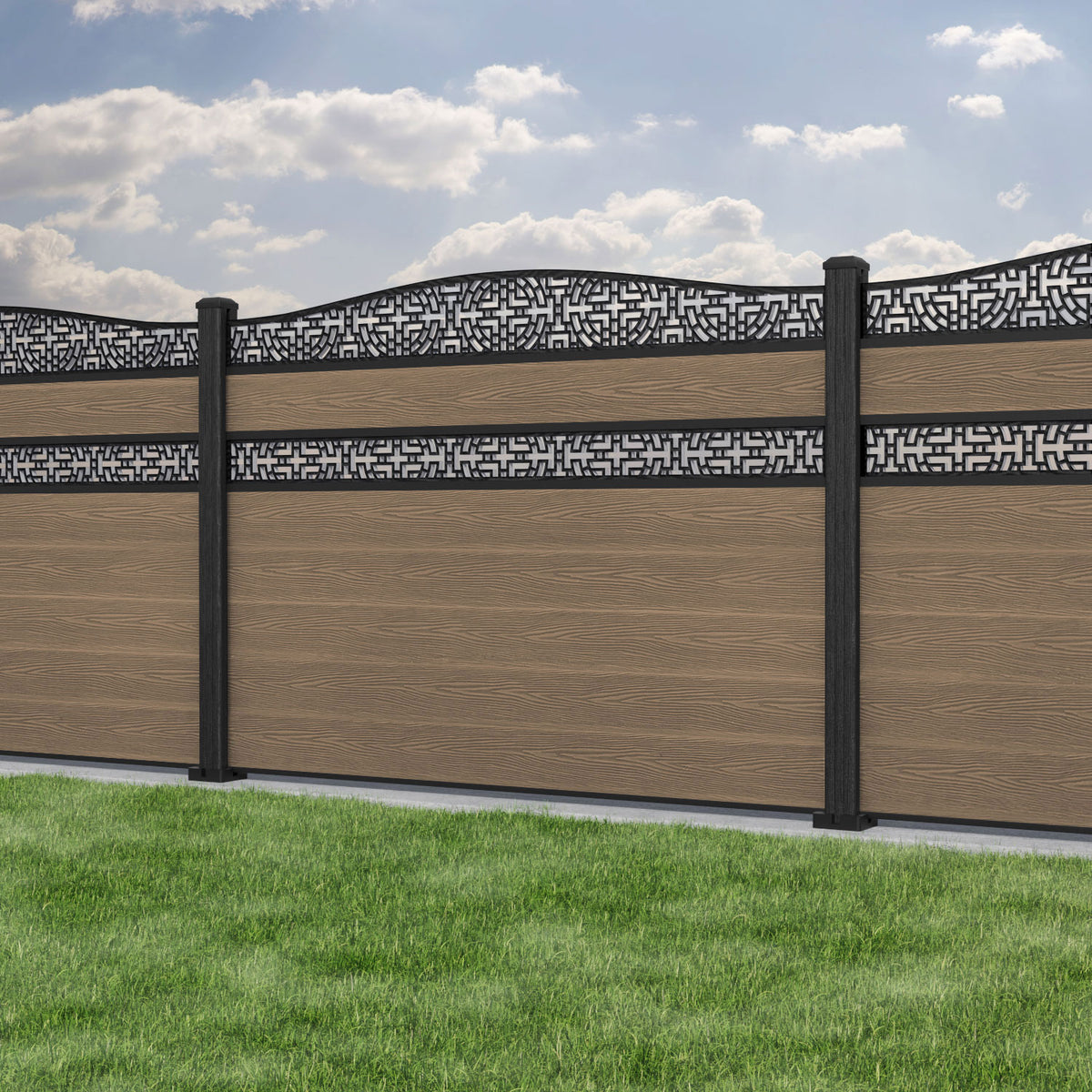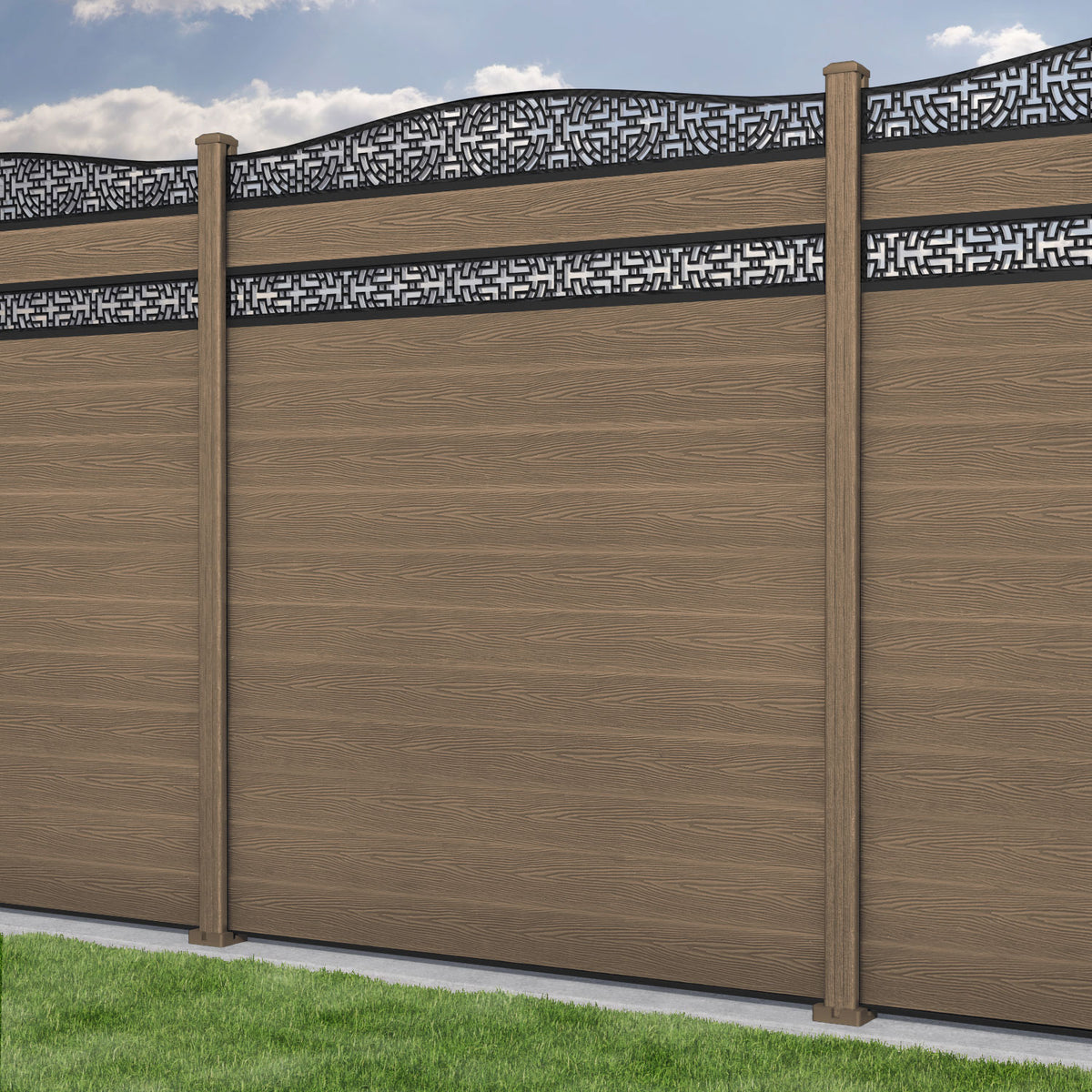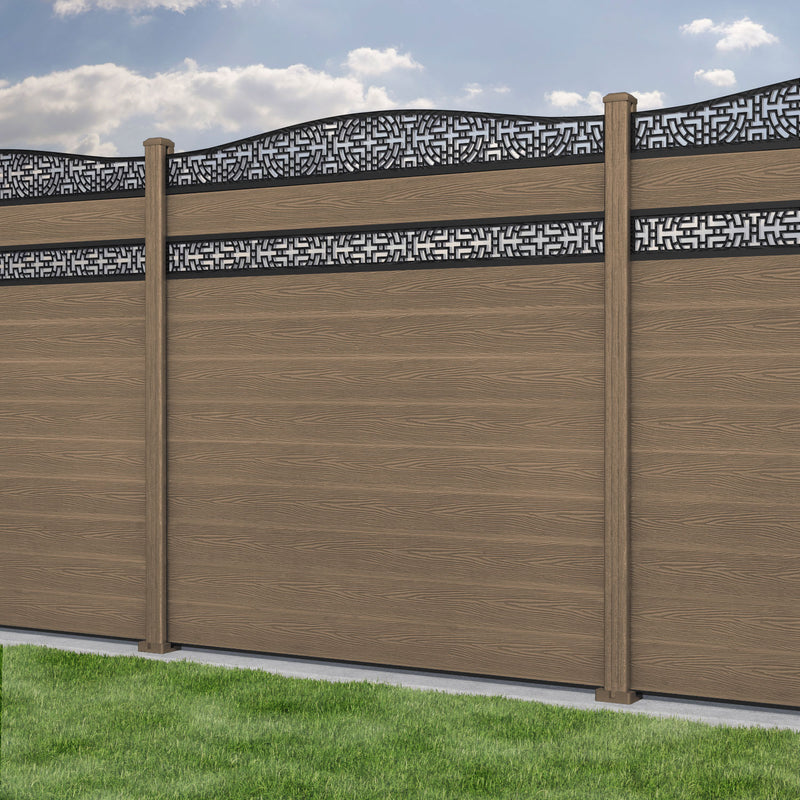 Classic Kumo Curved Top Split Screen Fence Panel Teak - with our composite posts