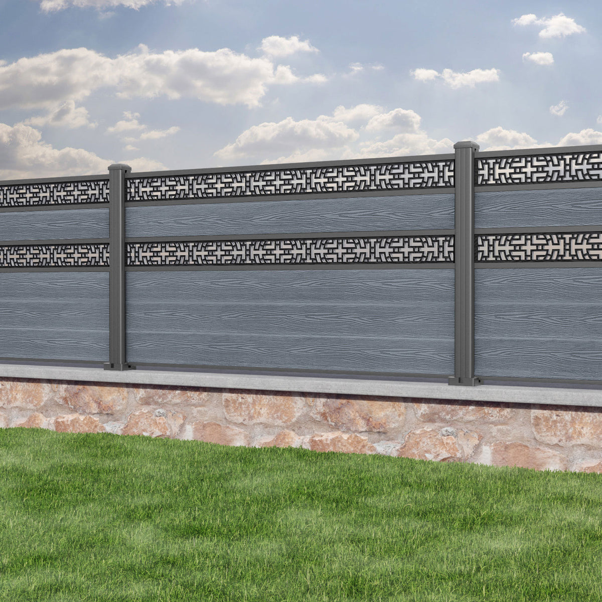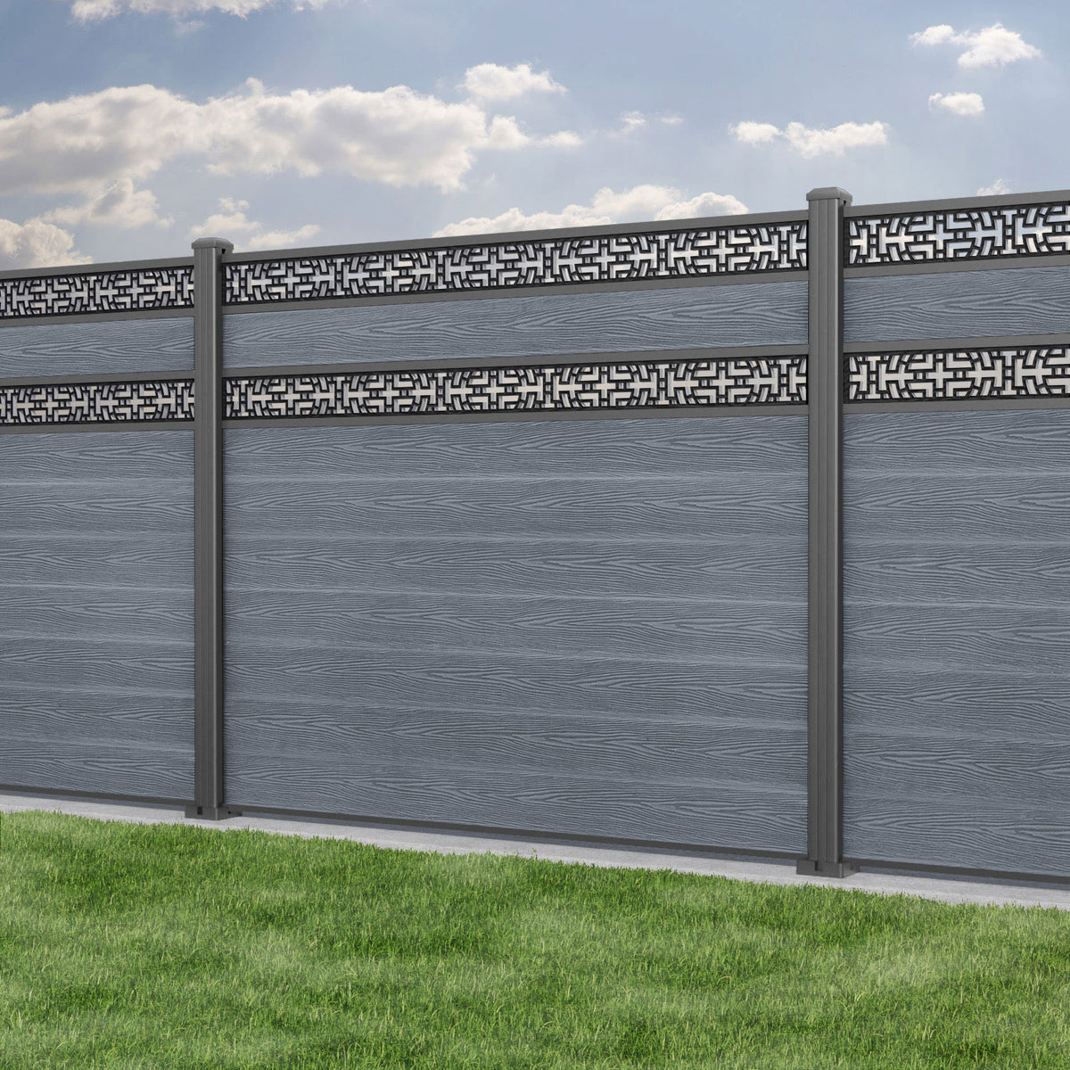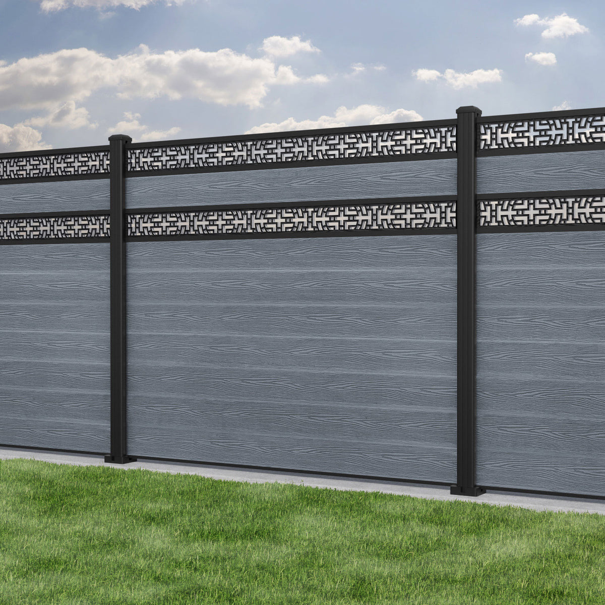 Classic Kumo Split Screen Fence Panel Anthracite - with our aluminium posts